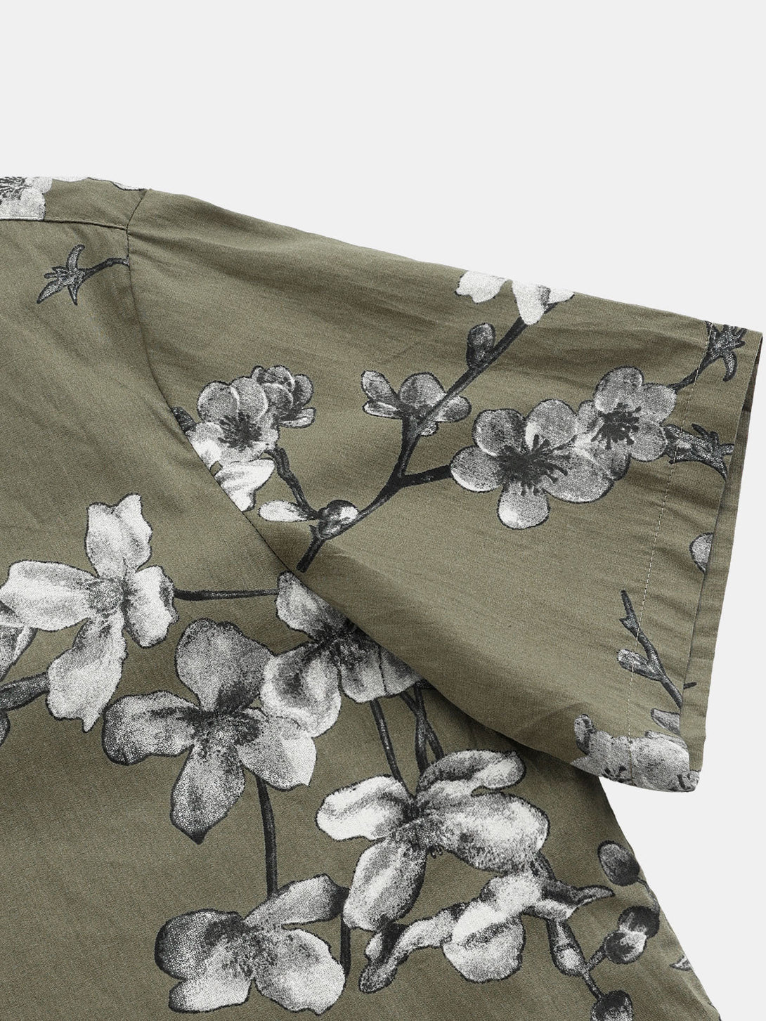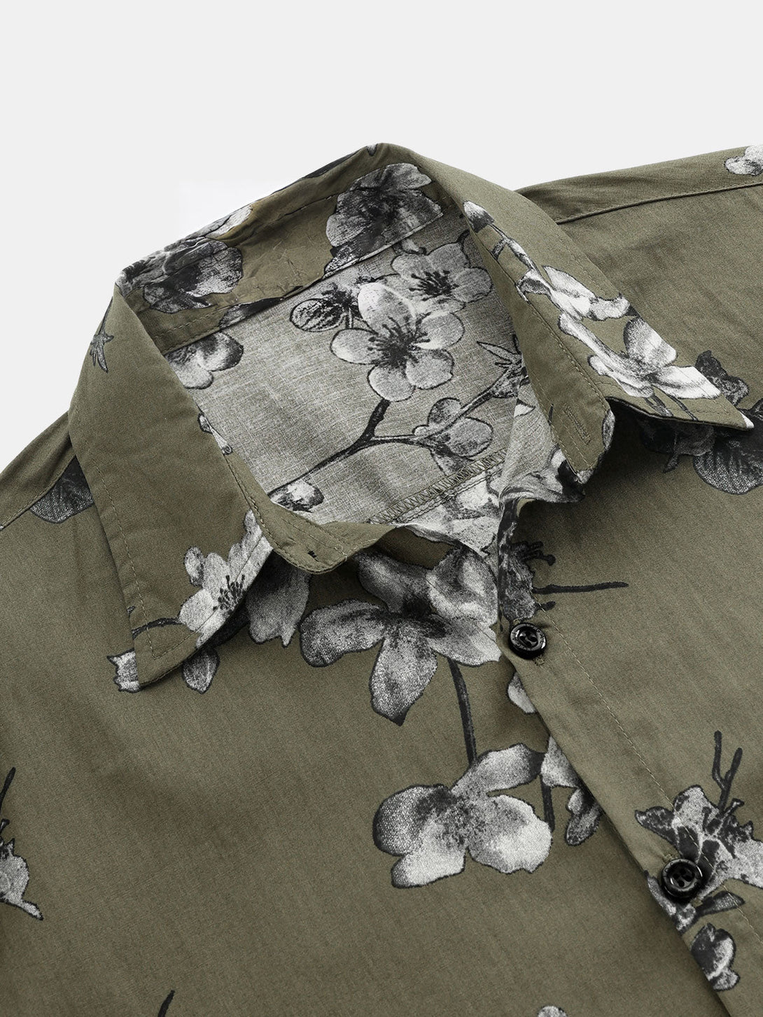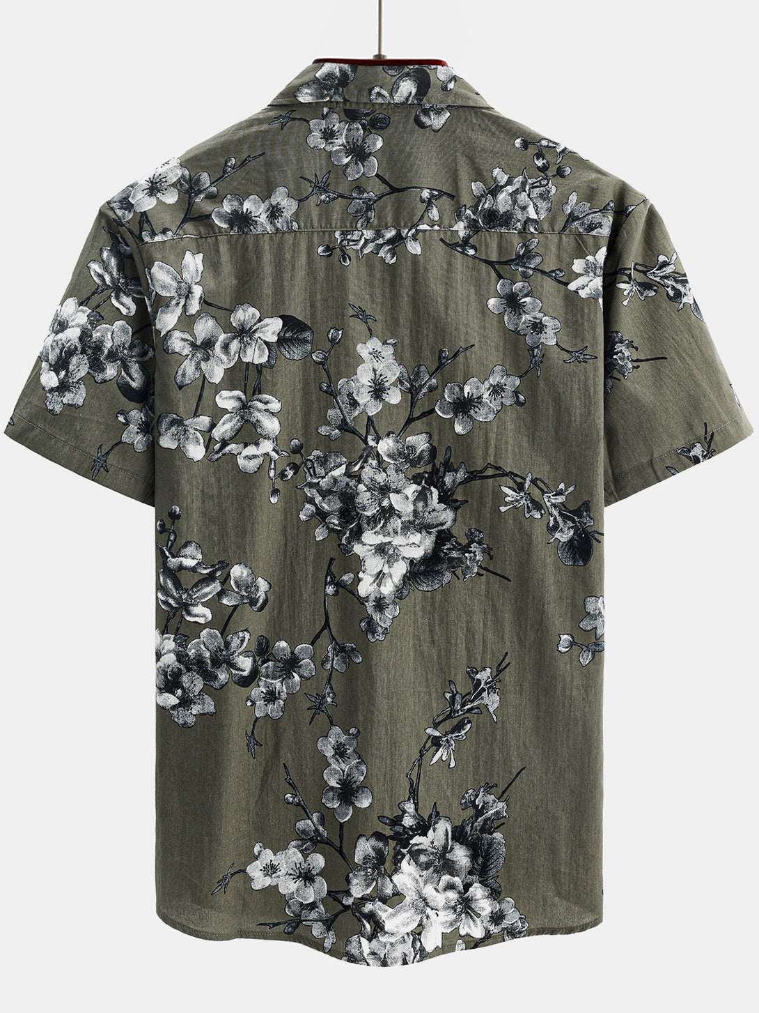 Men's Short-Sleeved Floral Cotton Shirt For Summer And Beach