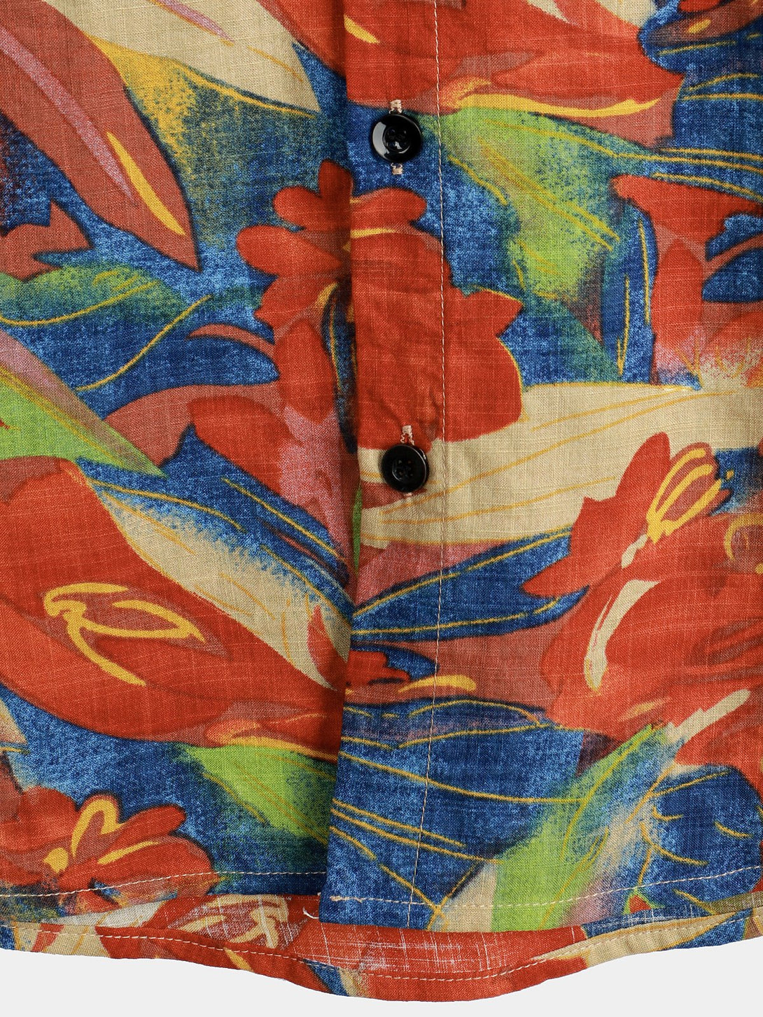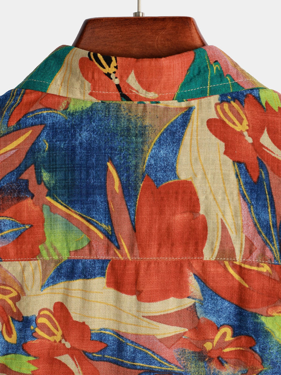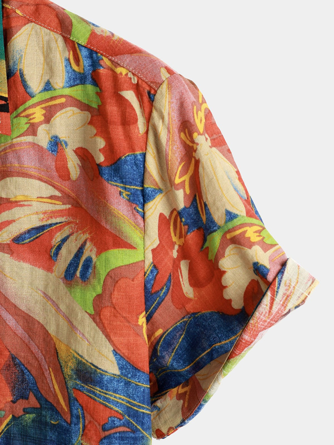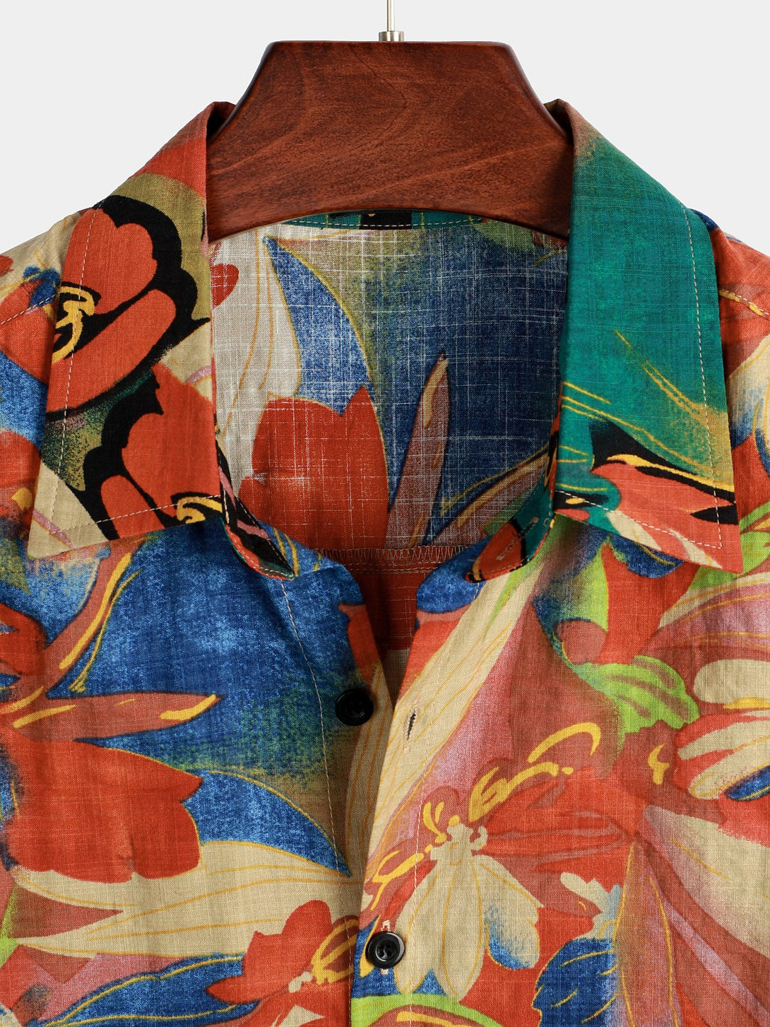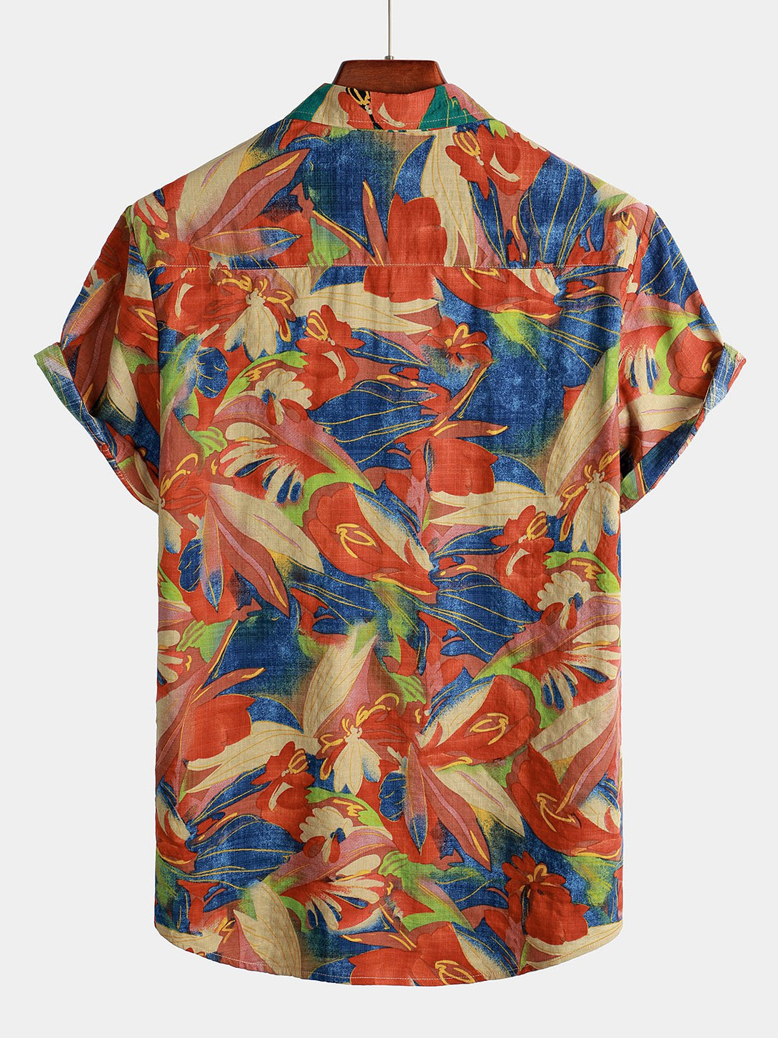 Men's Retro-Style Short-Sleeved Button-Down Cotton Shirt