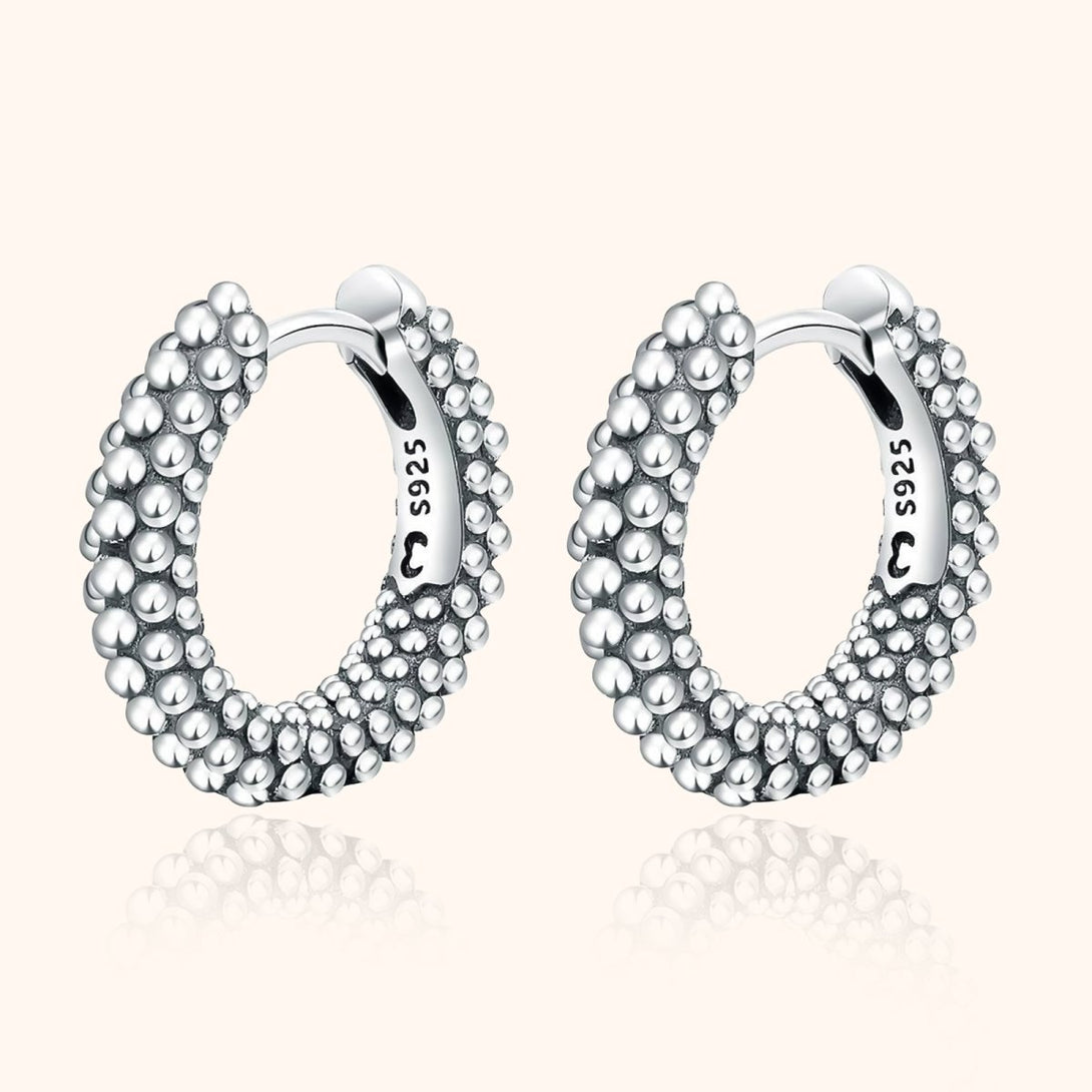 Hoop earrings surrounded by small, protruding balls that make your look unique, made of sterling silver (S925).