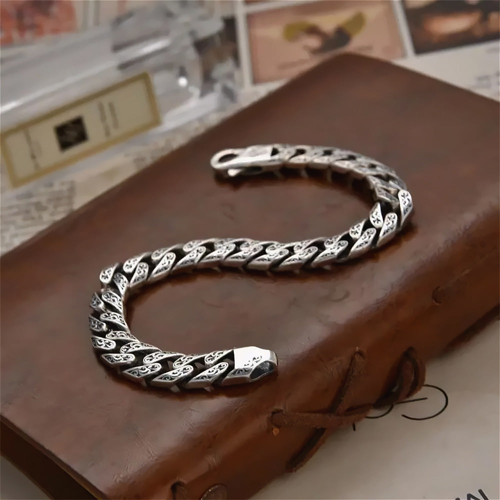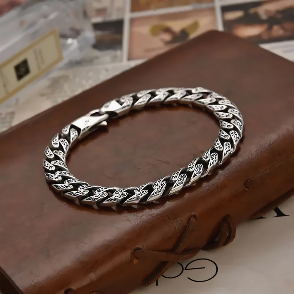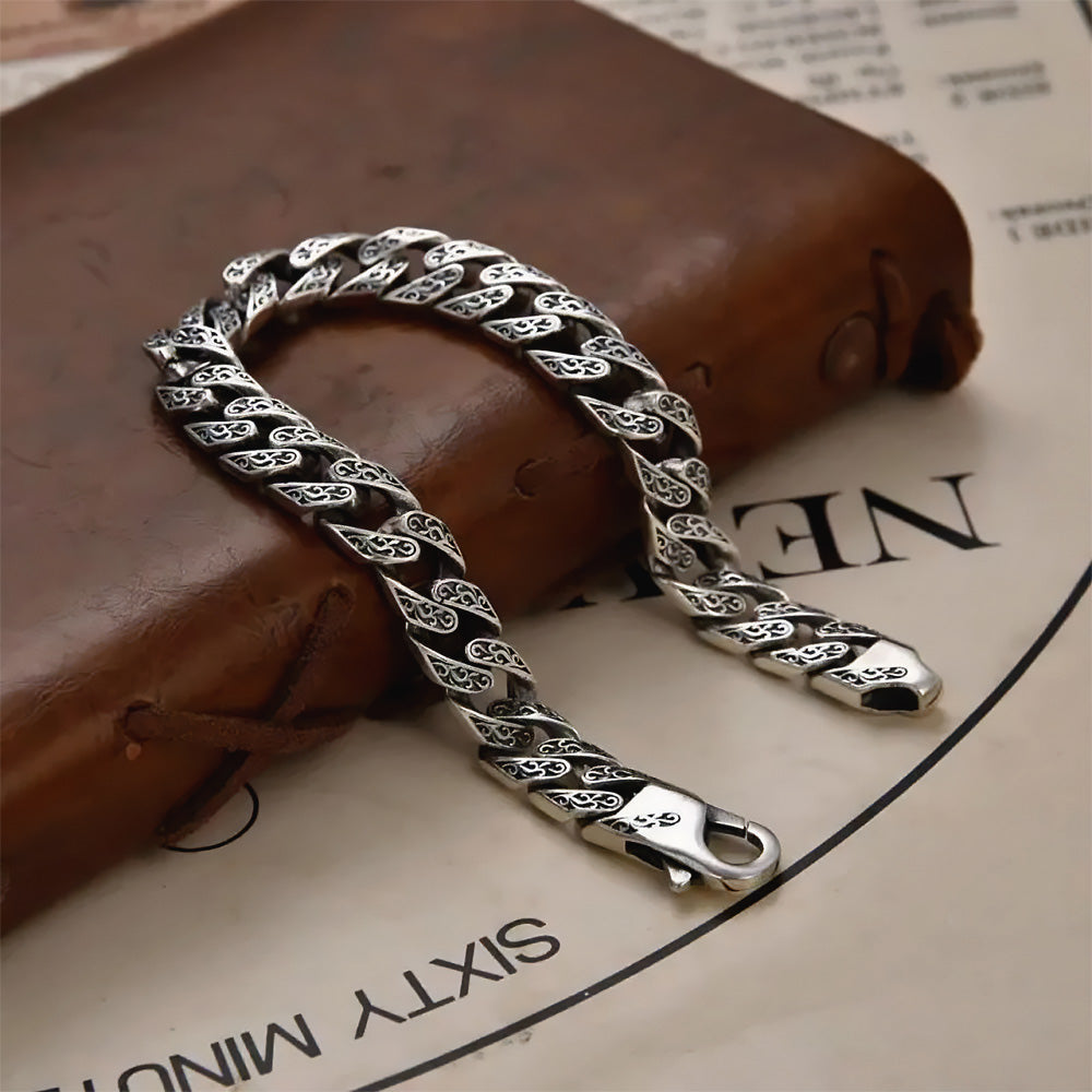 With its distinctive and eye-catching design, this embroidered silver bracelet will make you look even more attractive. Intricate patterns and unusual shapes are part of a design that reflects your personal style. With its unique design, this silver bracelet will make you stand out from the crowd.