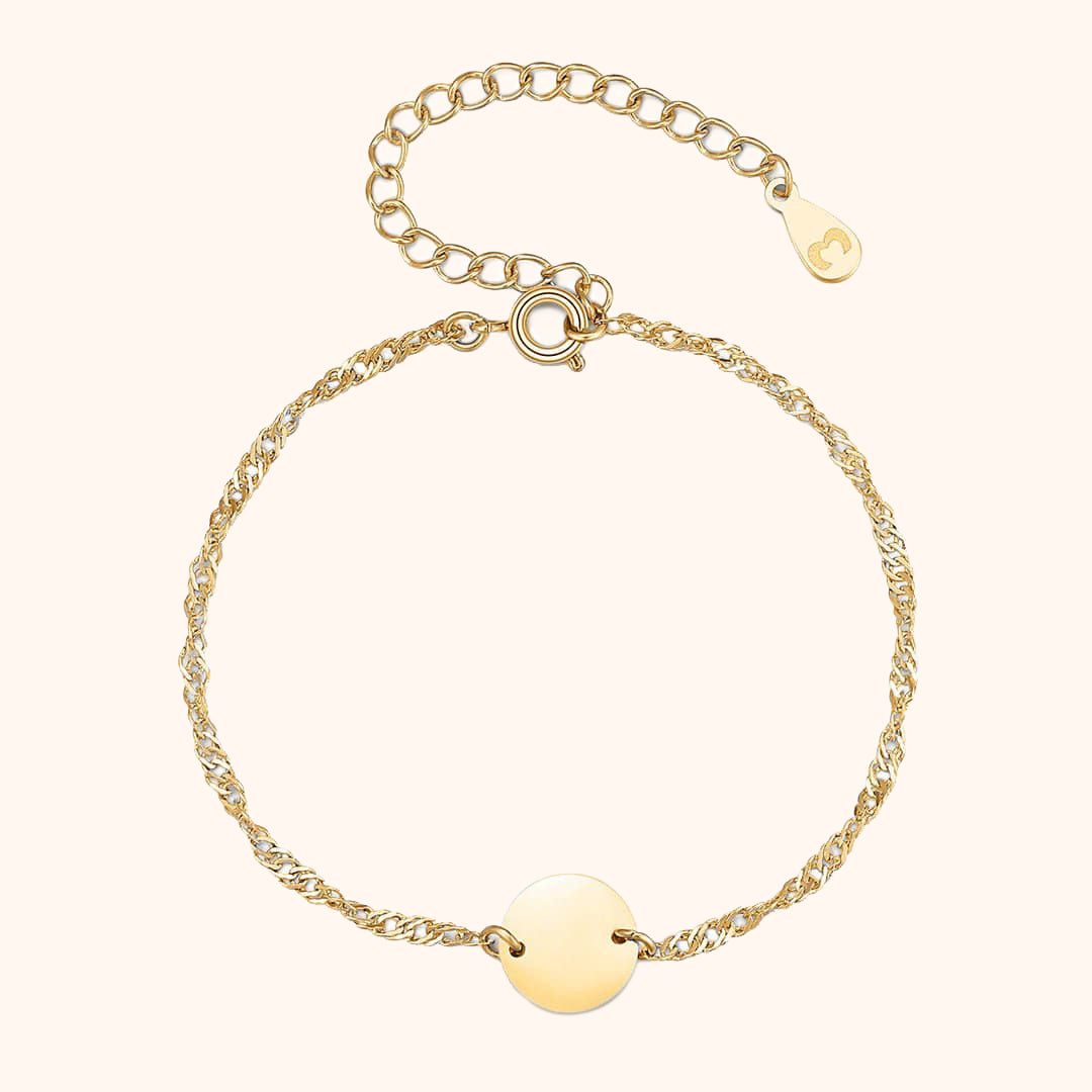 ❤️ A personal touch for everyday life. The Sensation bracelet is a minimalist piece characterized by its customizable pendant disc, ideal for engraving an initial, name, or special symbol. Made of 316L stainless steel and available in silver or 18-karat gold plating, it offers an elegant look that will withstand daily wear.
