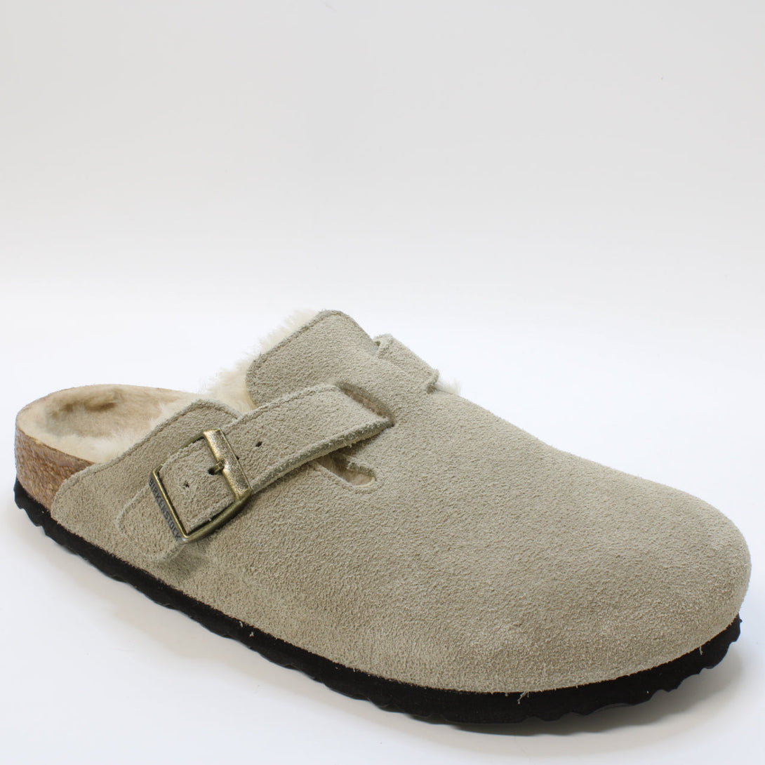 The classic Boston clog by BIRKENSTOCK, designed to wear all year round. The adaptable strap and strong metal buckle, along with classic BRIKENSTOCK shaped cork-latex footbed and cosy fur lining make these clogs comfortable for all foot types.