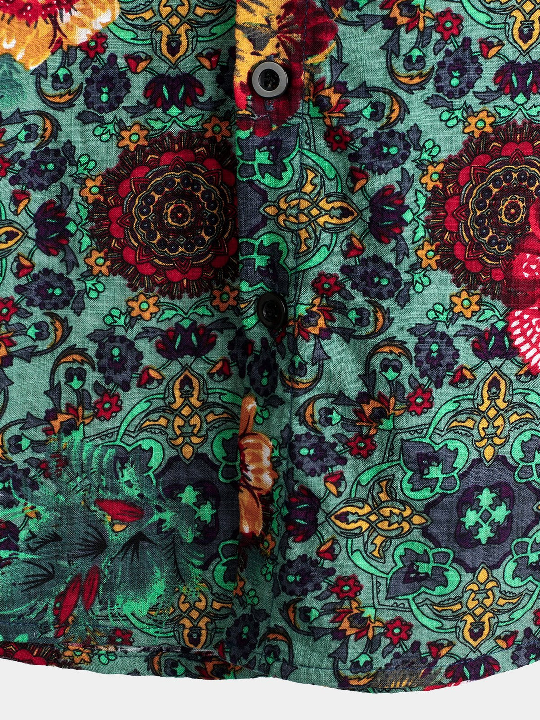 Men's Hawaiian Cotton Shirt With Vintage Floral Print And Short Sleeves