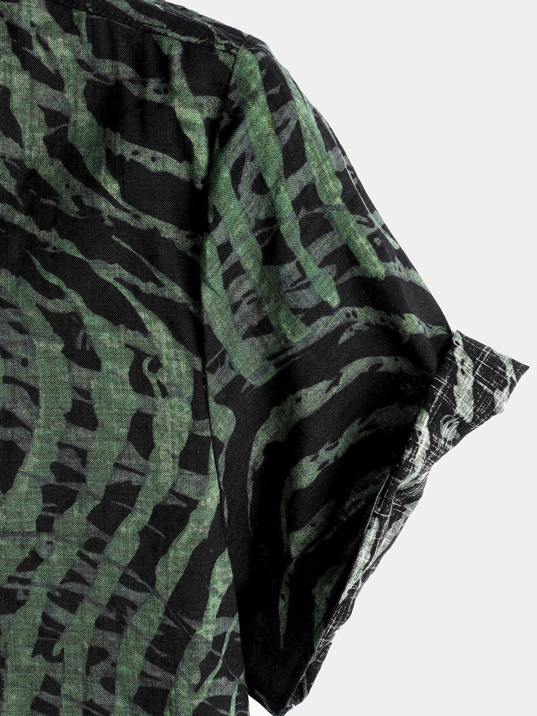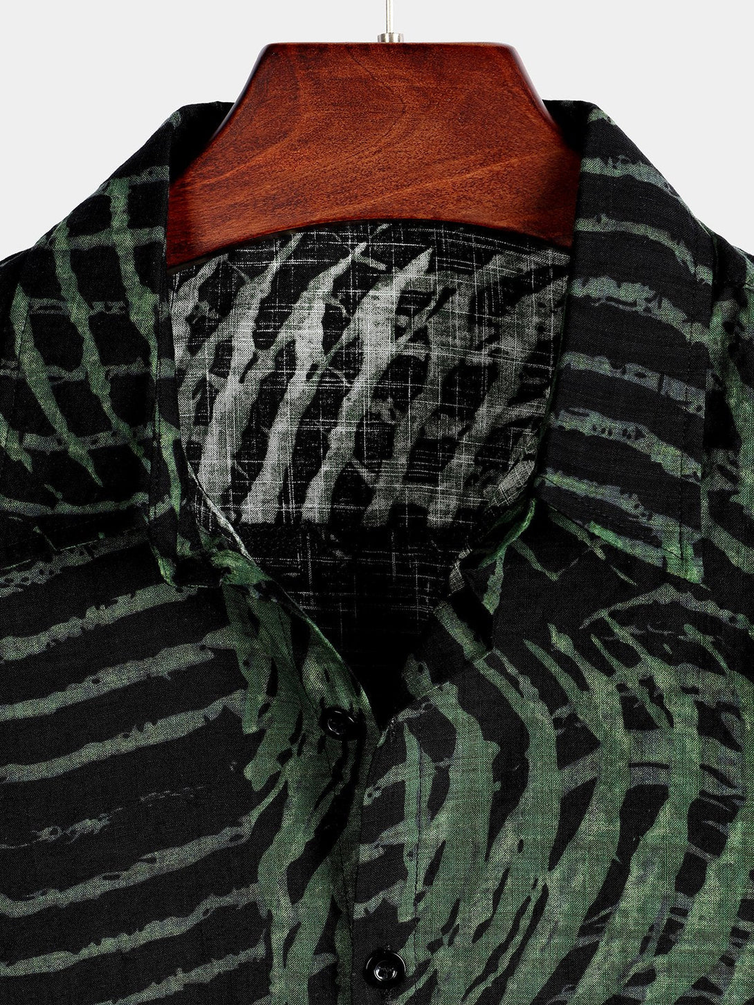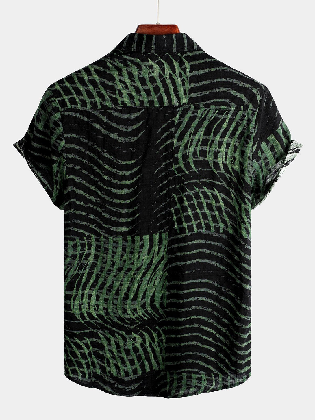Men's Summer Short-Sleeved Shirt With Retro Print In Green