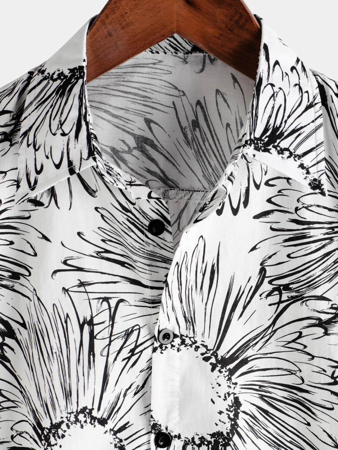 Men's Summer Hawaiian Button-Down Shirt With Short Sleeves In Cotton With Sunflower Print