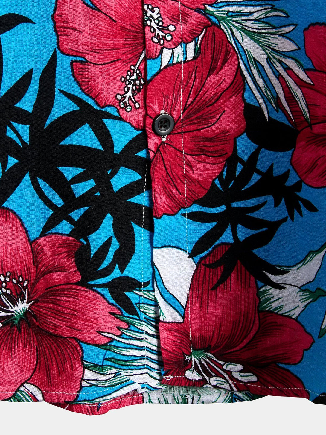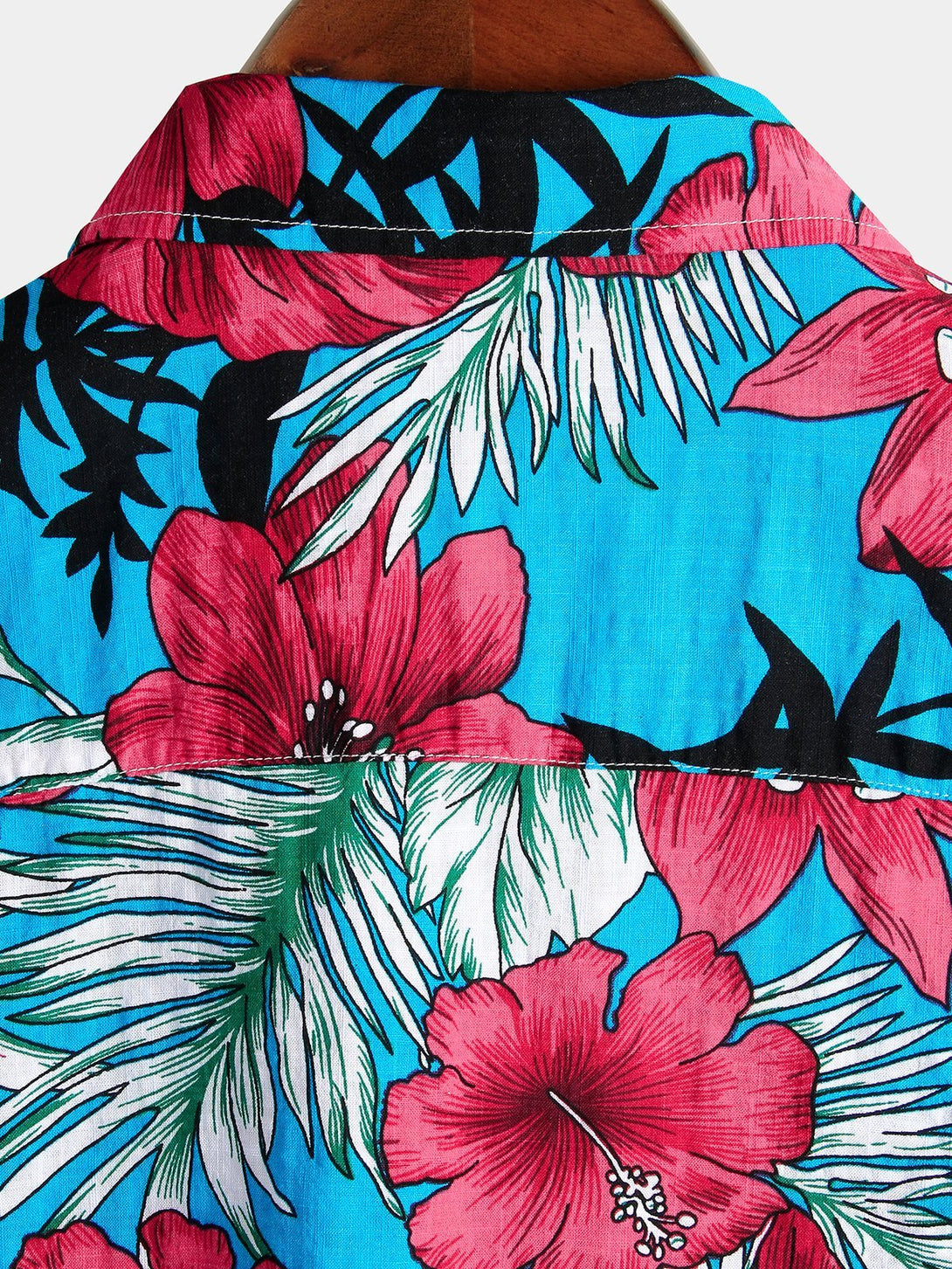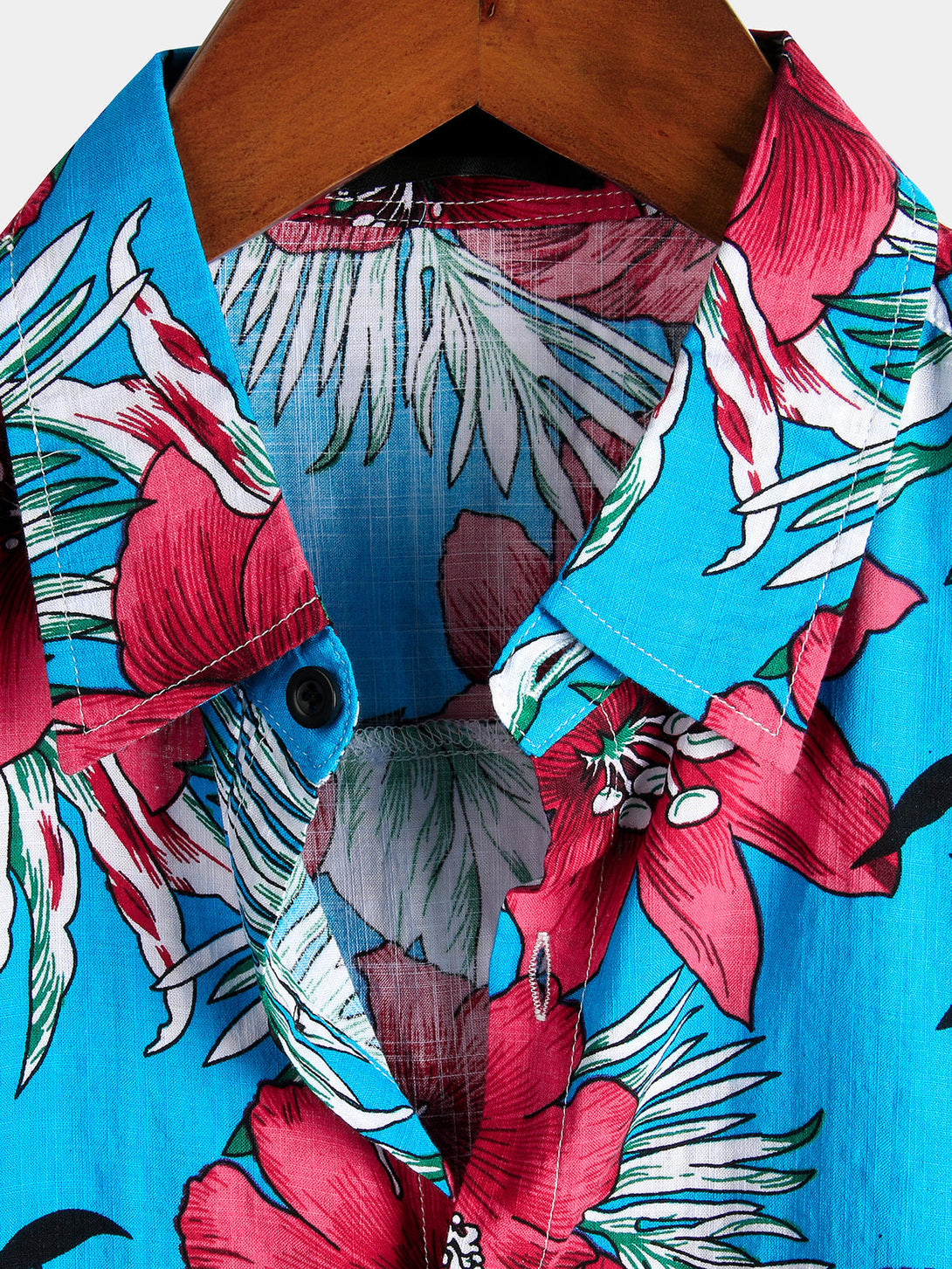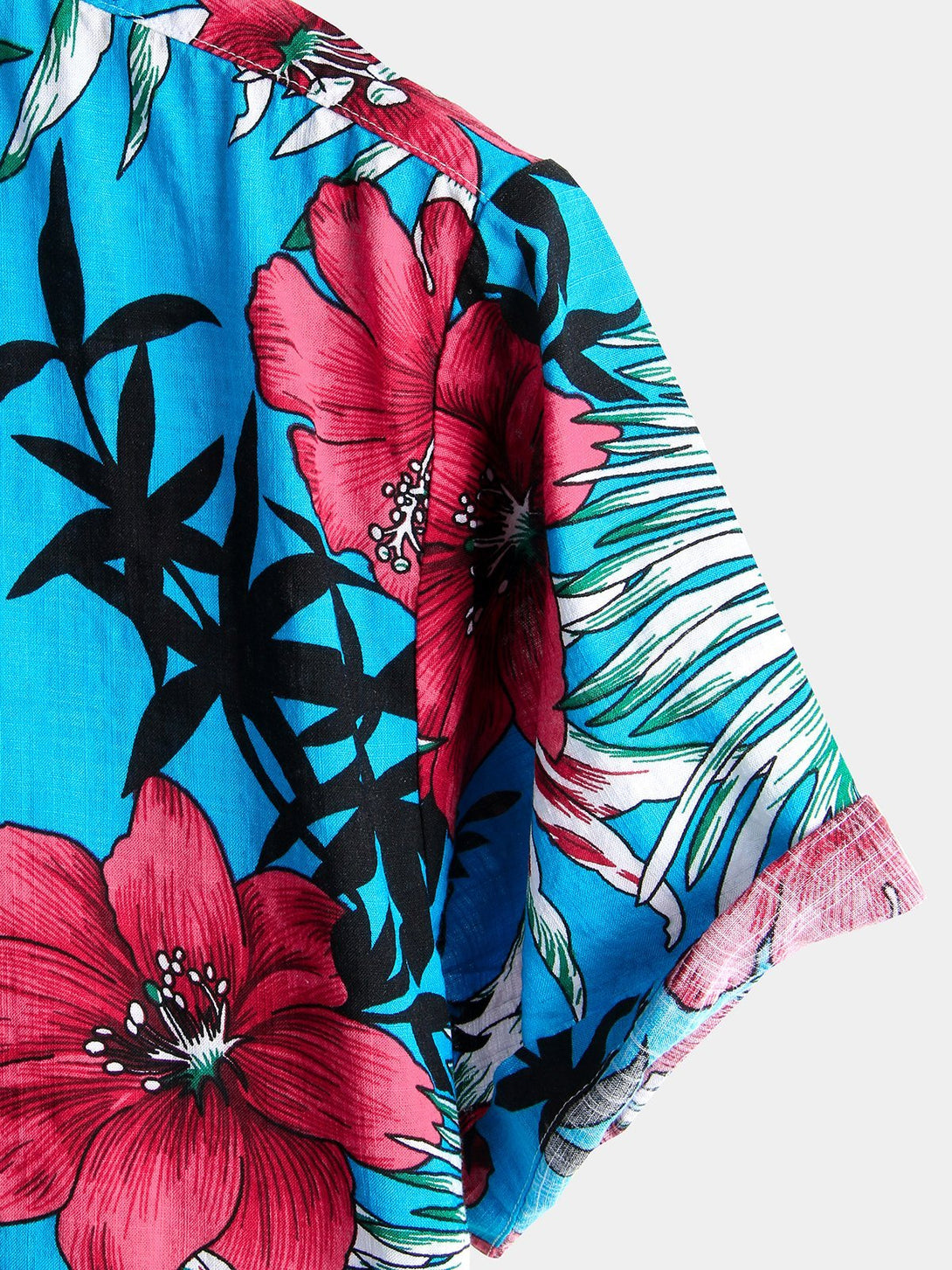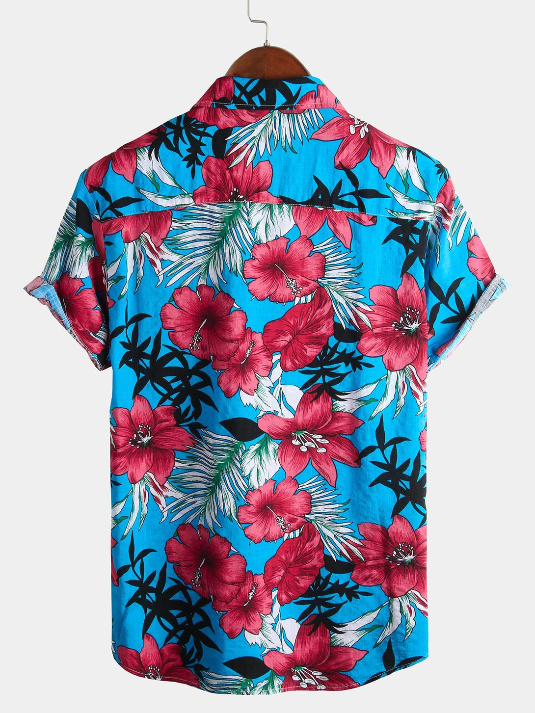 Men's Shirt Made Of Blue Tropical Hawaiian Cotton With Floral Pattern