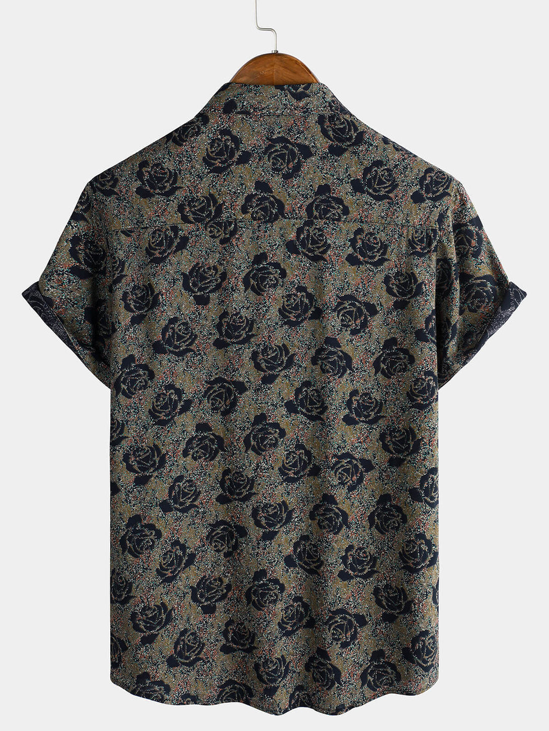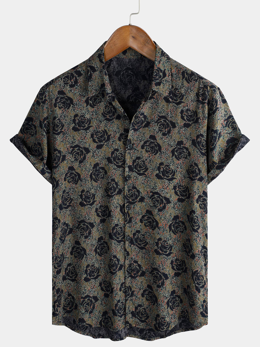 Men's Floral And Rose Print Holiday Casual Summer Short Sleeve Button Down Shirt