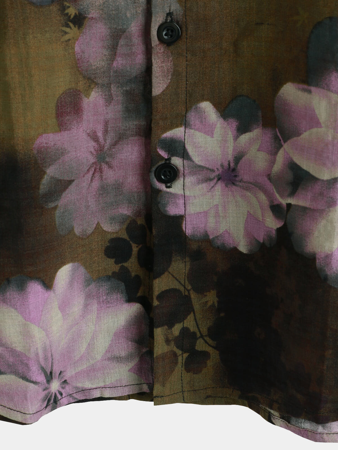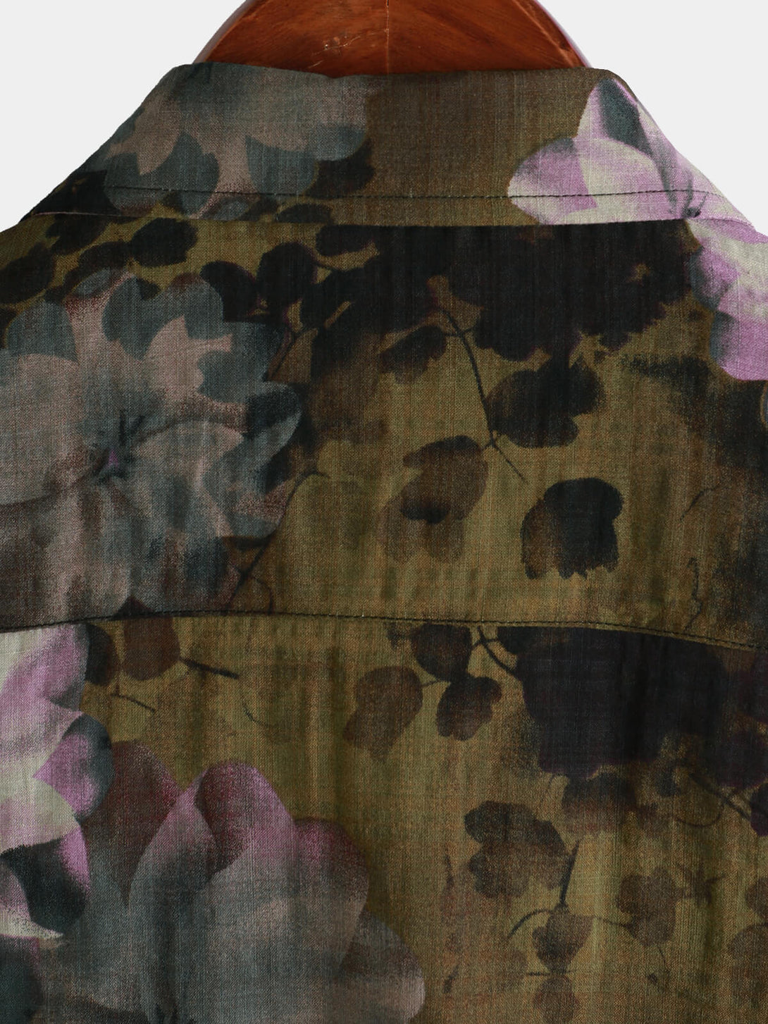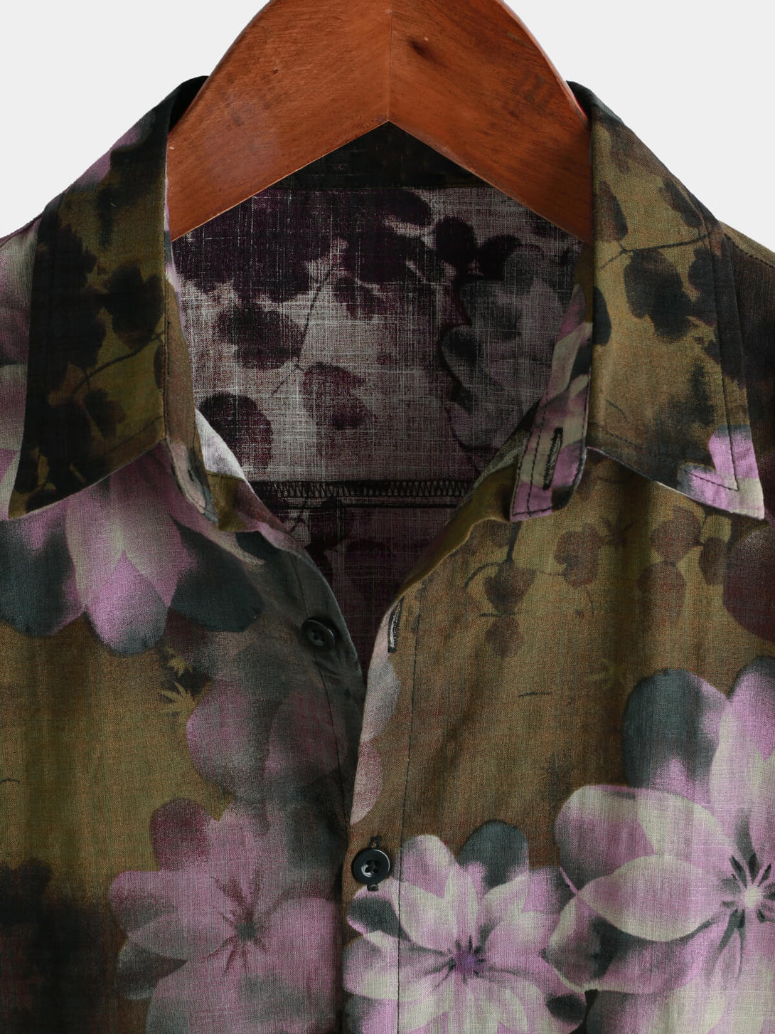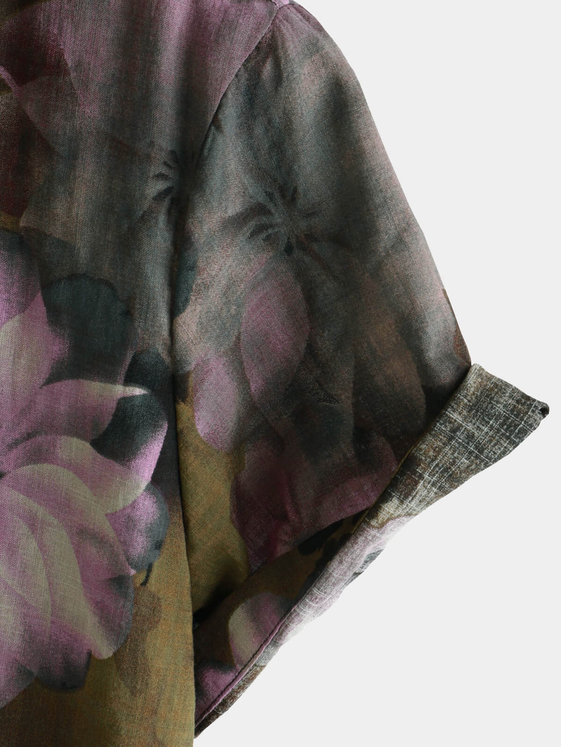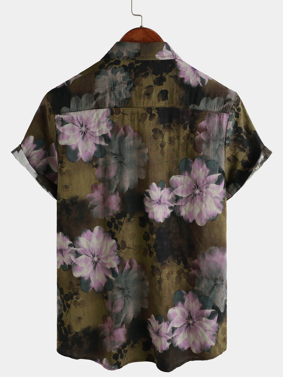 Men's Retro Style Short Sleeve Button Down Shirt With Floral Pattern In Pink