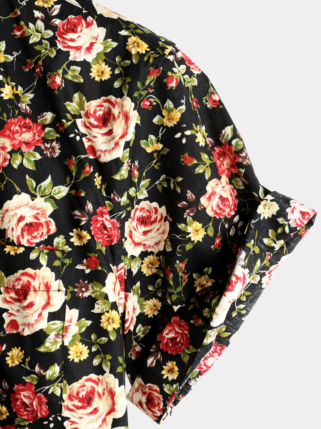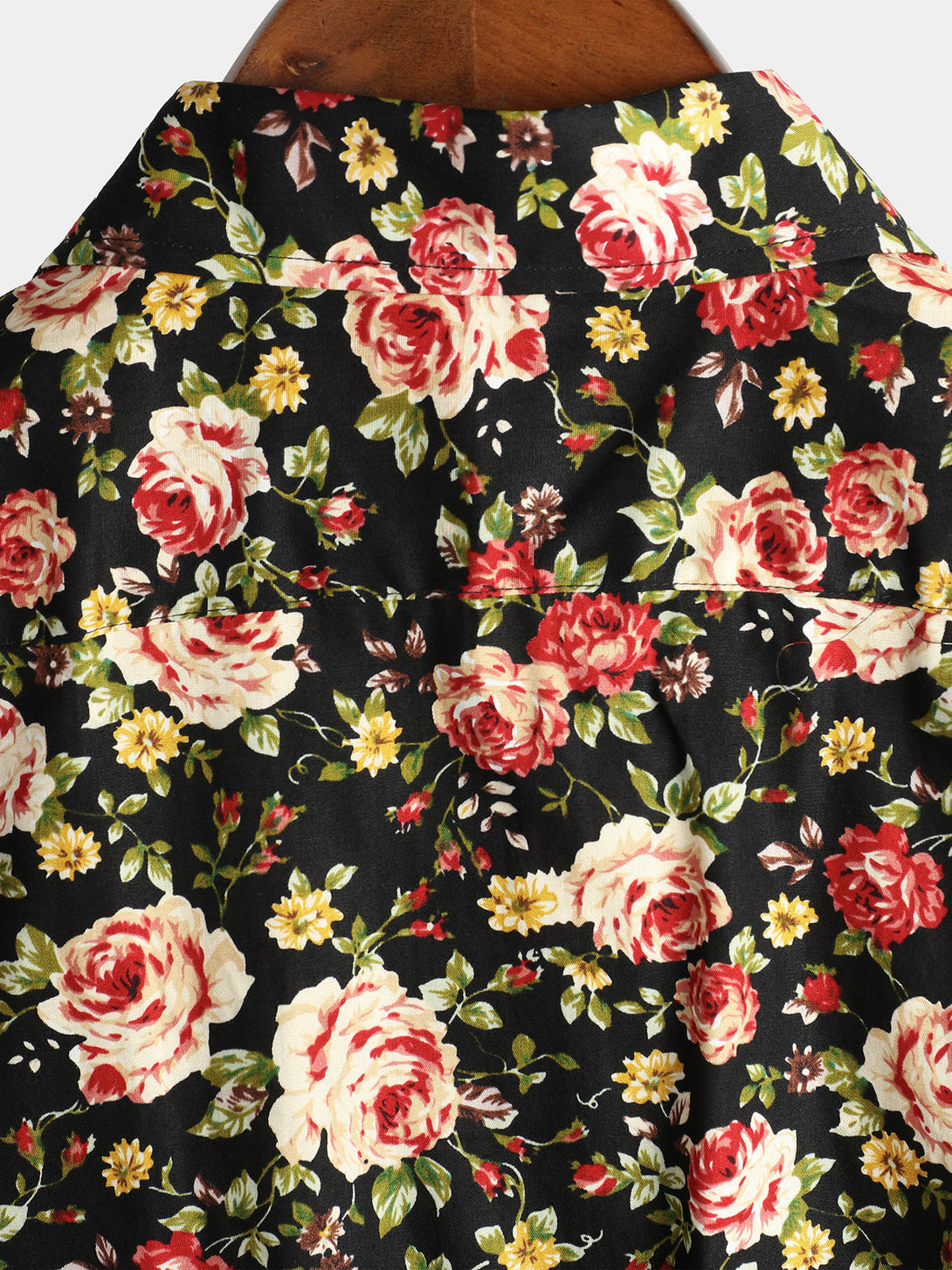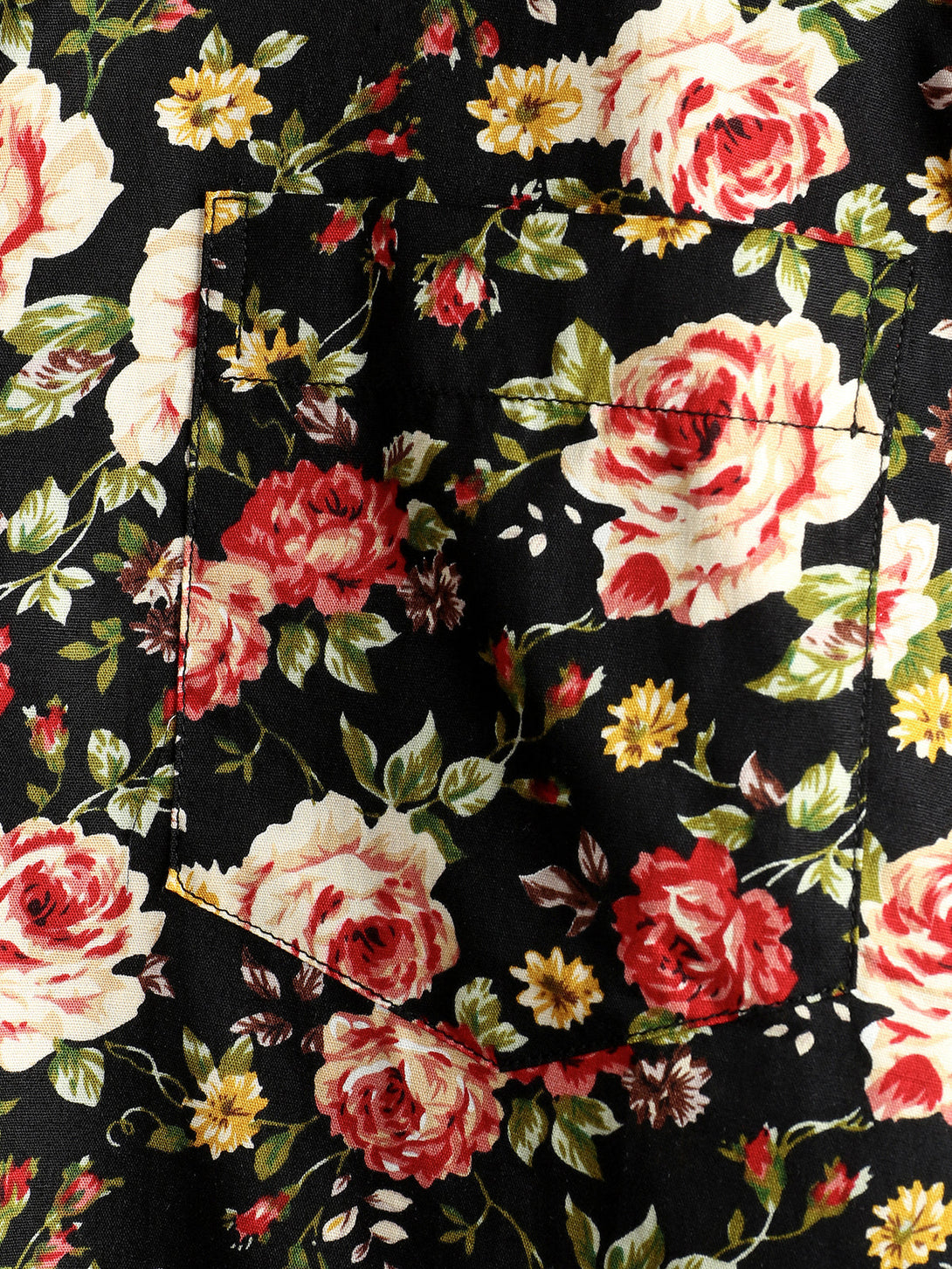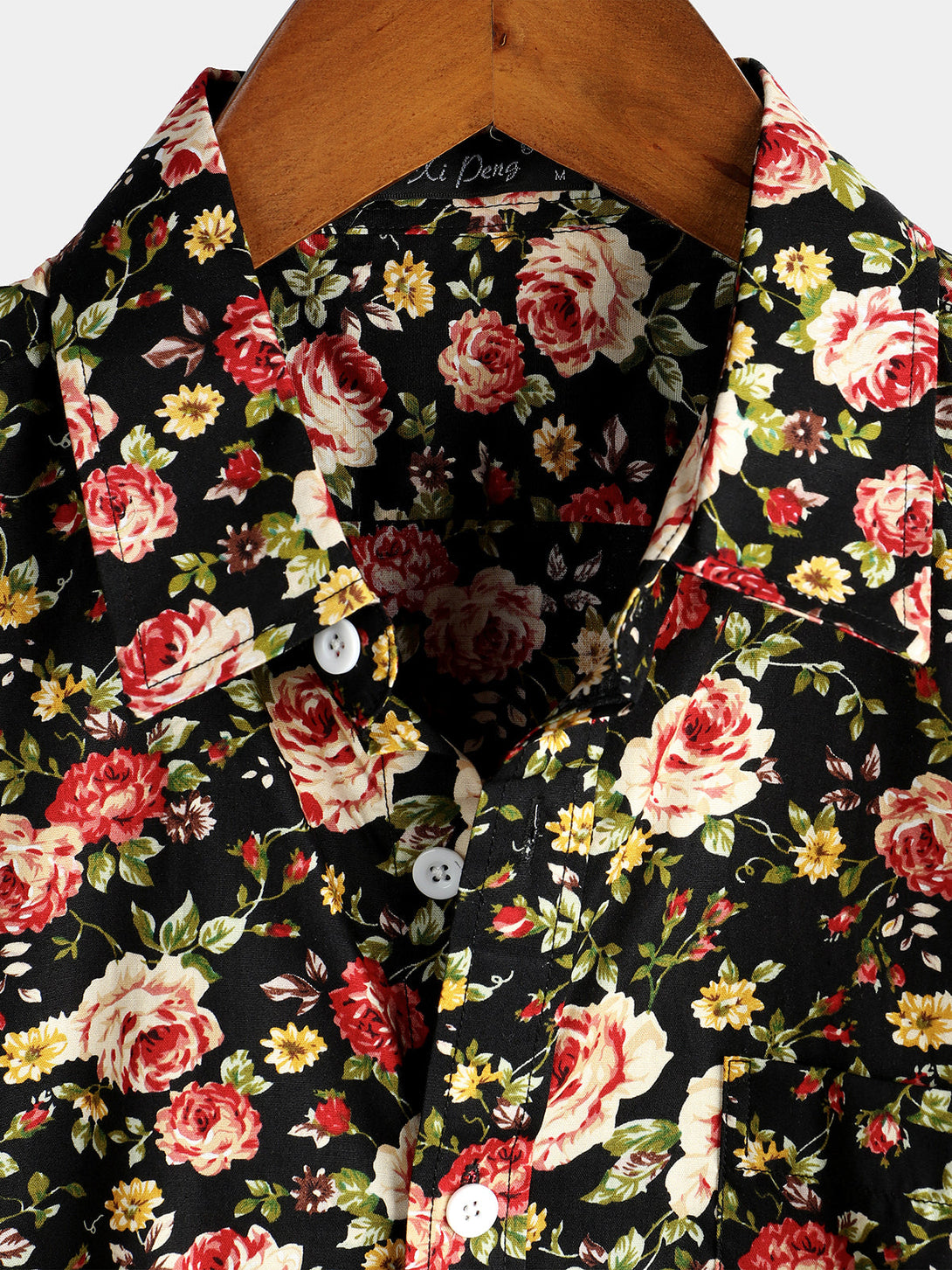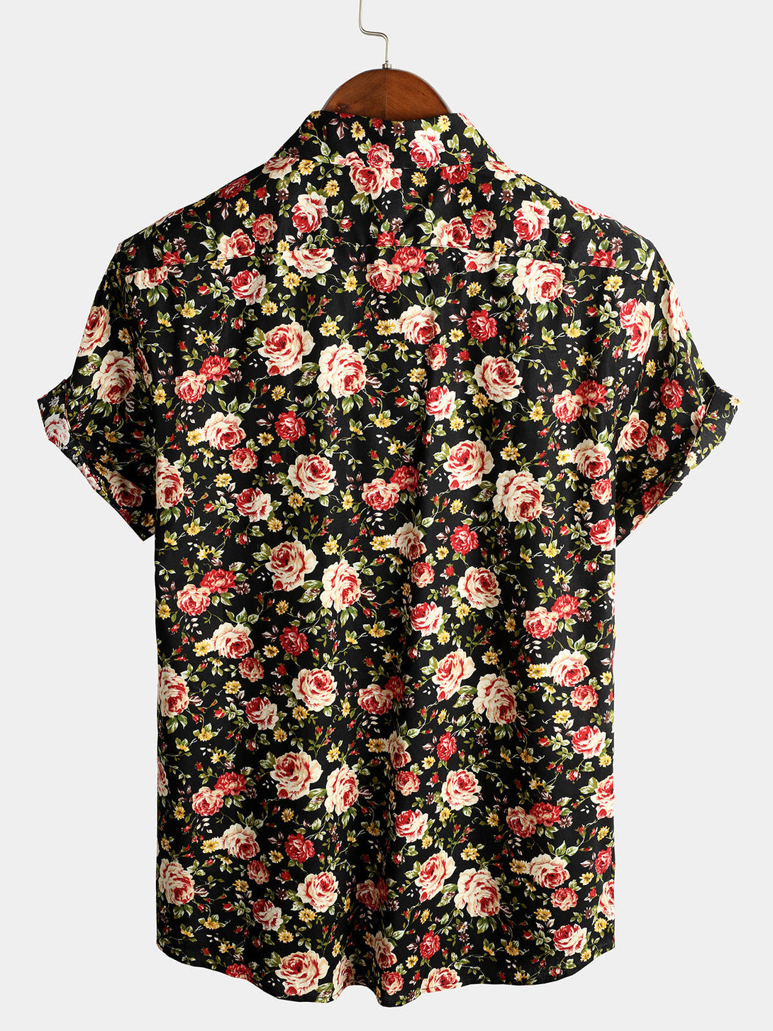 Men's Black Short-Sleeved Shirt Made Of Pink Cotton