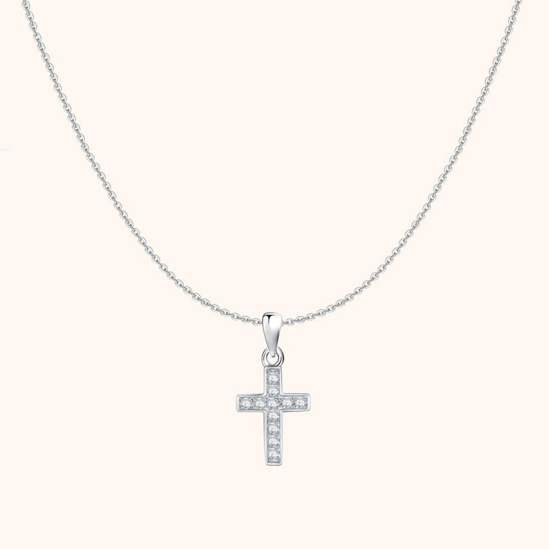 Beautiful necklace with a beautiful cross, decorated with shiny zircons, made of sterling silver (S925).