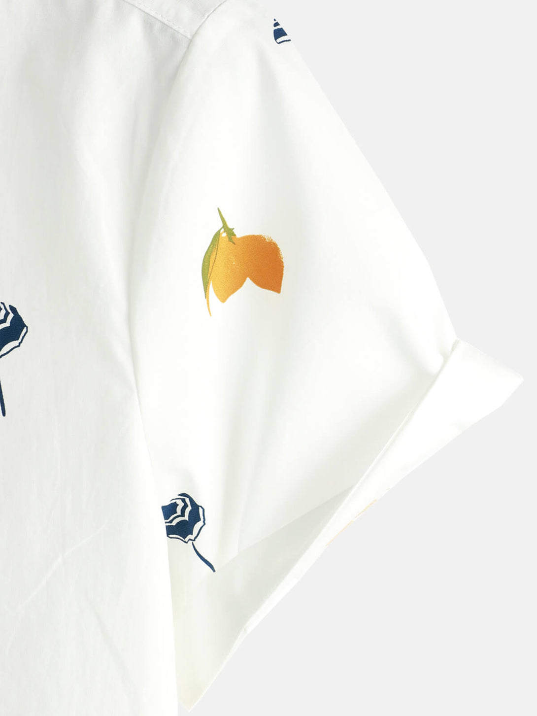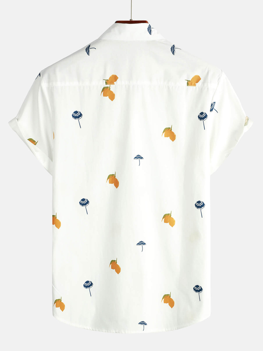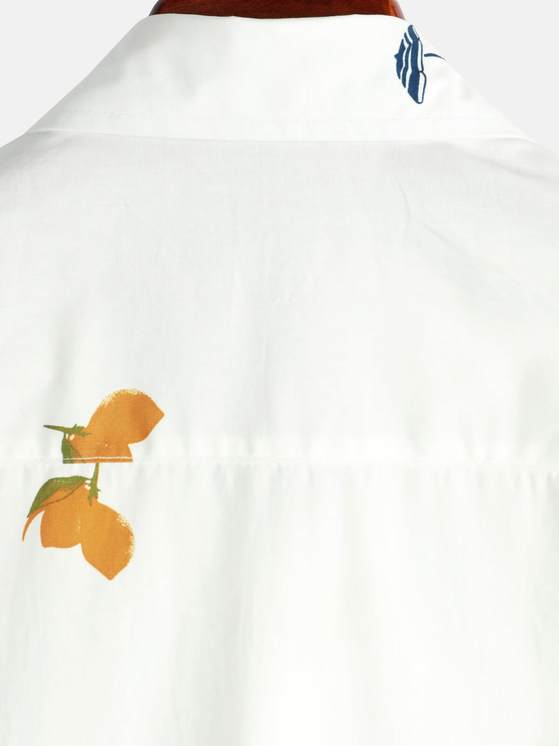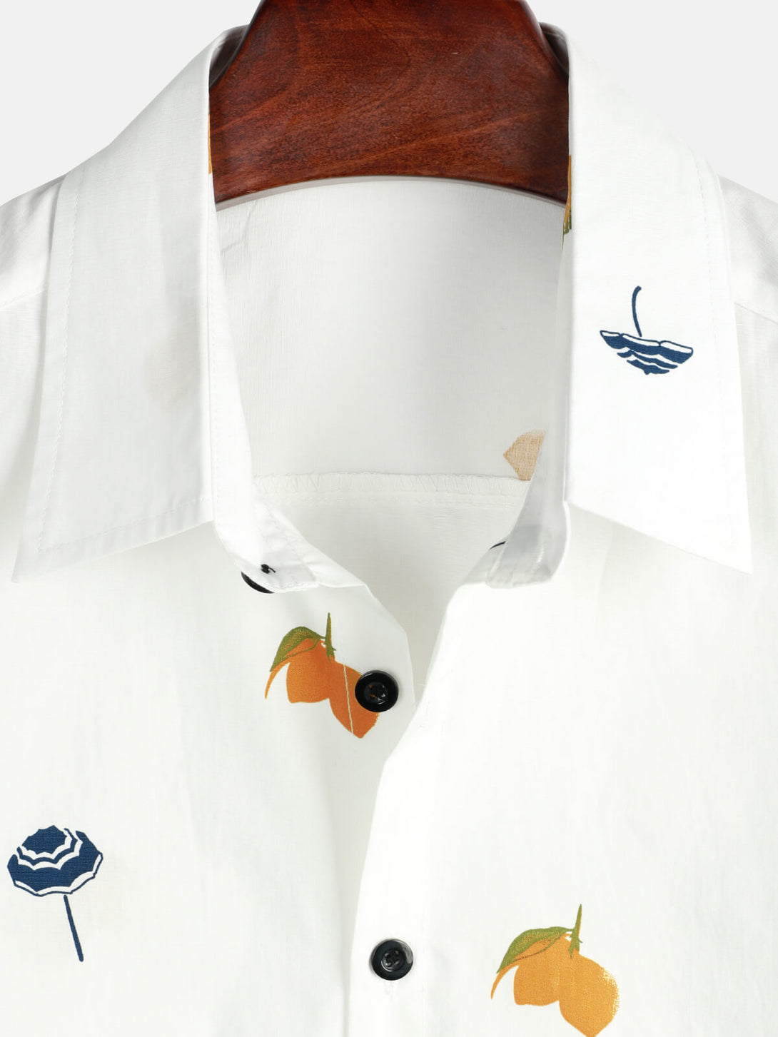 Men's White Cotton Hawaiian Shirt With Buttons, Beach Vacation, Summer Short Sleeve Shirt