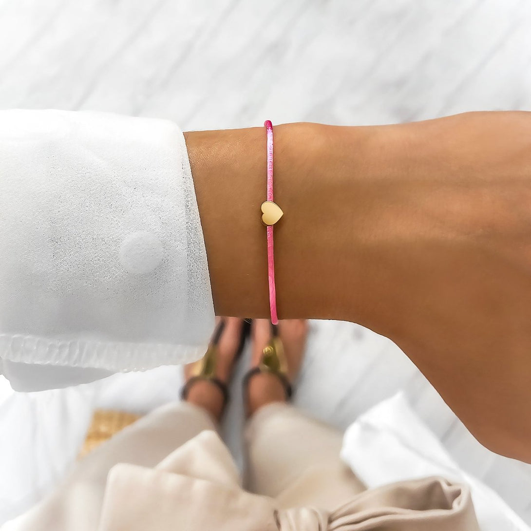 Adjustable rope bracelet with intense colors and a delicate little heart, made of high-quality stainless steel (316L).