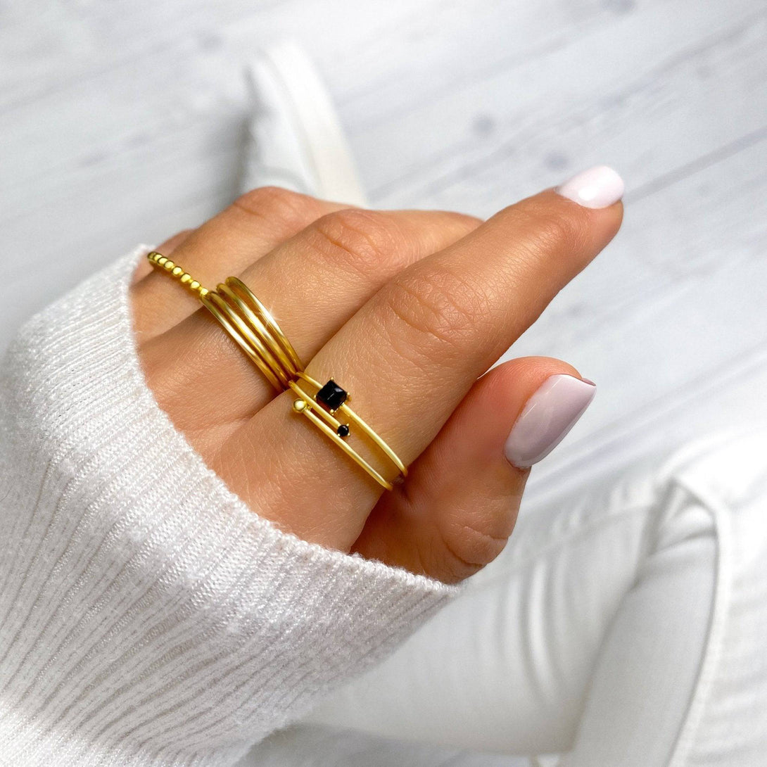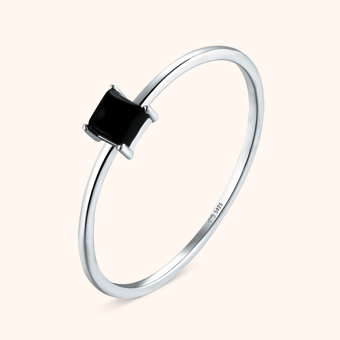 Thin hoop ring, accompanied by a black square cubic zirconia, made of sterling silver (S925).
