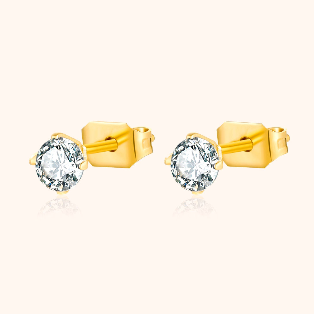 Mini-style earrings, with a shiny zirconia as the main detail, in five different sizes to choose from, made of high-quality stainless steel (316L).