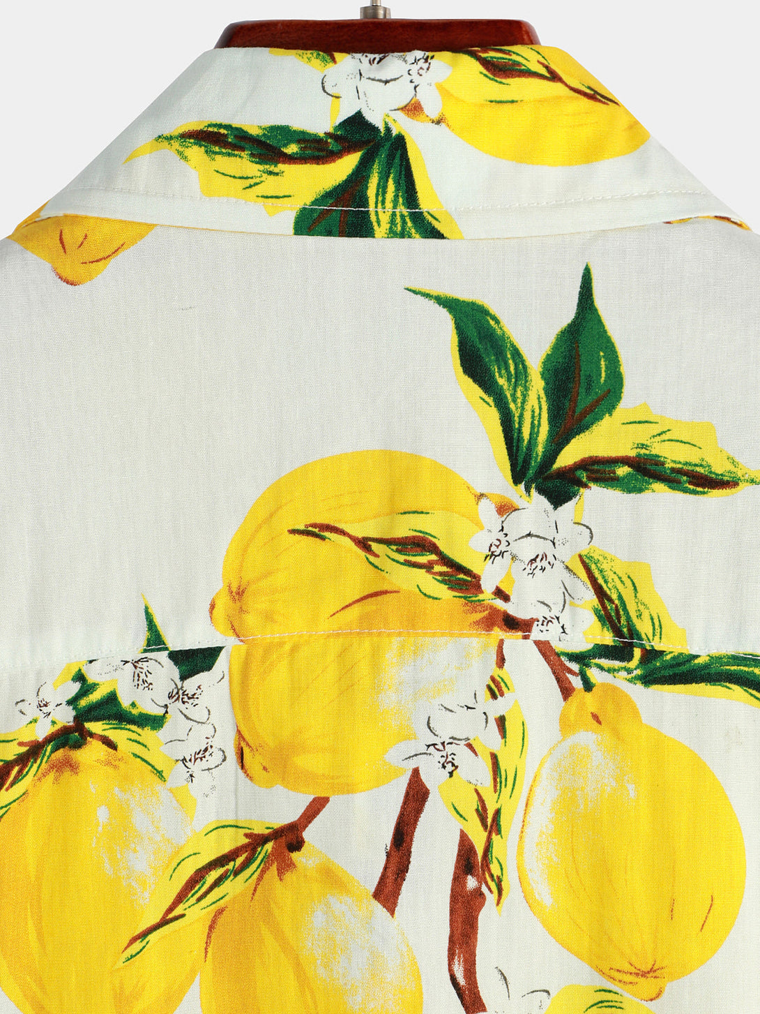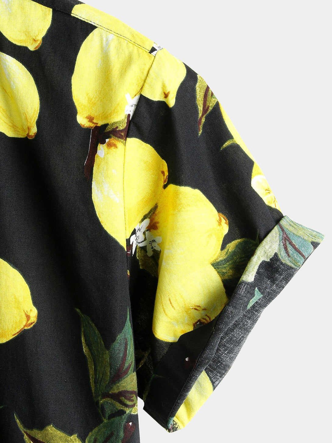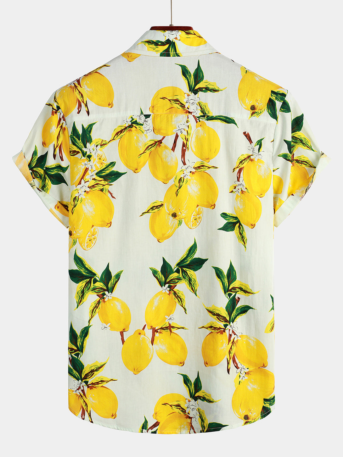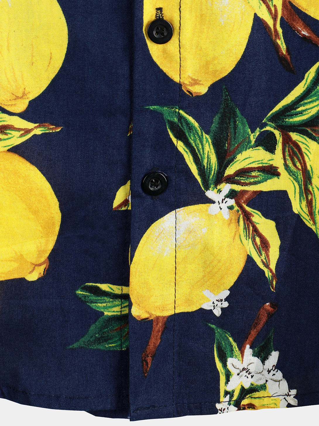 Men's Hawaiian Short-Sleeved Shirt With Tropical Yellow Lemon Pattern