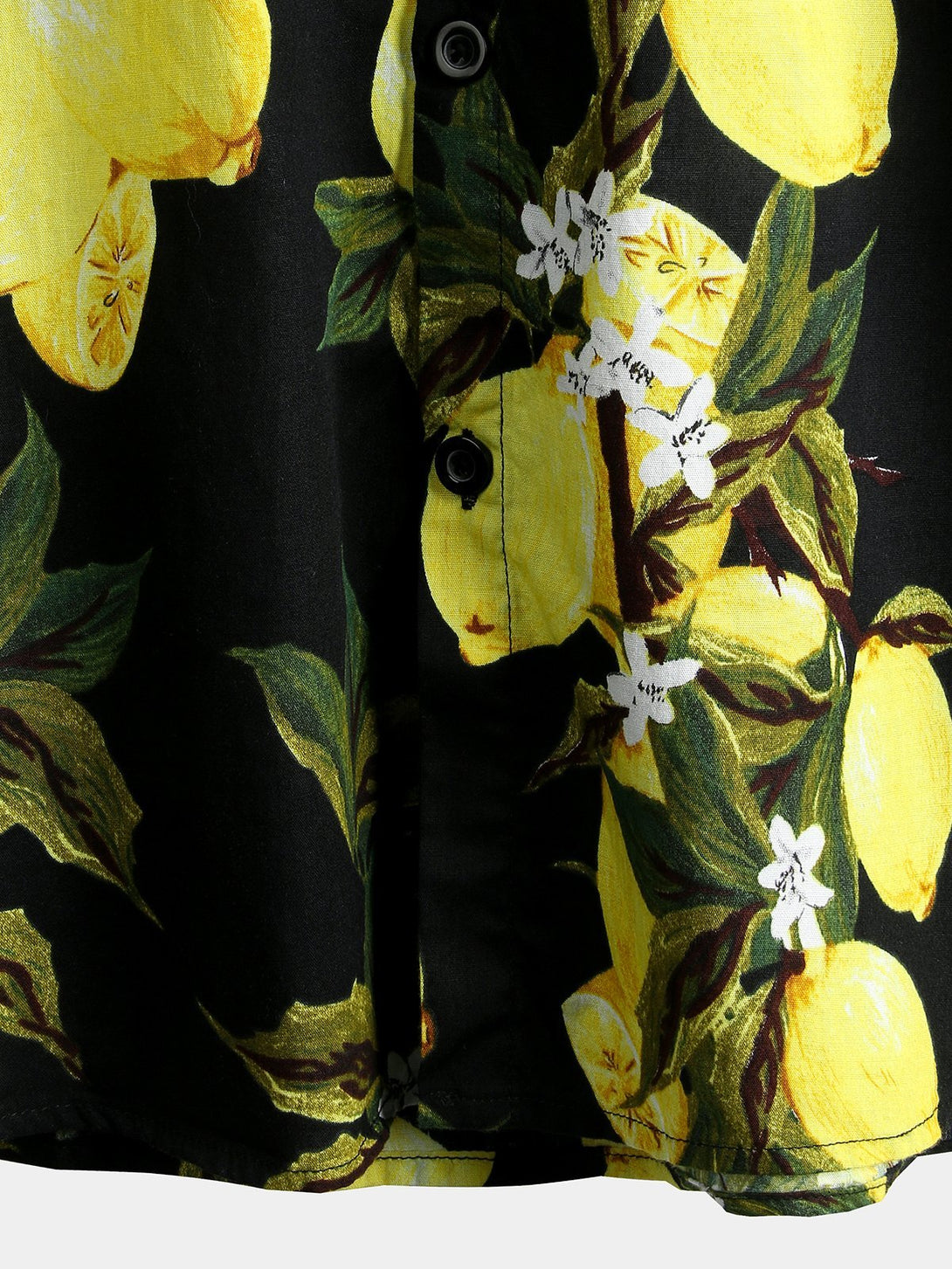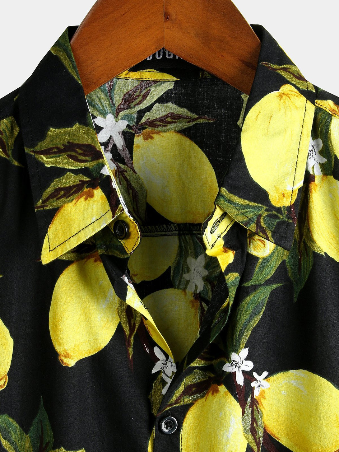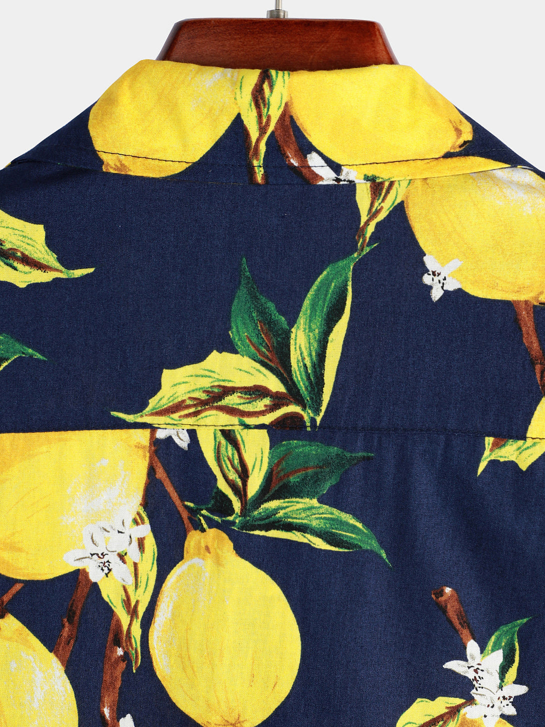 Men's Hawaiian Short-Sleeved Shirt With Tropical Yellow Lemon Pattern