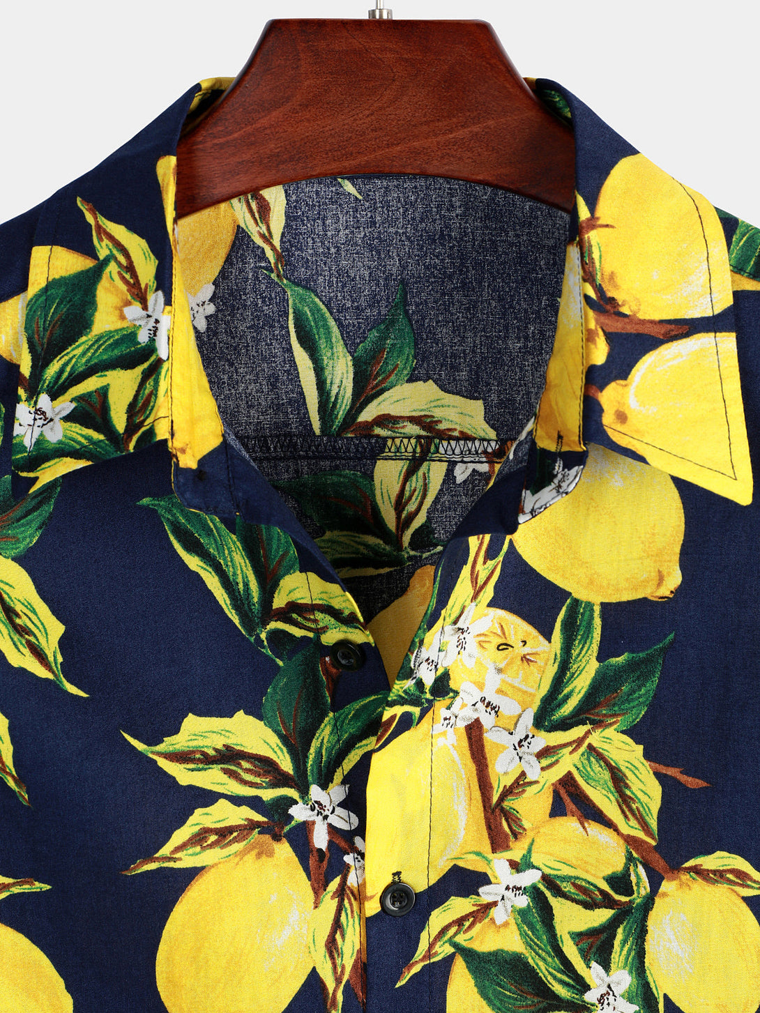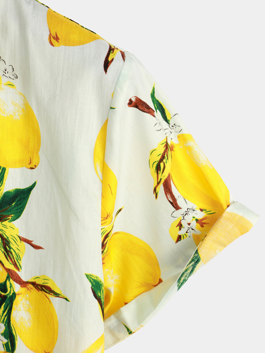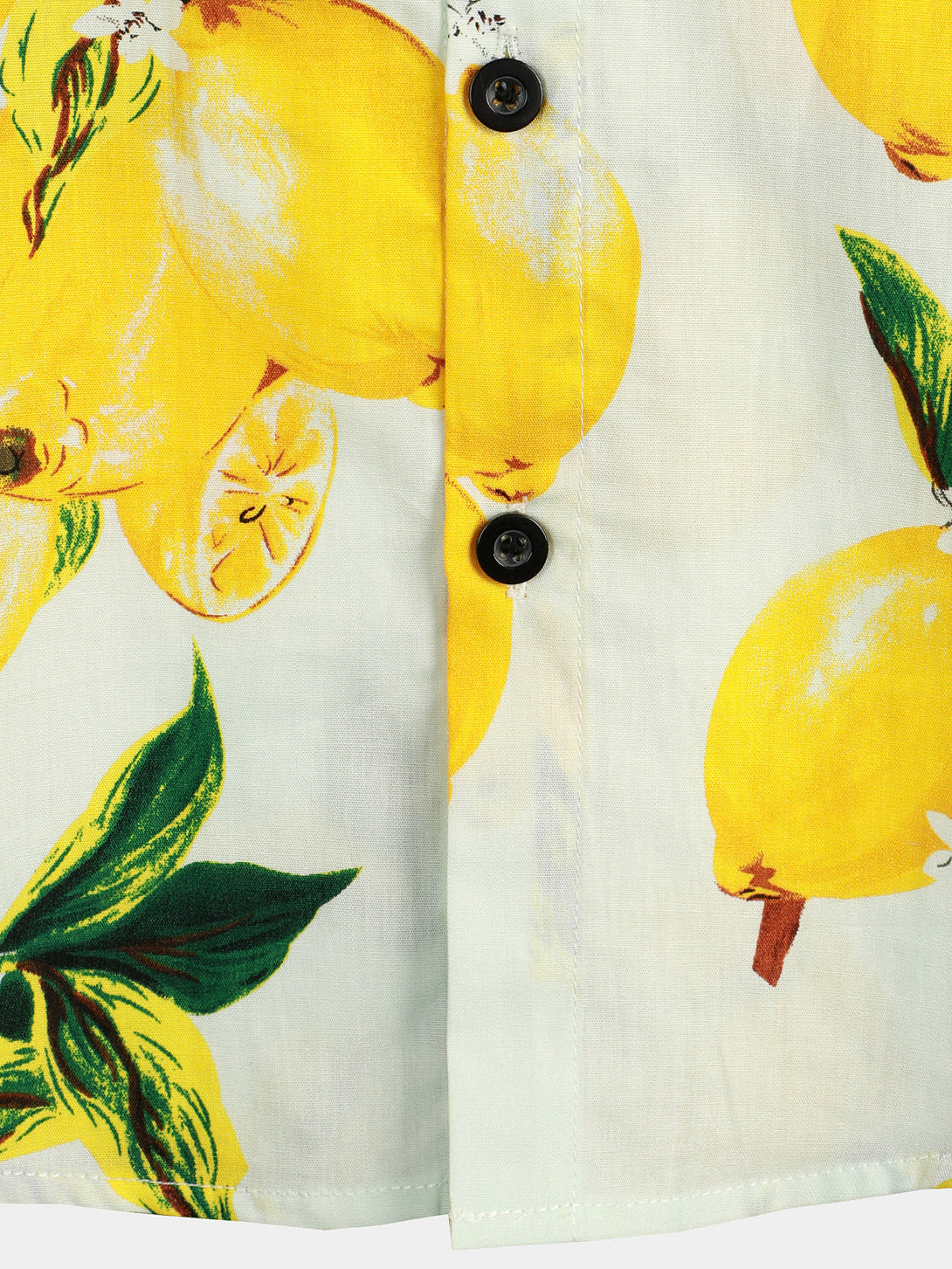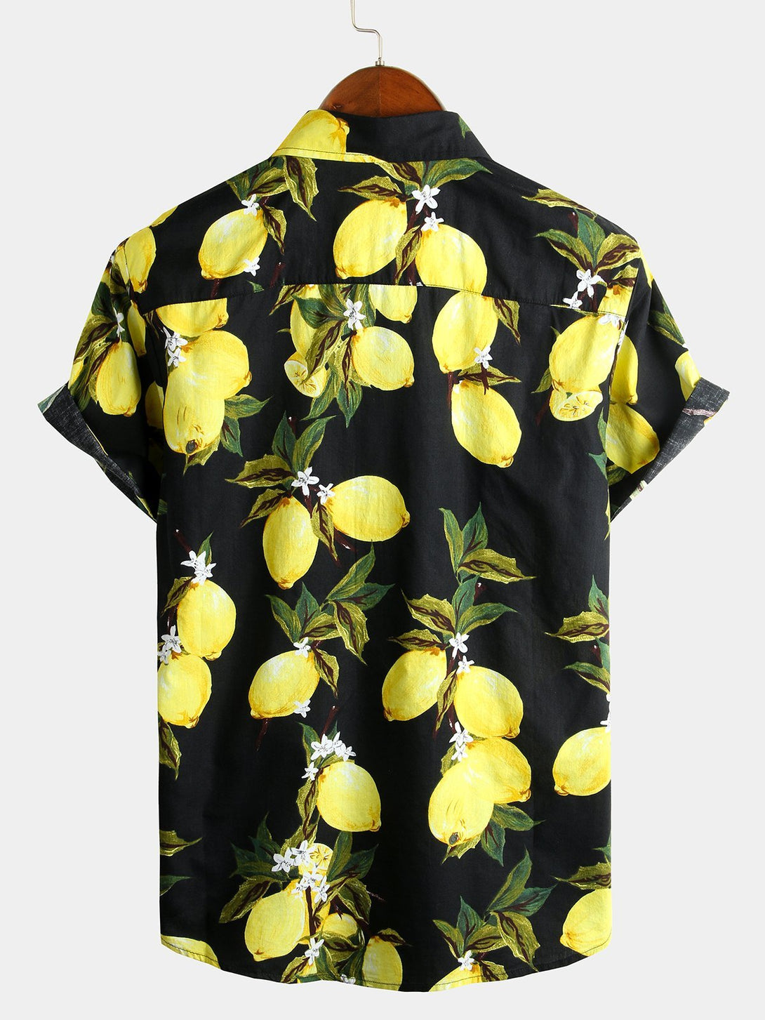 Men's Hawaiian Short-Sleeved Shirt With Tropical Yellow Lemon Pattern