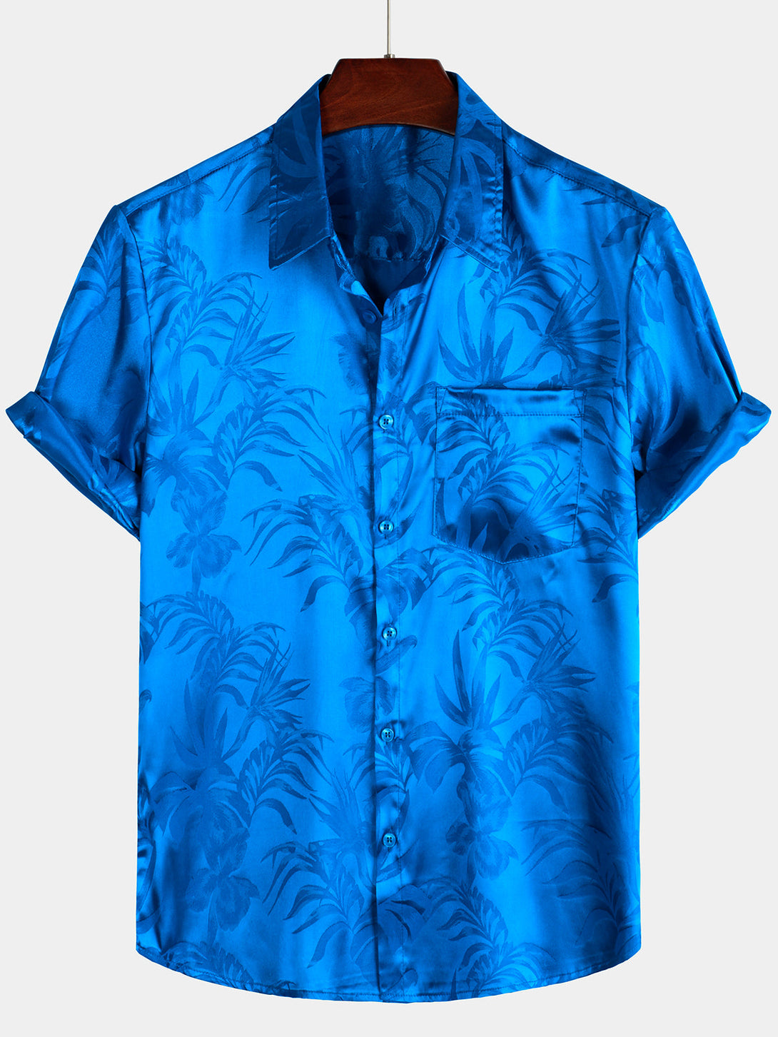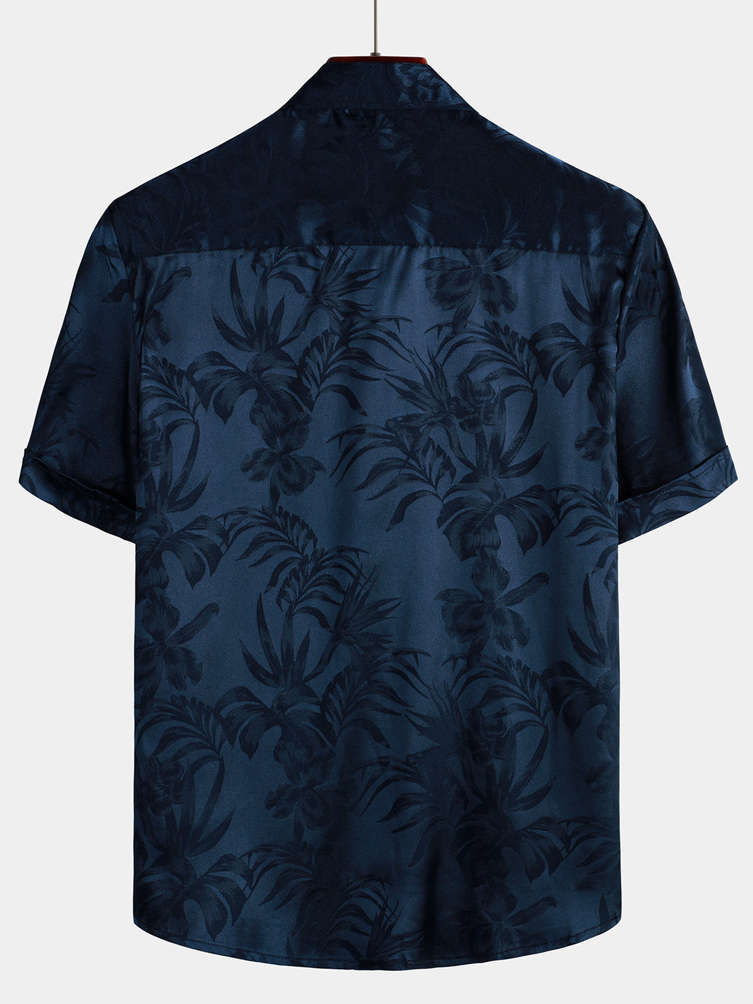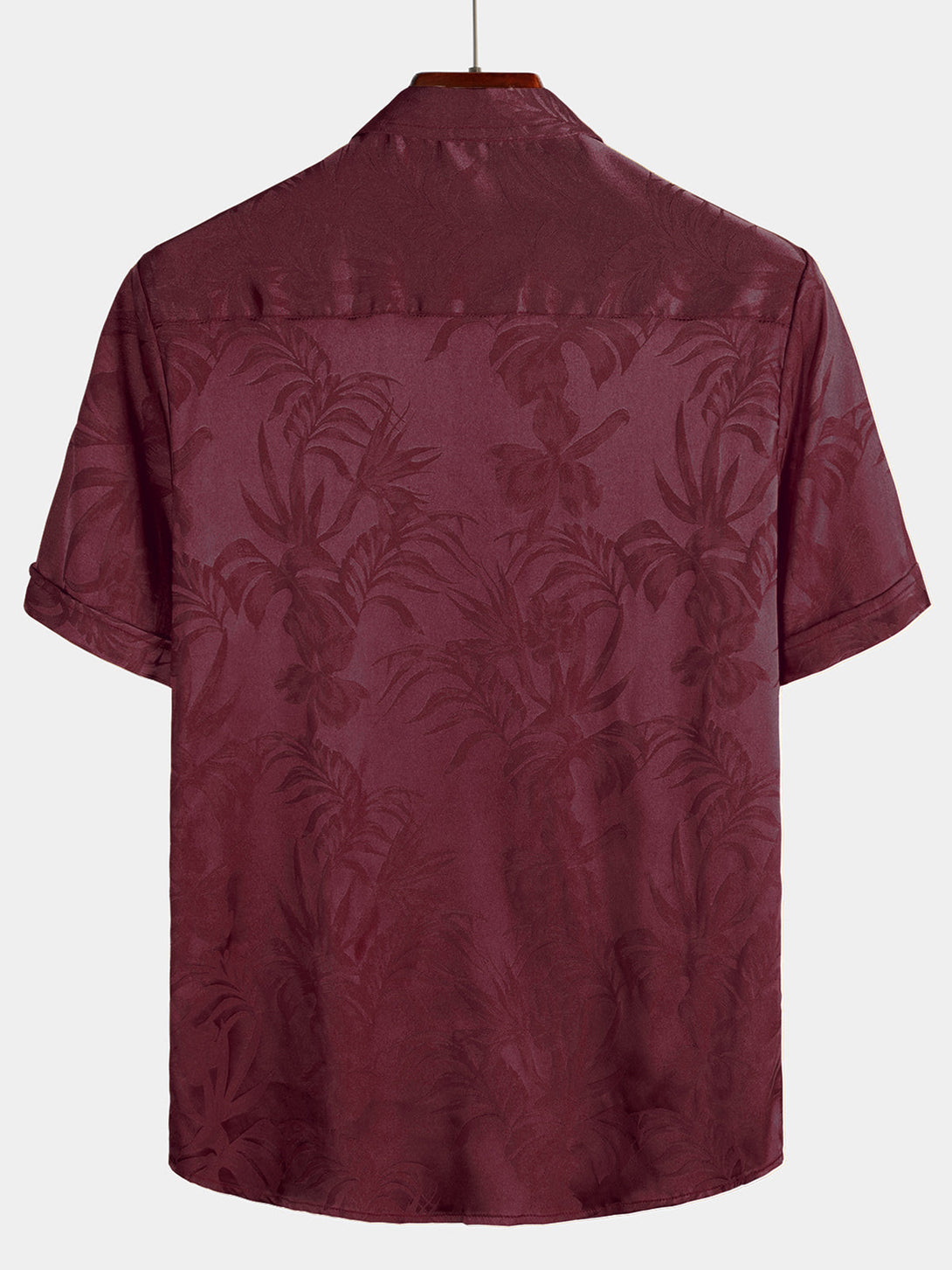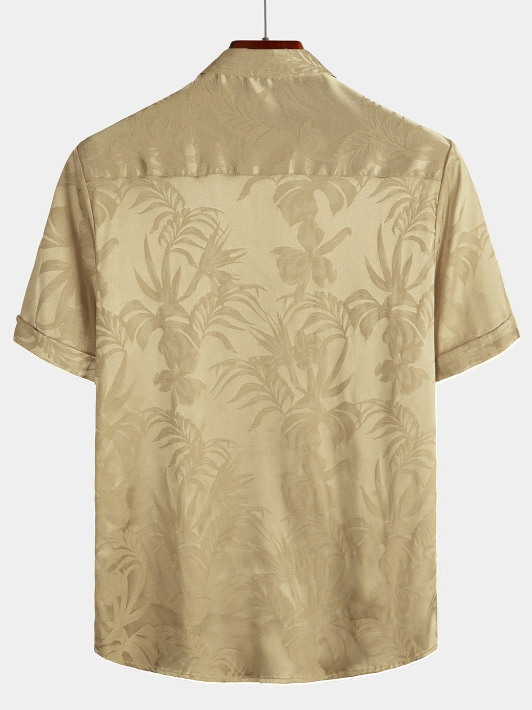 Men's Jacquard Floral Button Pocket Summer Cool Short Sleeve Top Beach Vacation Shirt