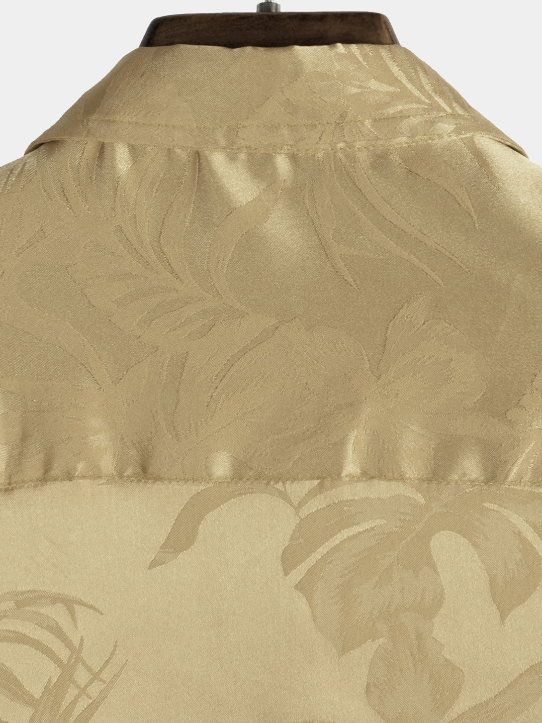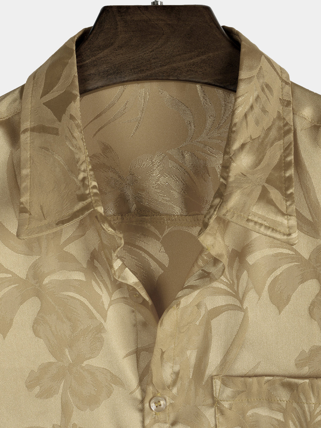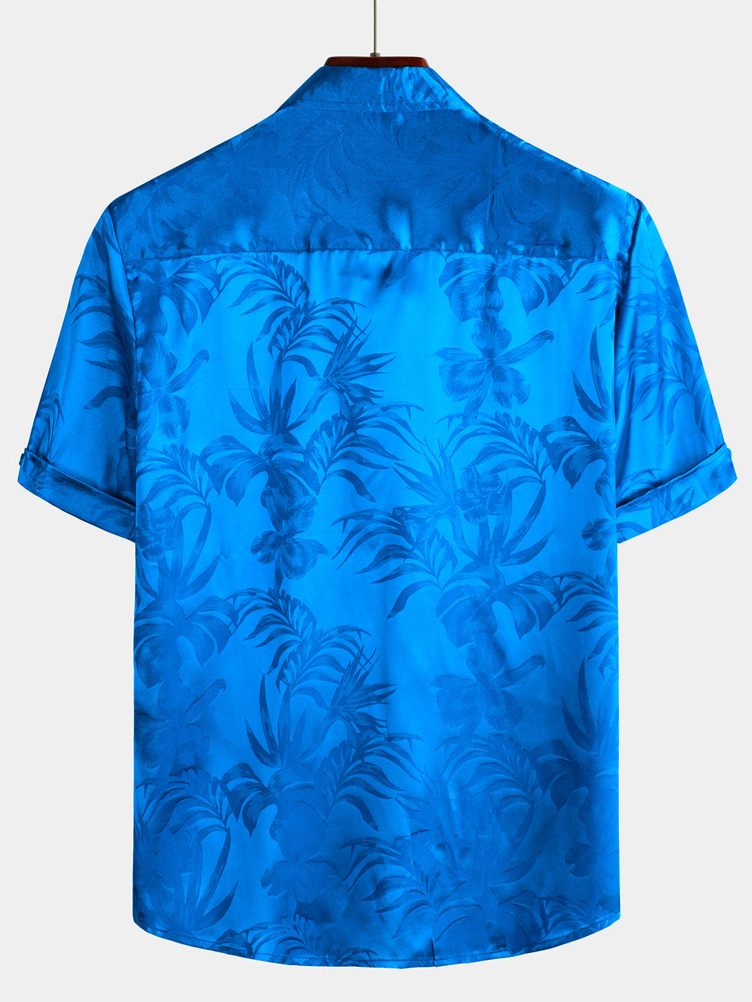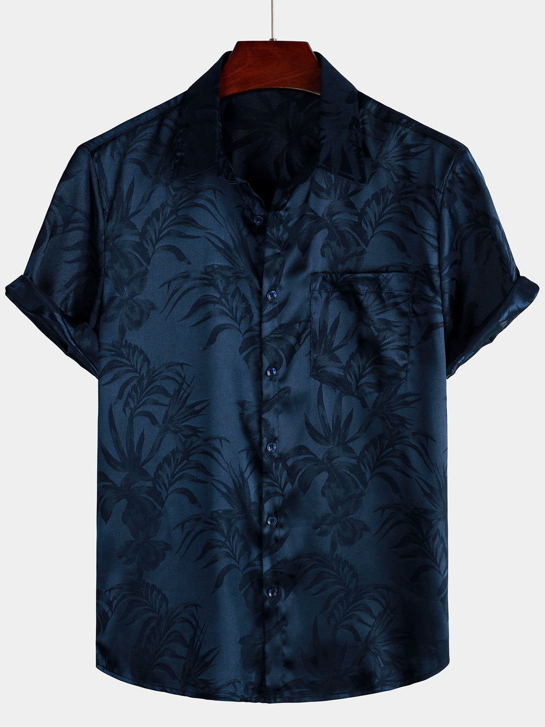 Men's Jacquard Floral Button Pocket Summer Cool Short Sleeve Top Beach Vacation Shirt