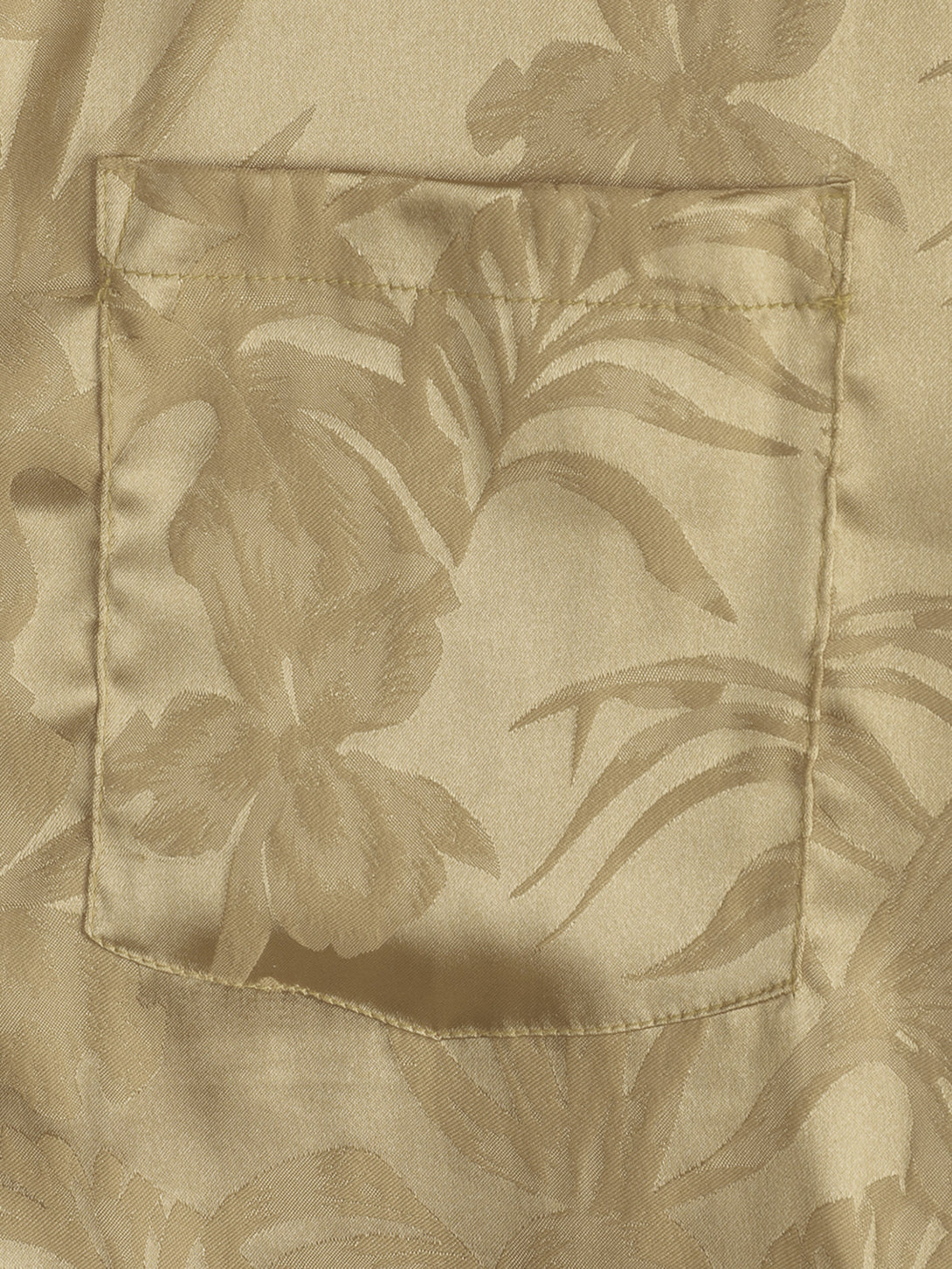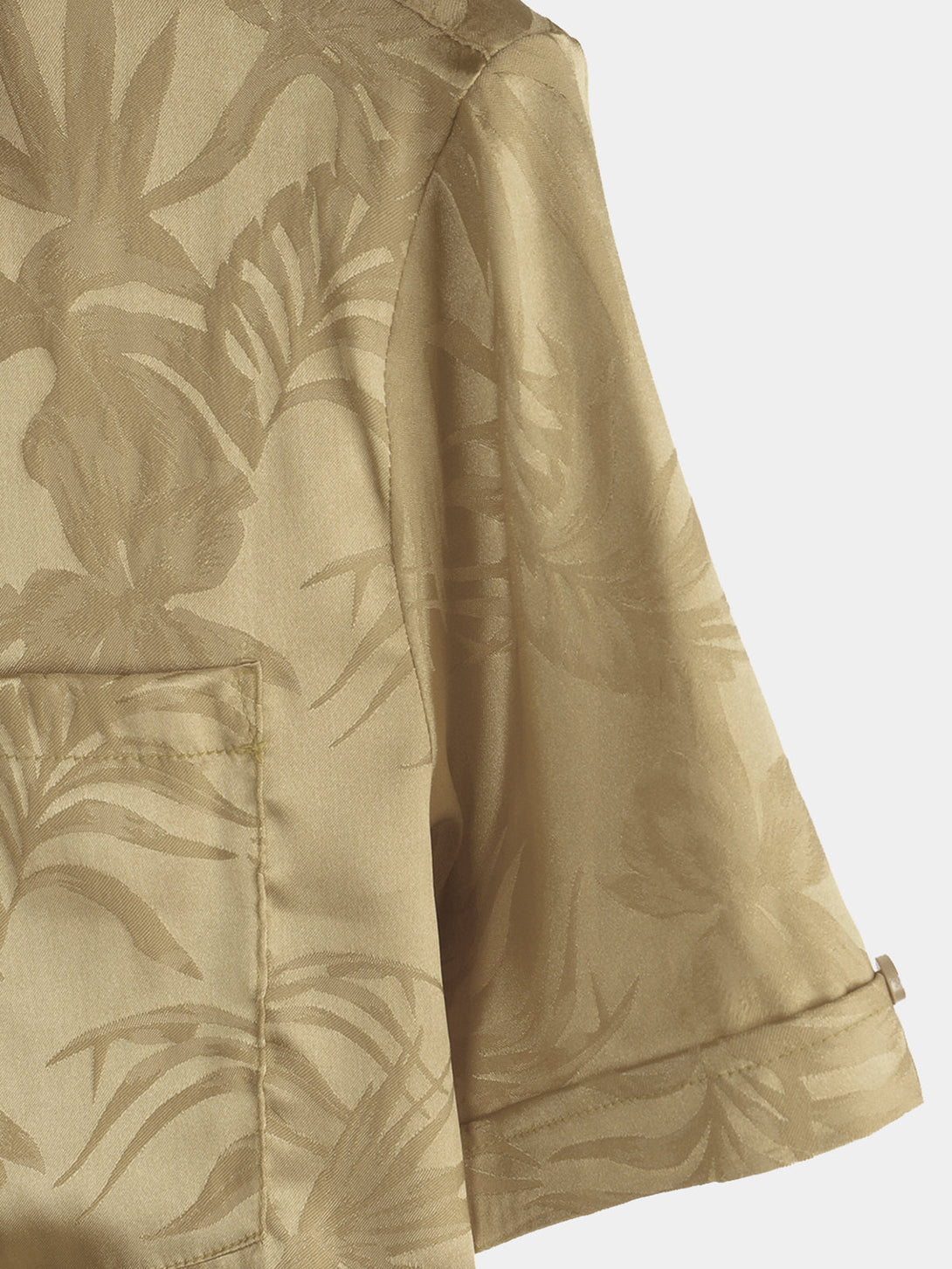 - Short-sleeved button-down shirt with a front pocket and a unique jacquard design.
