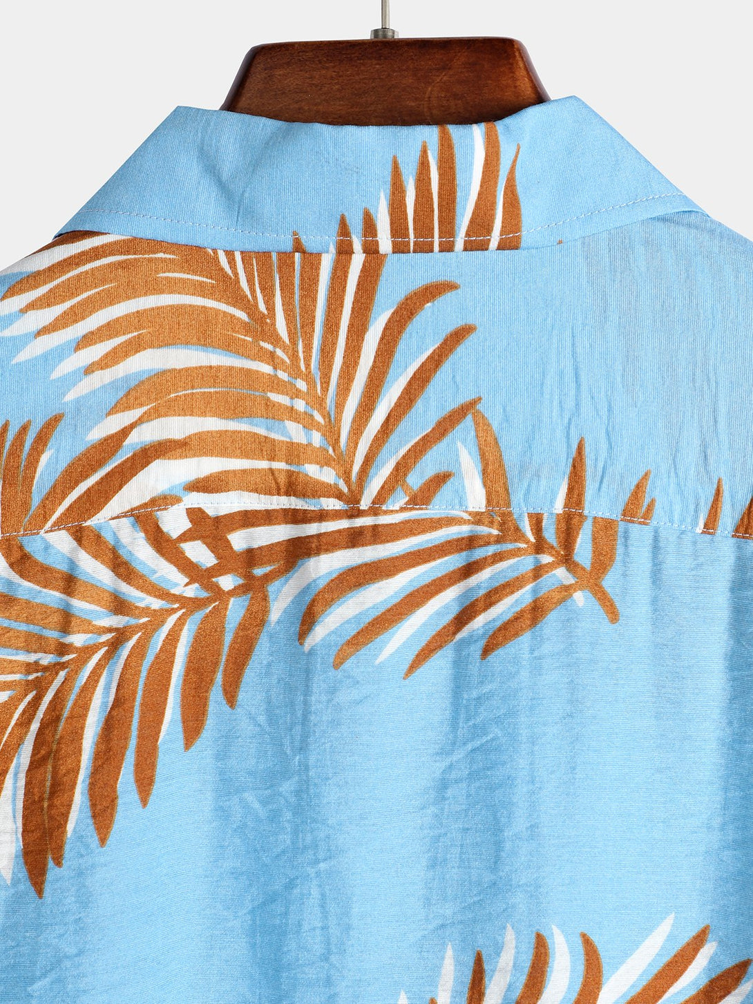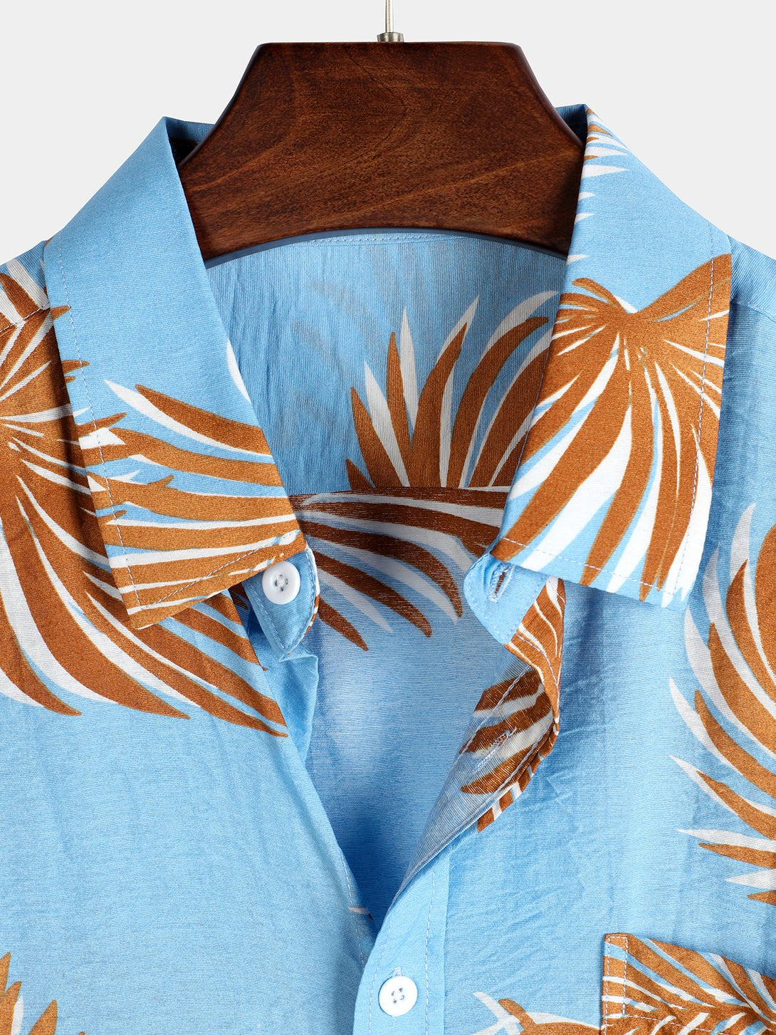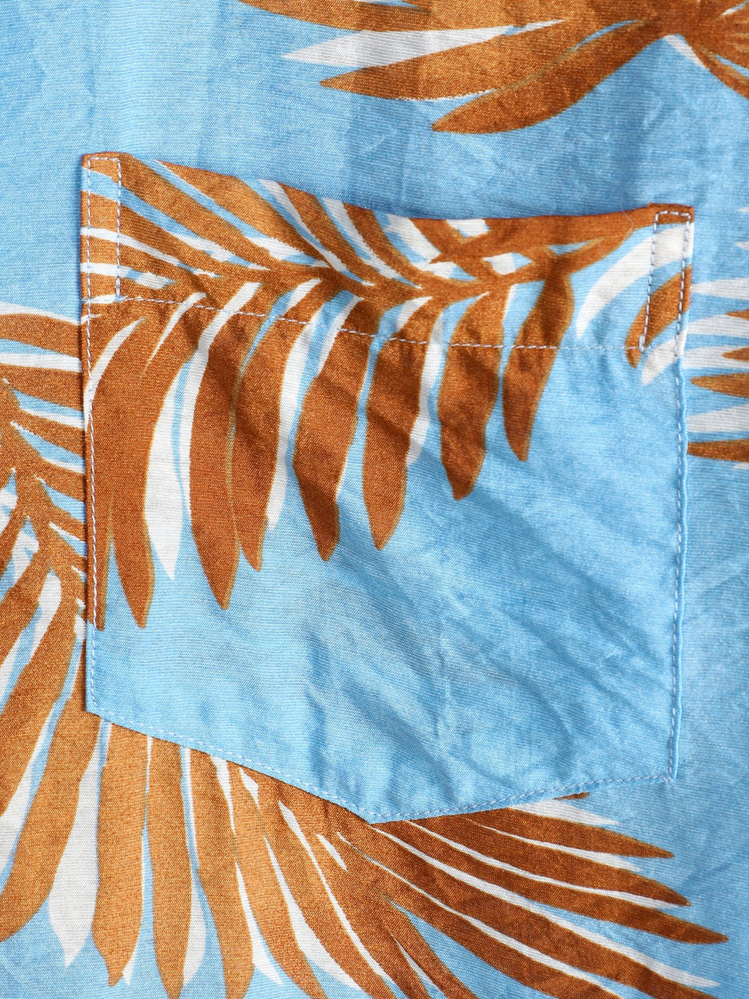 Men's Short-Sleeved Cotton Shirt With Floral Pattern, Holiday Blue
