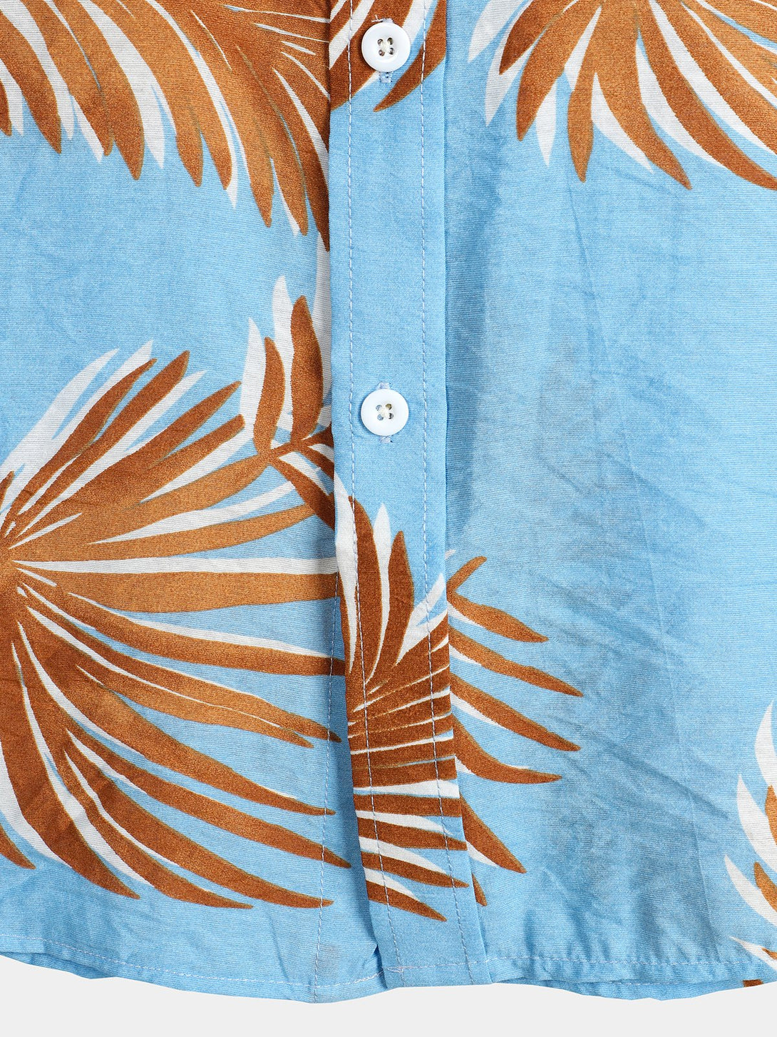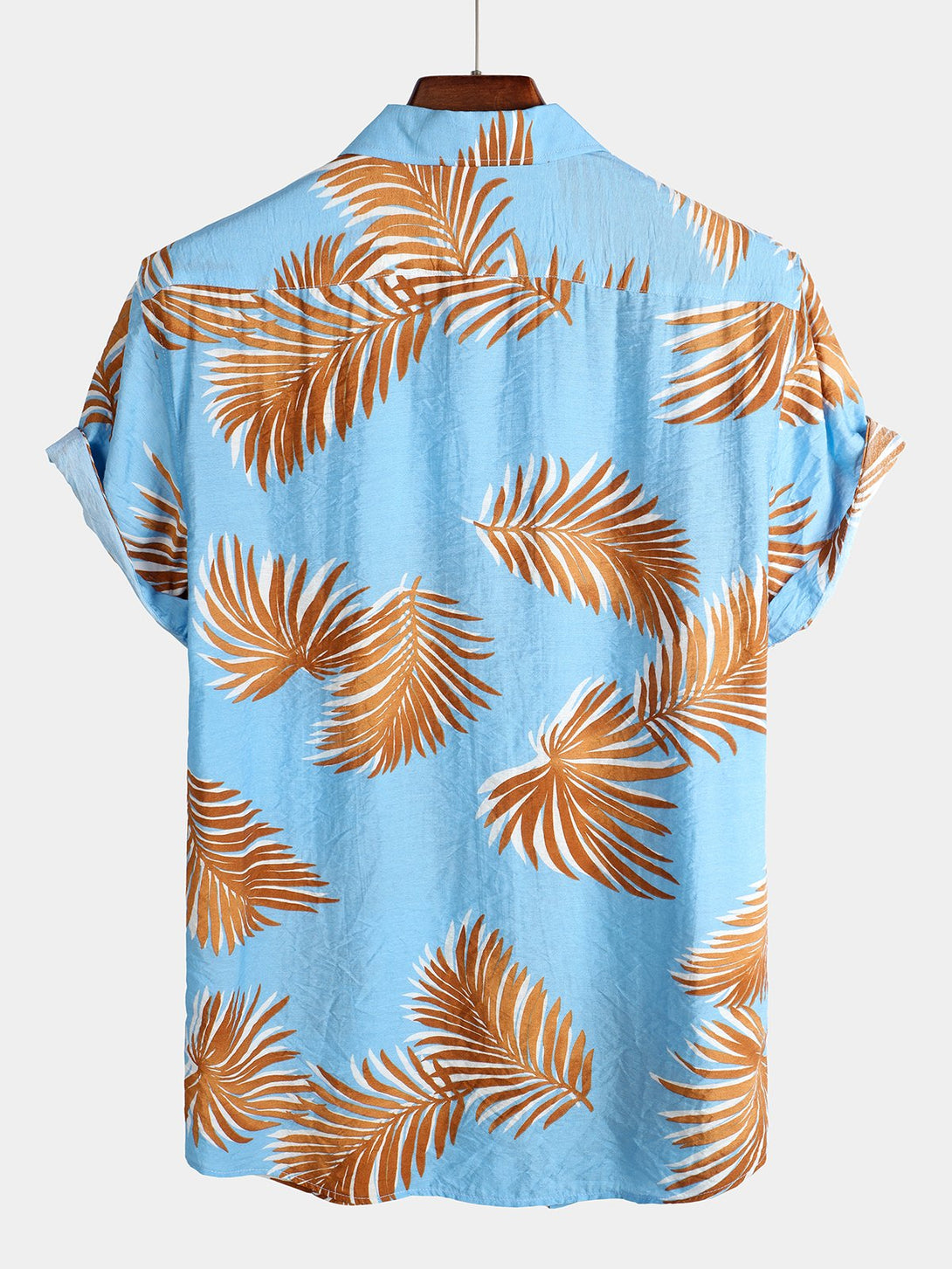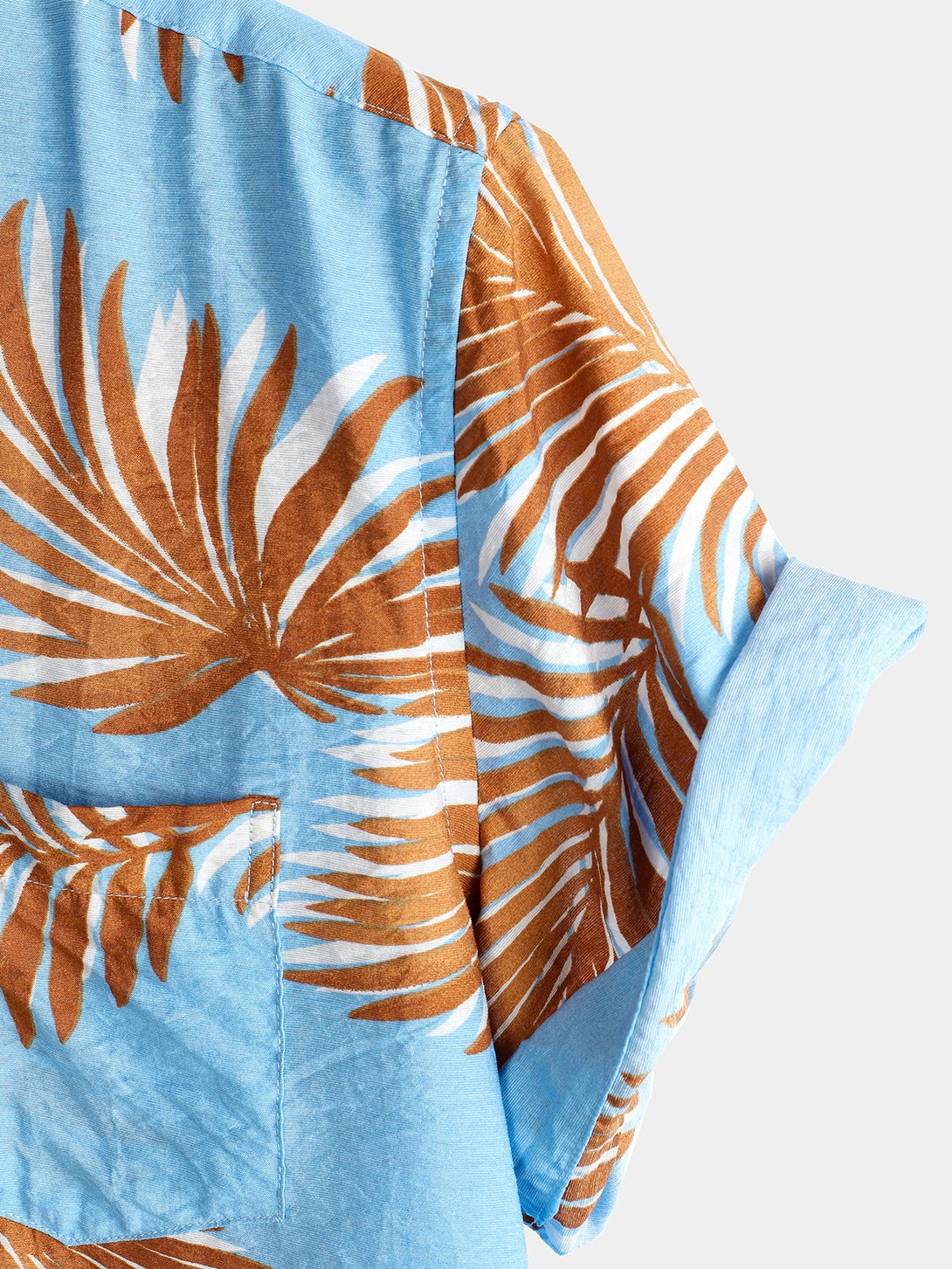 Men's Short-Sleeved Cotton Shirt With Floral Pattern, Holiday Blue