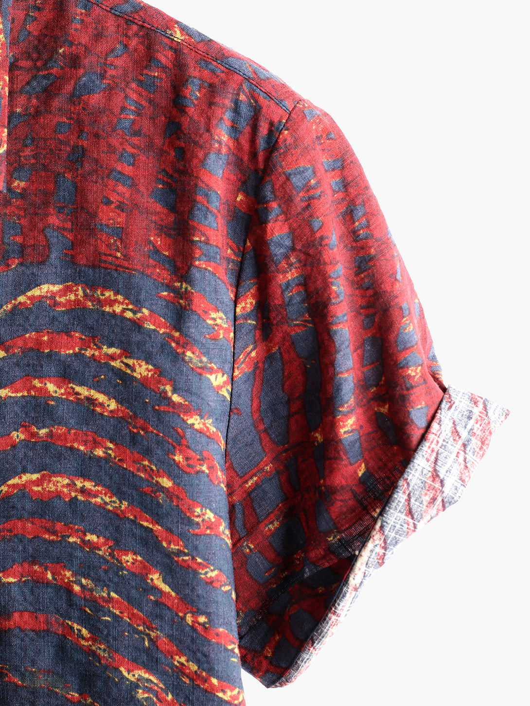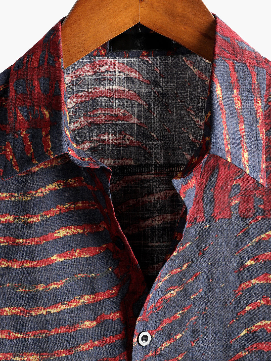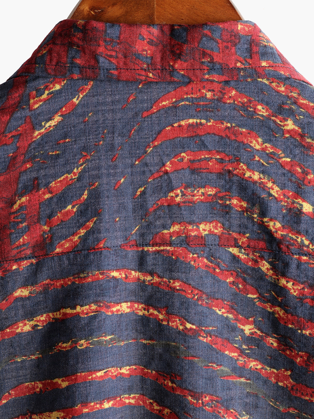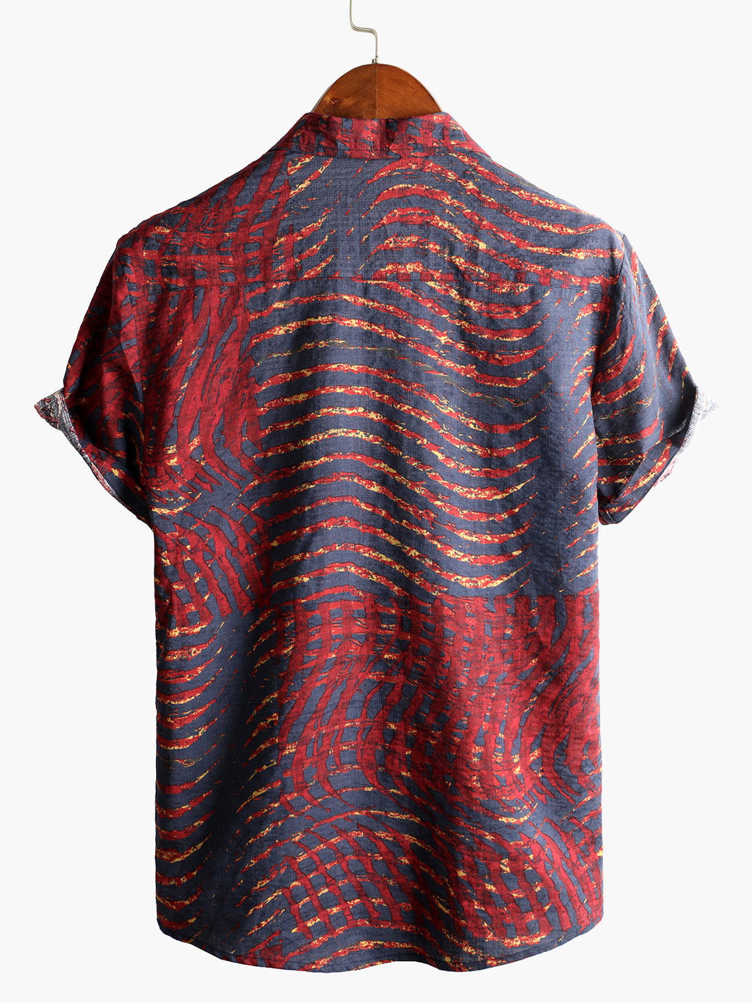 Men's Short-Sleeved Striped Printed Retro Cotton Shirt