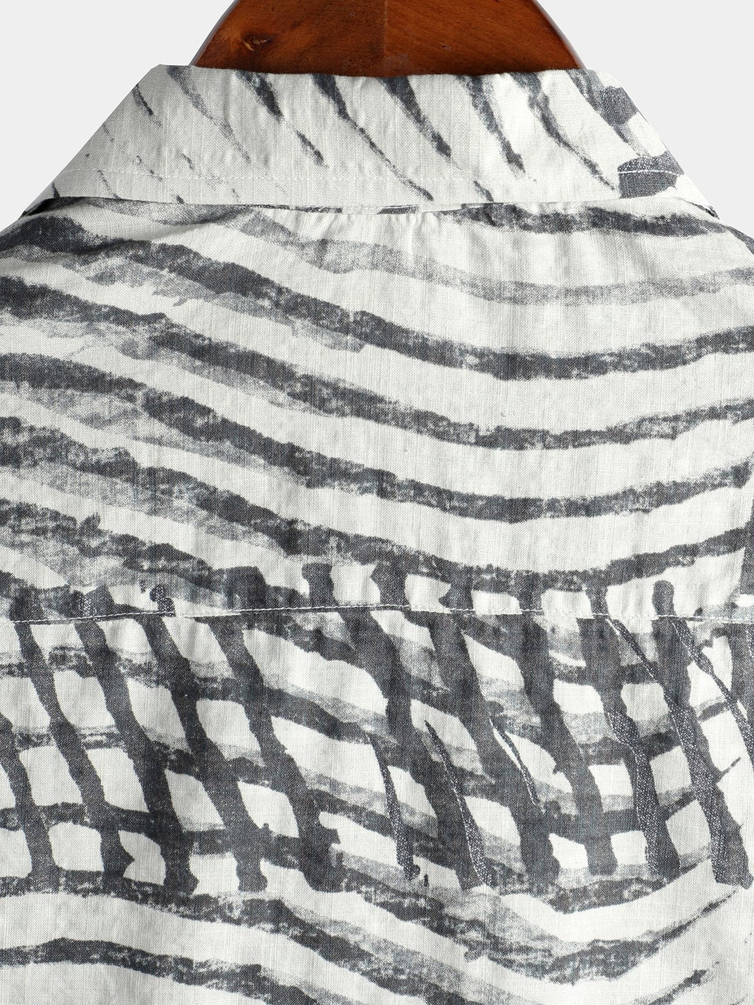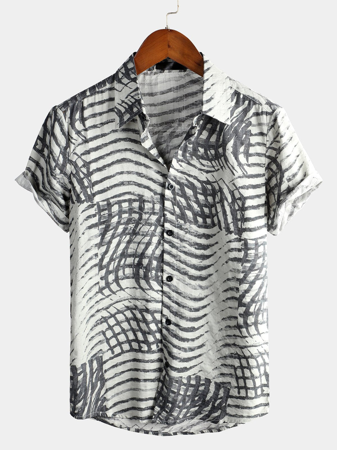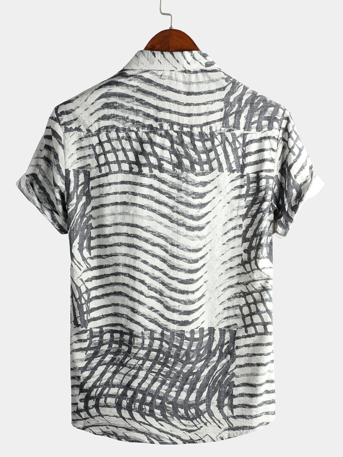 Men's Short-Sleeved Striped Printed Retro Cotton Shirt
