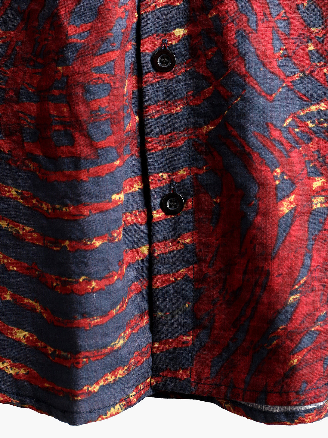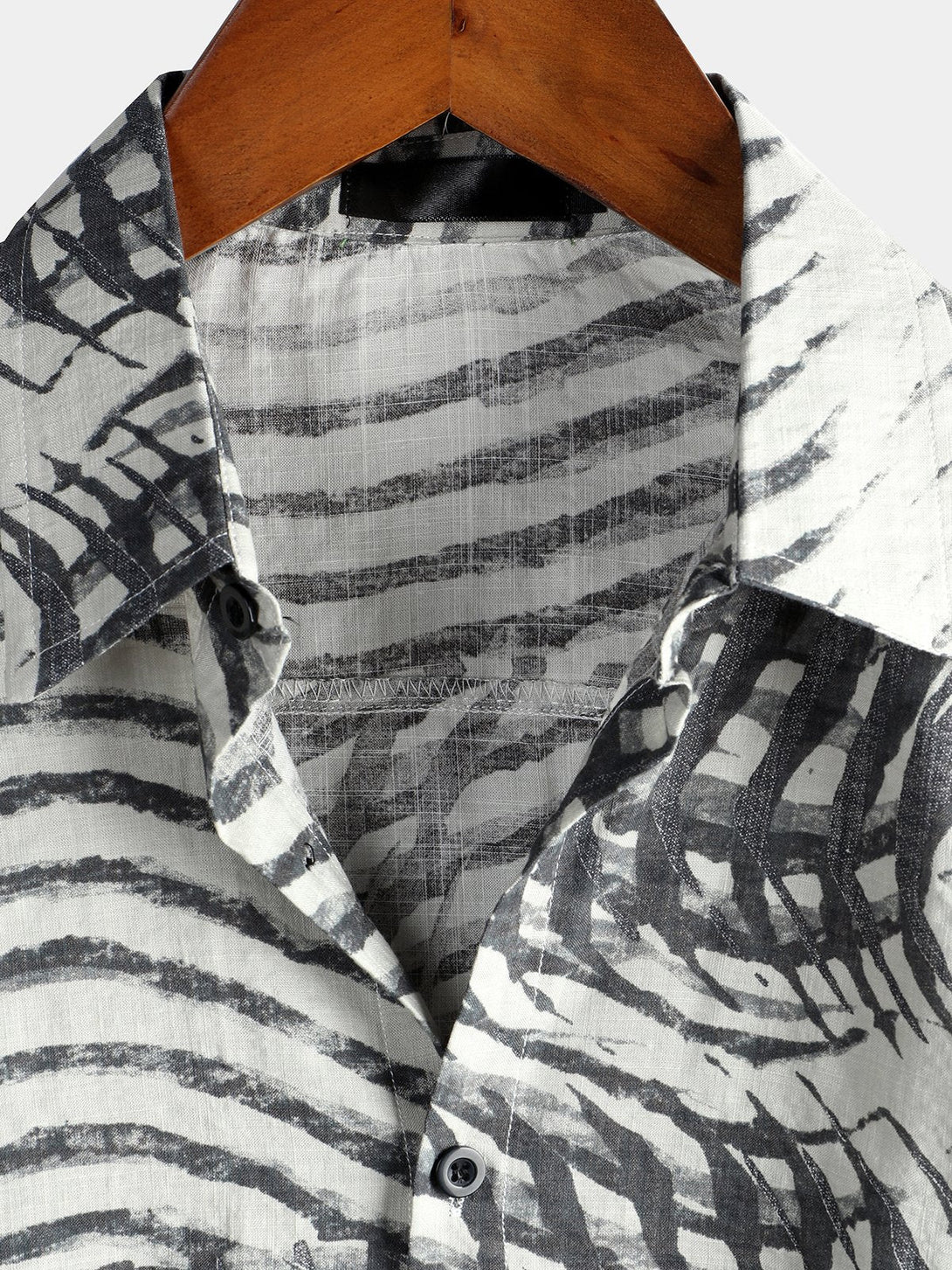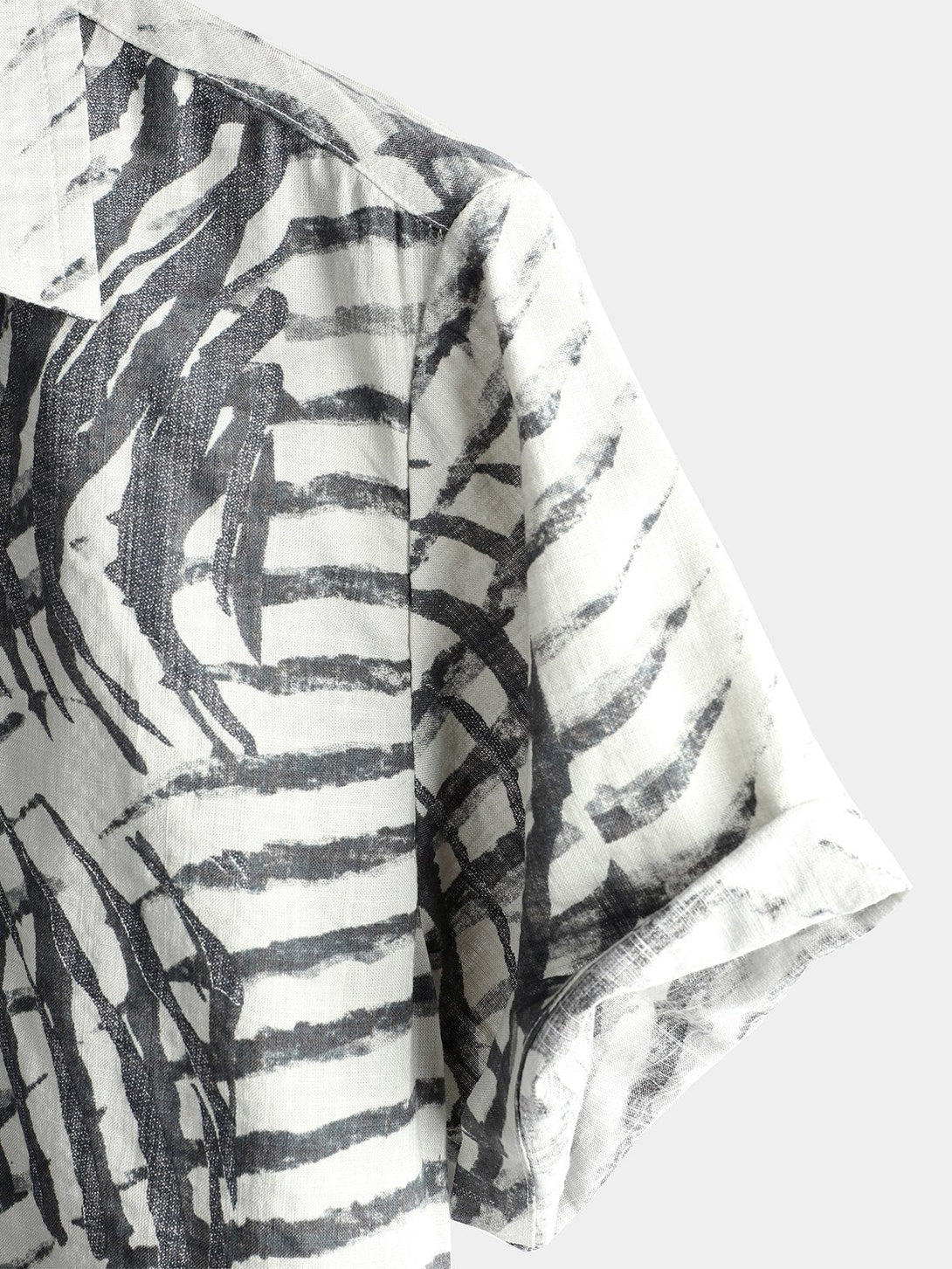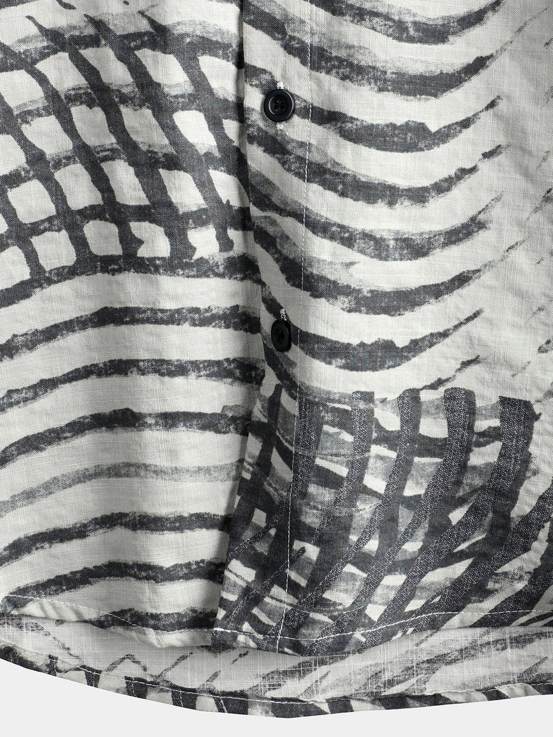 Men's Short-Sleeved Striped Printed Retro Cotton Shirt