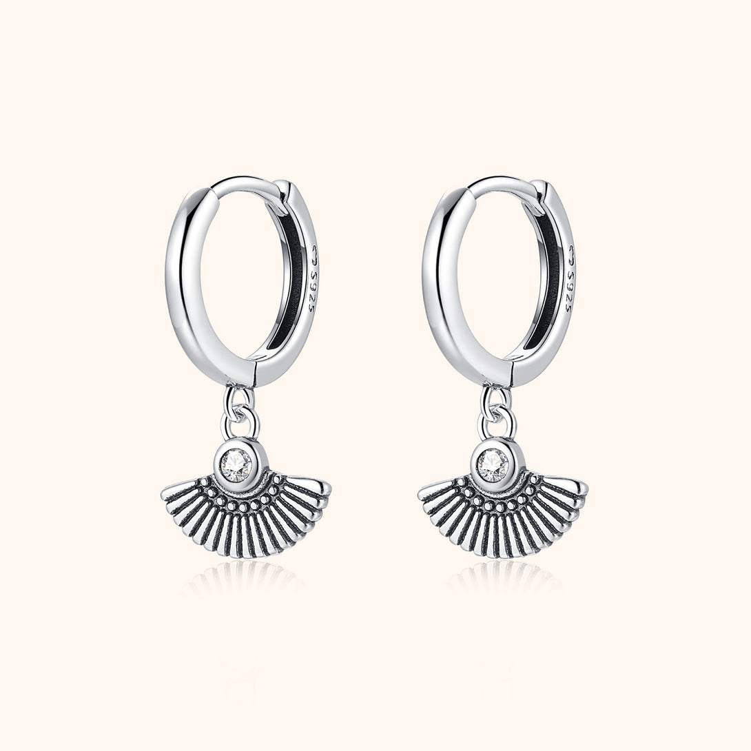 Earrings with a fan design and decoratively shiny zirconia, available in two designs, made of sterling silver (S925).