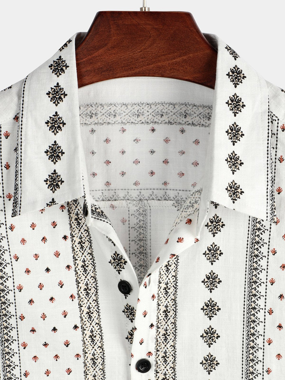 Men's 70S Style White Retro Short Sleeve Button Down Cotton Shirts