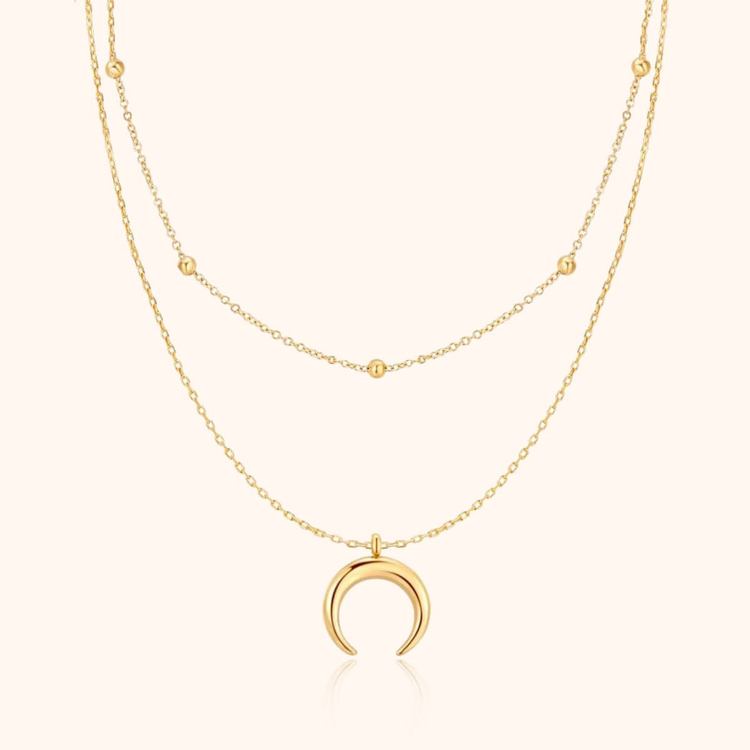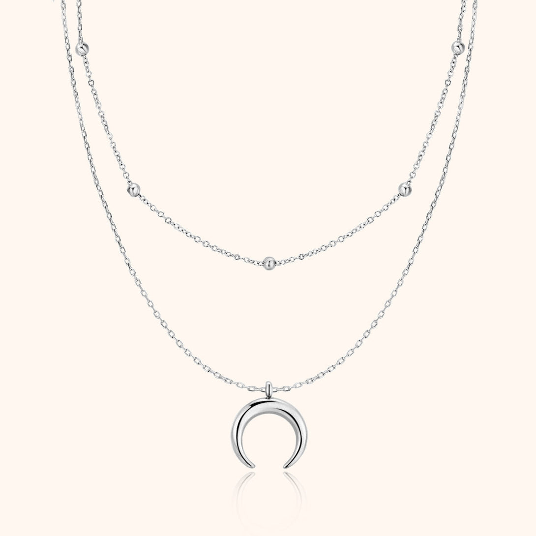 Beautiful double chain pendant, decorated with balls and a beautiful moon, made of high-quality stainless steel (316L)