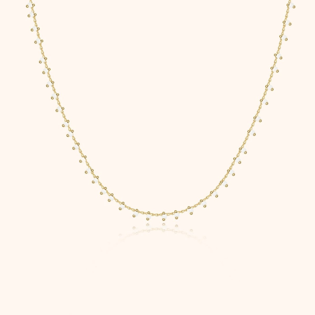 Thin chain with white balls around it, made of high-quality stainless steel (316L).