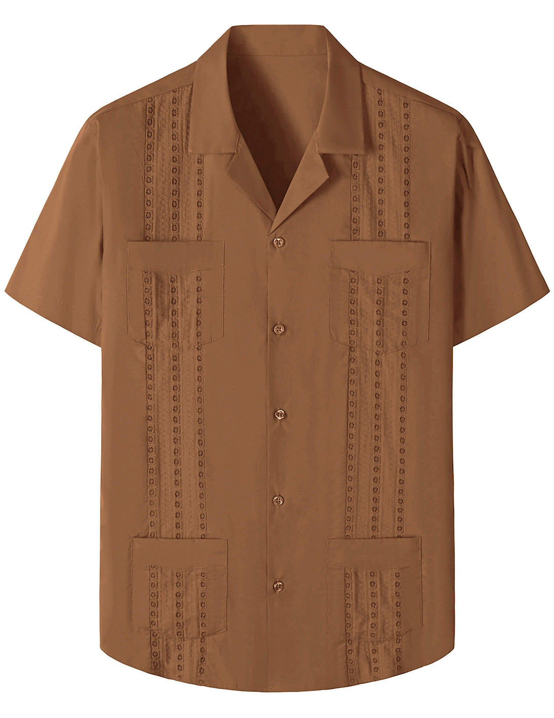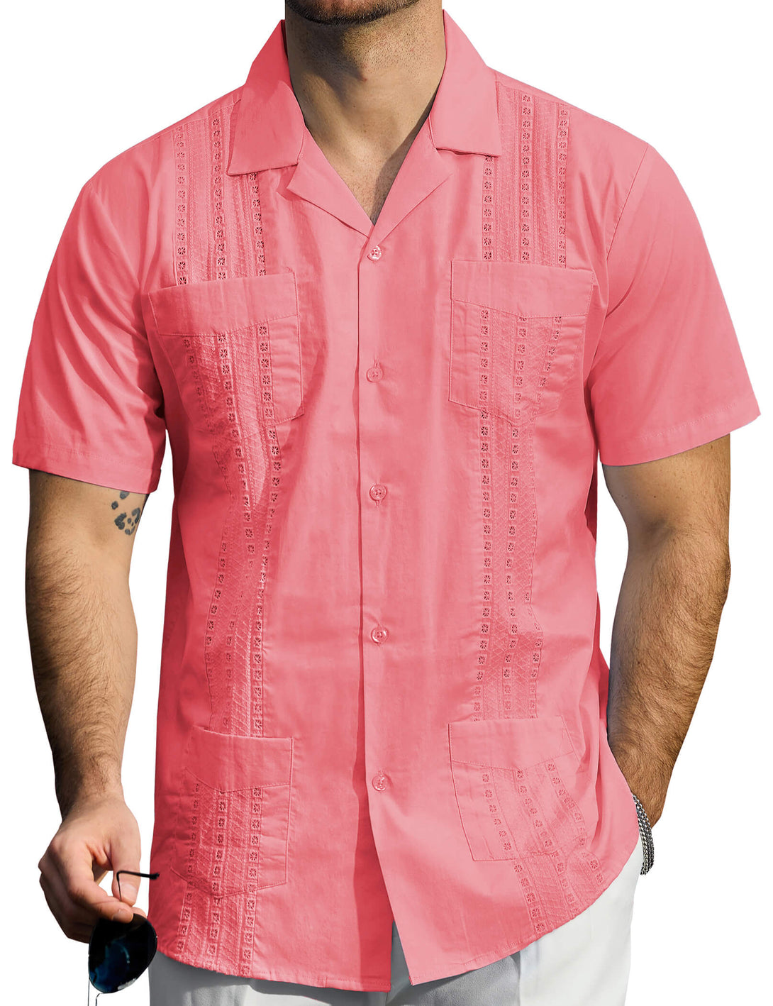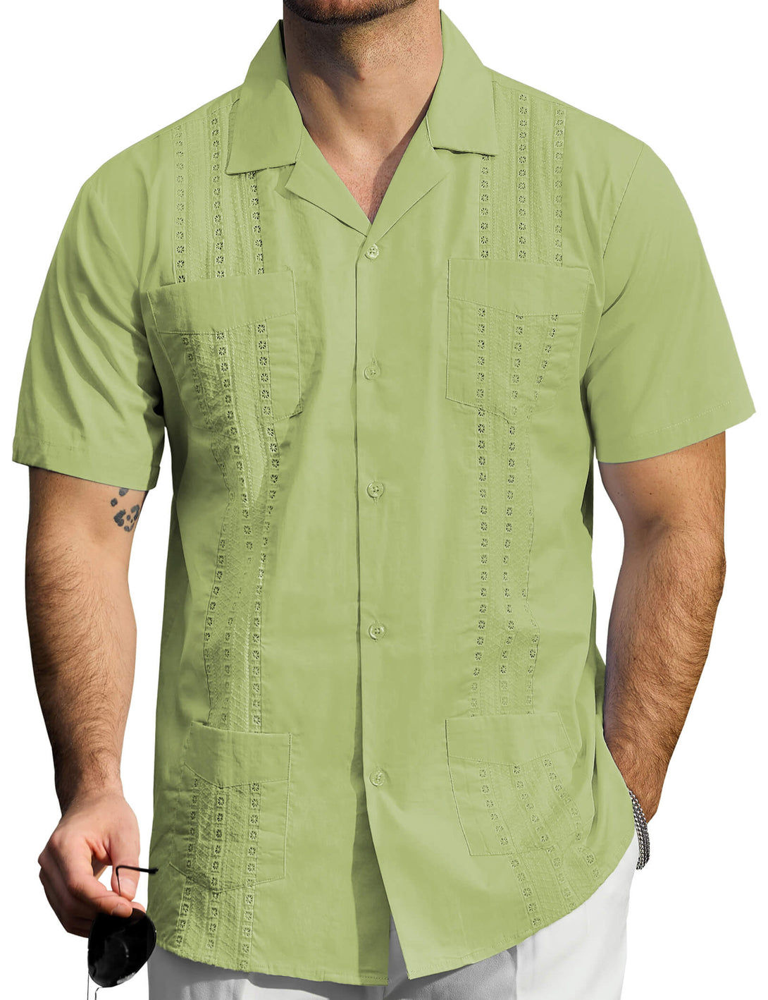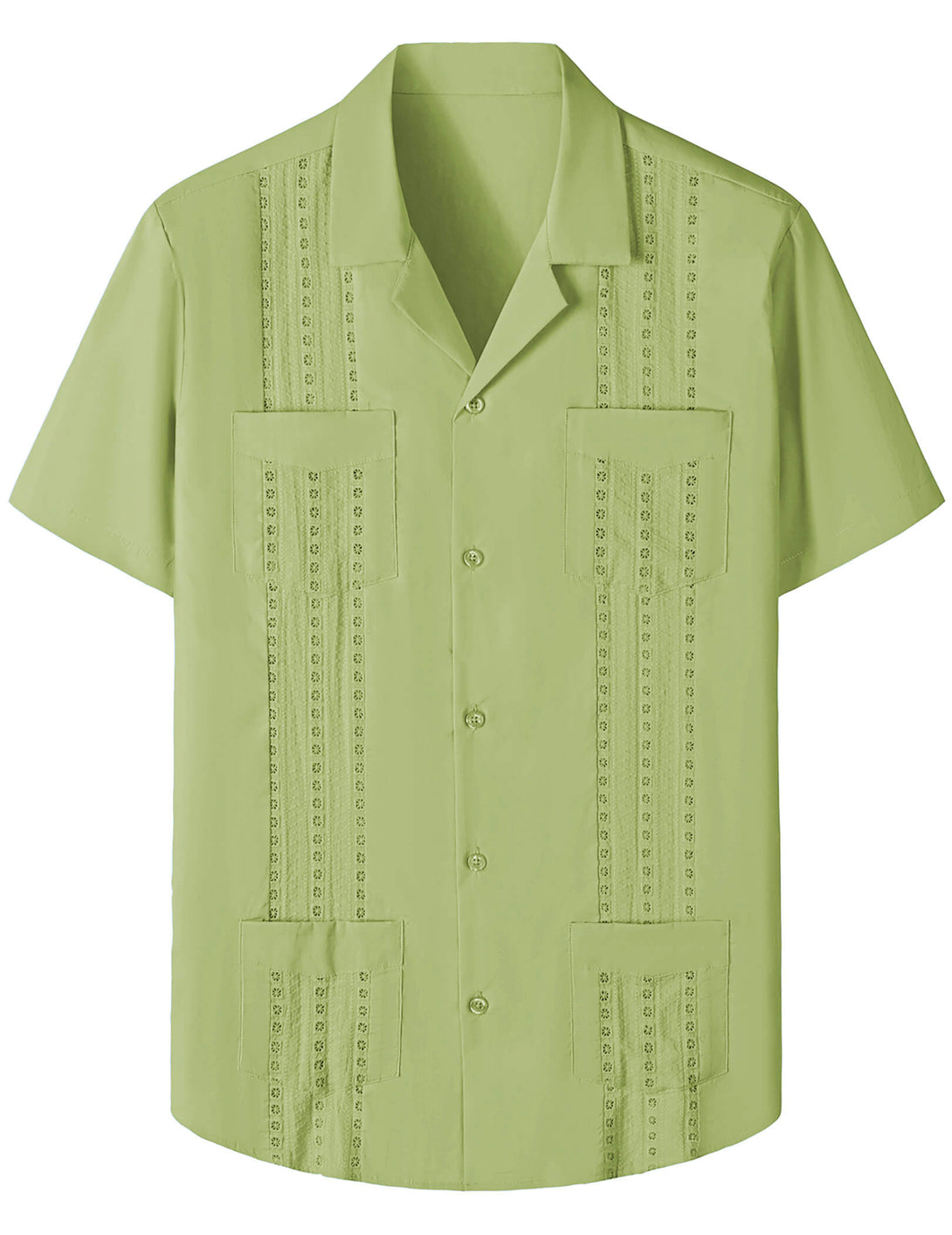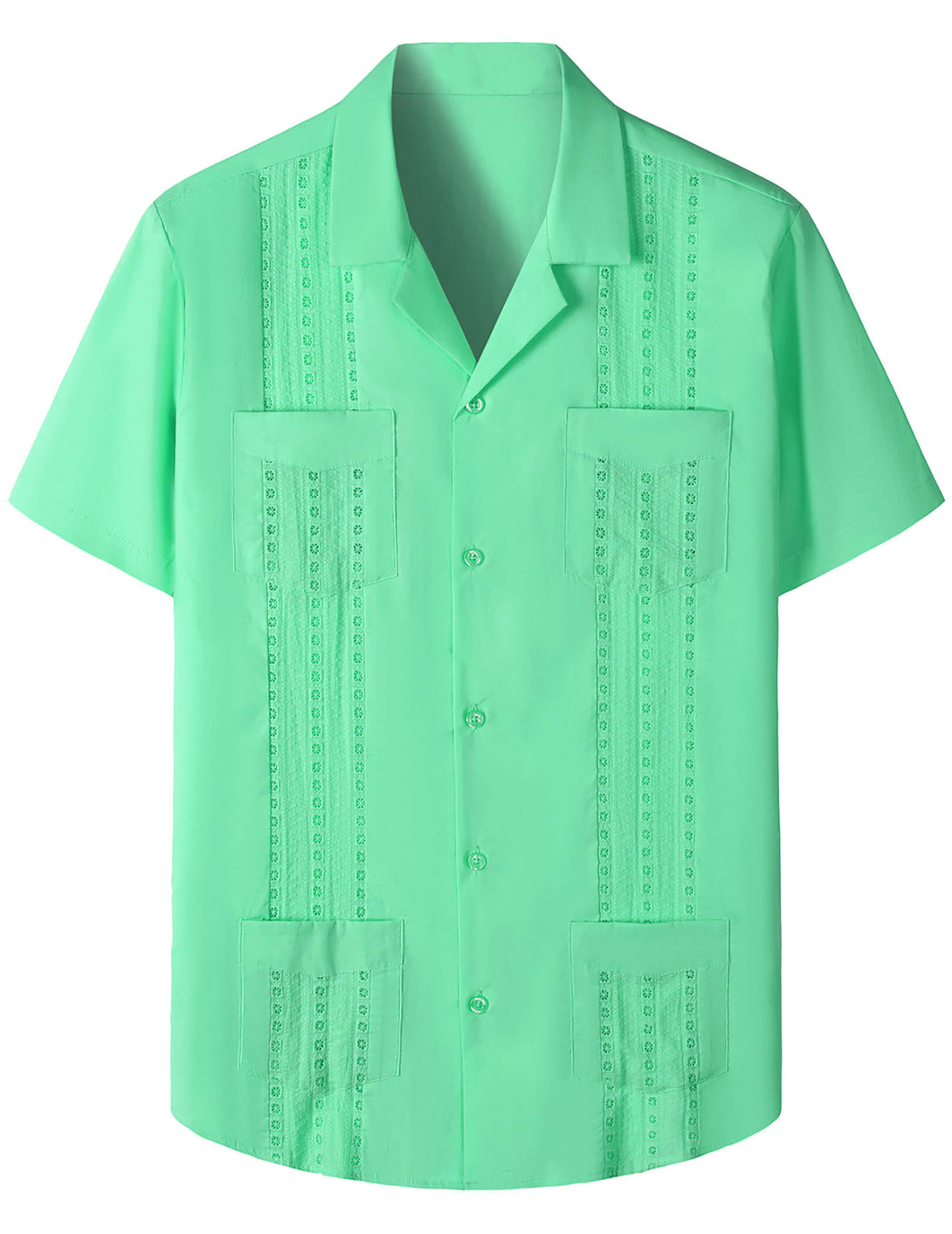 Men's Guayabera Cuban Summer Casual Button Beach Short Sleeve Shirt