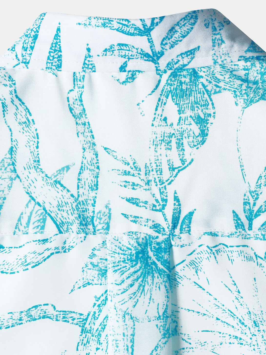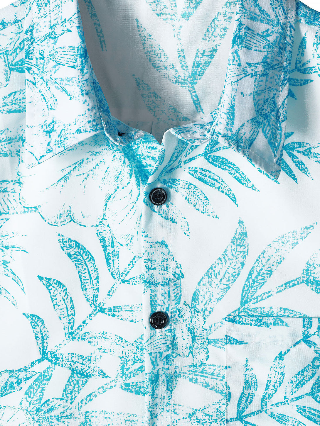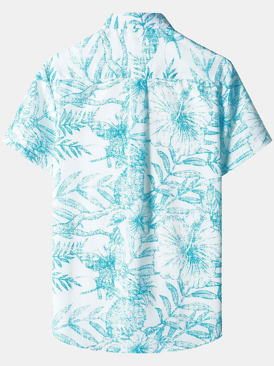 Men's Blue Casual Aloha Shirt With Hawaiian Pocket In Tropical Print