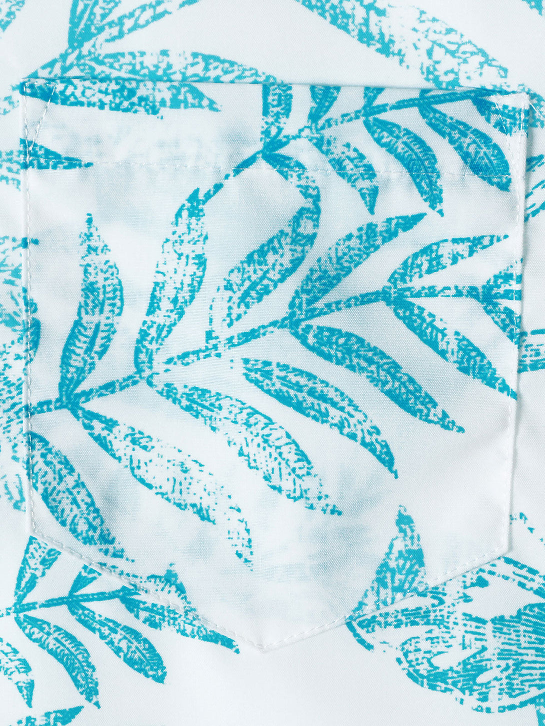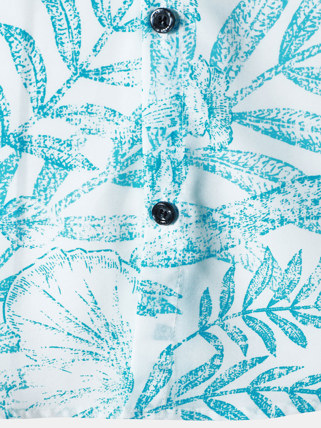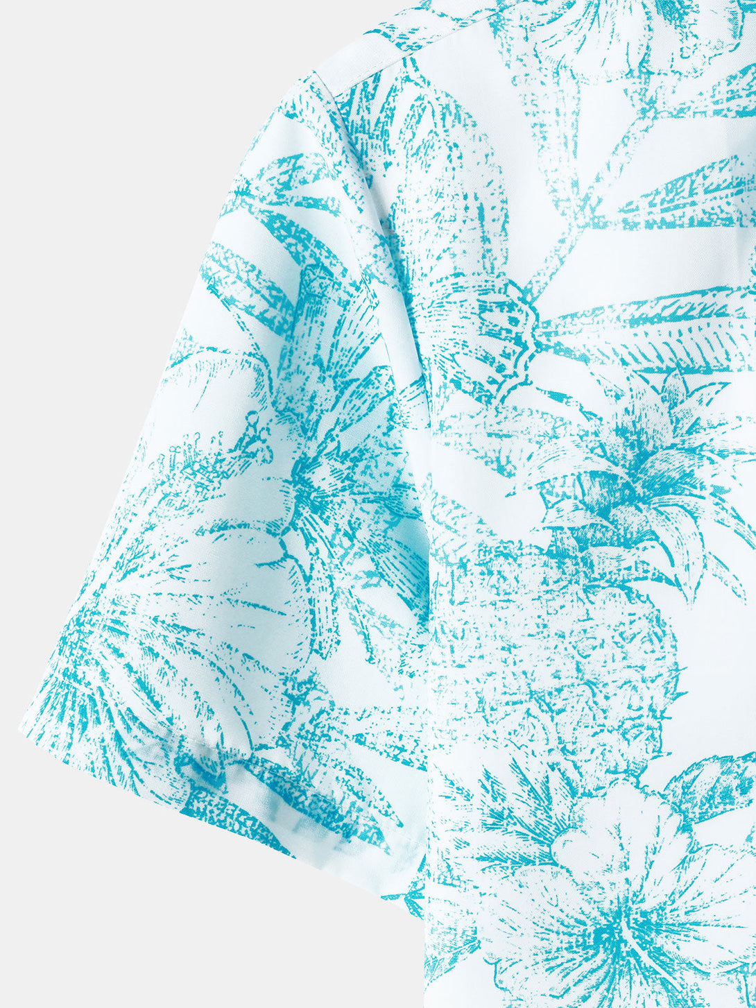 Men's Blue Casual Aloha Shirt With Hawaiian Pocket In Tropical Print
