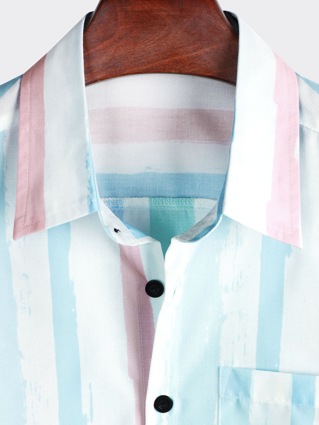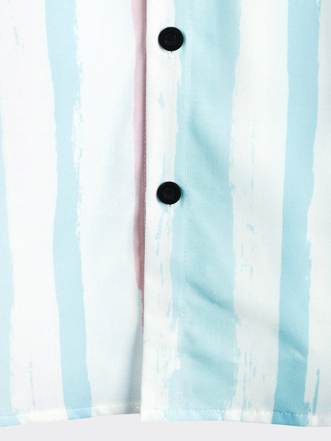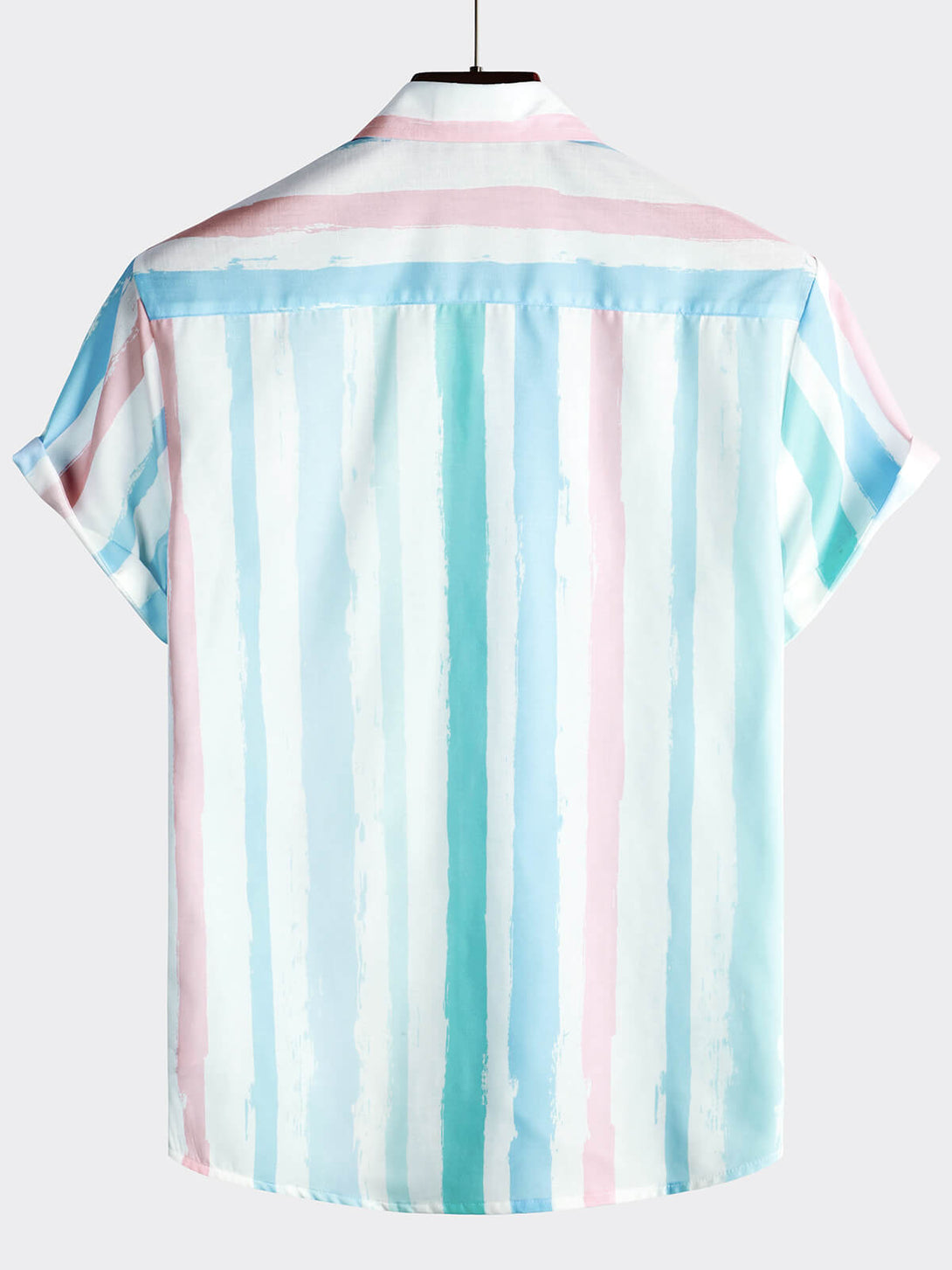 Blue And Pink Striped Summer Short Sleeve Shirt For Men