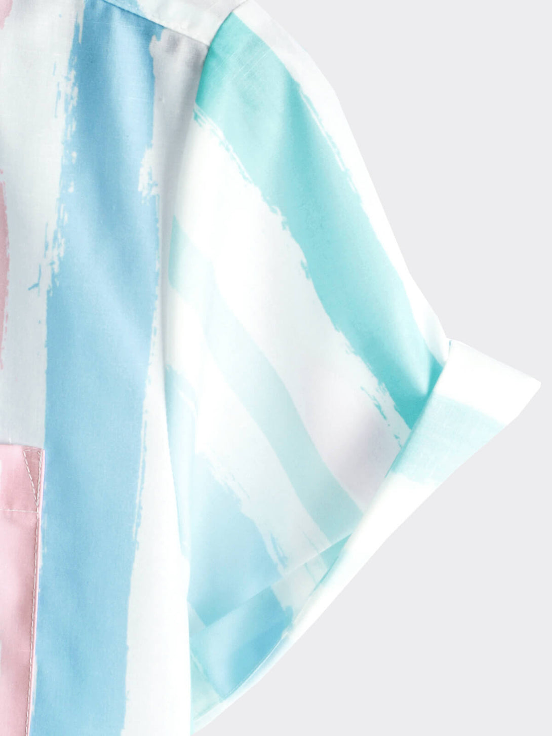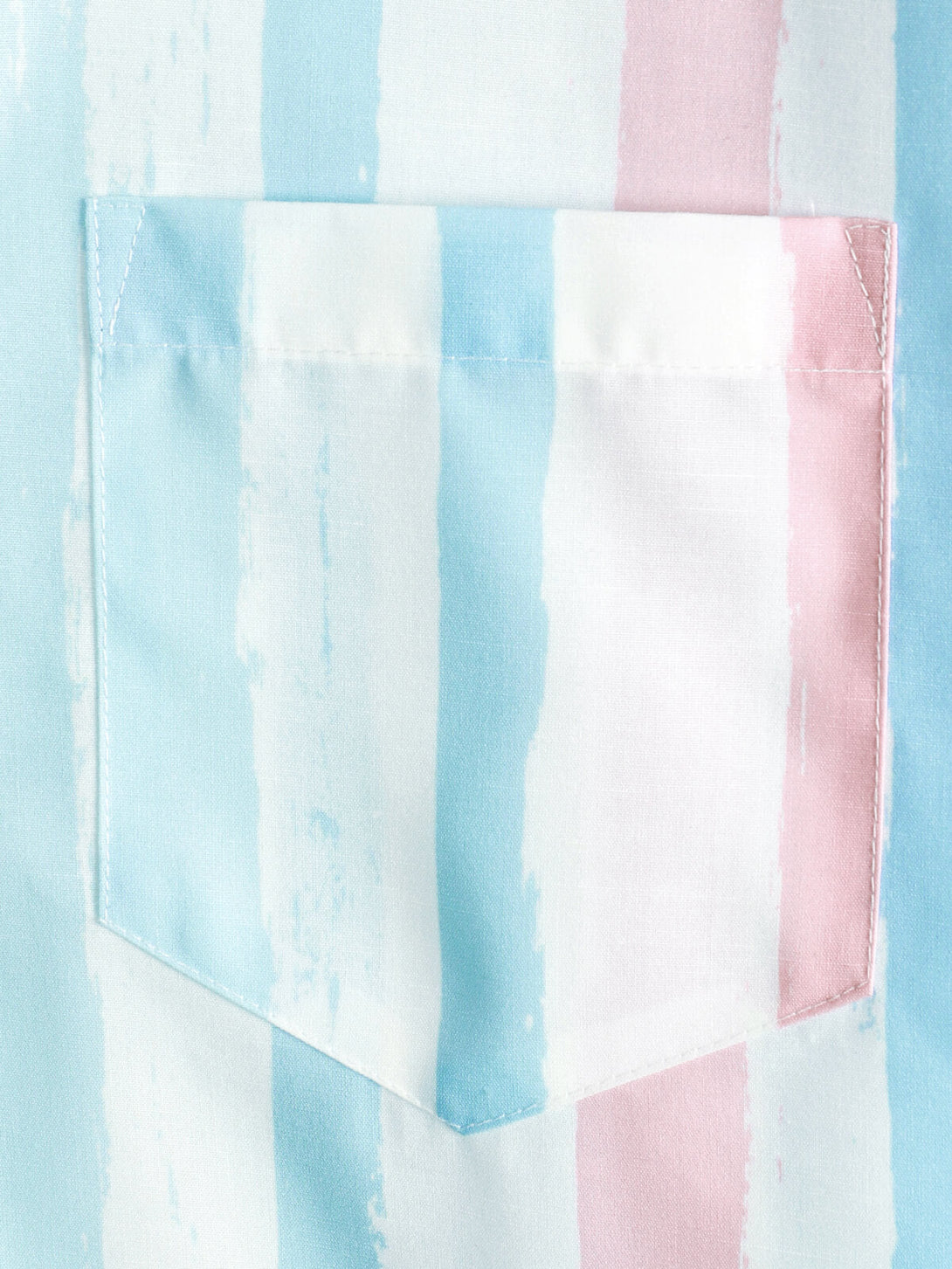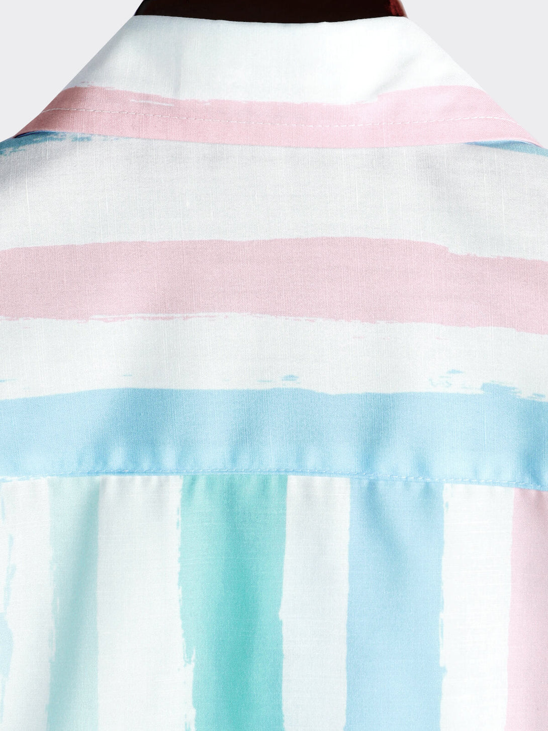 Blue And Pink Striped Summer Short Sleeve Shirt For Men