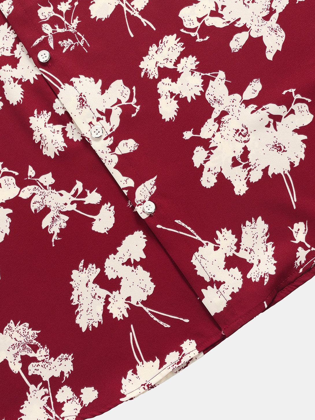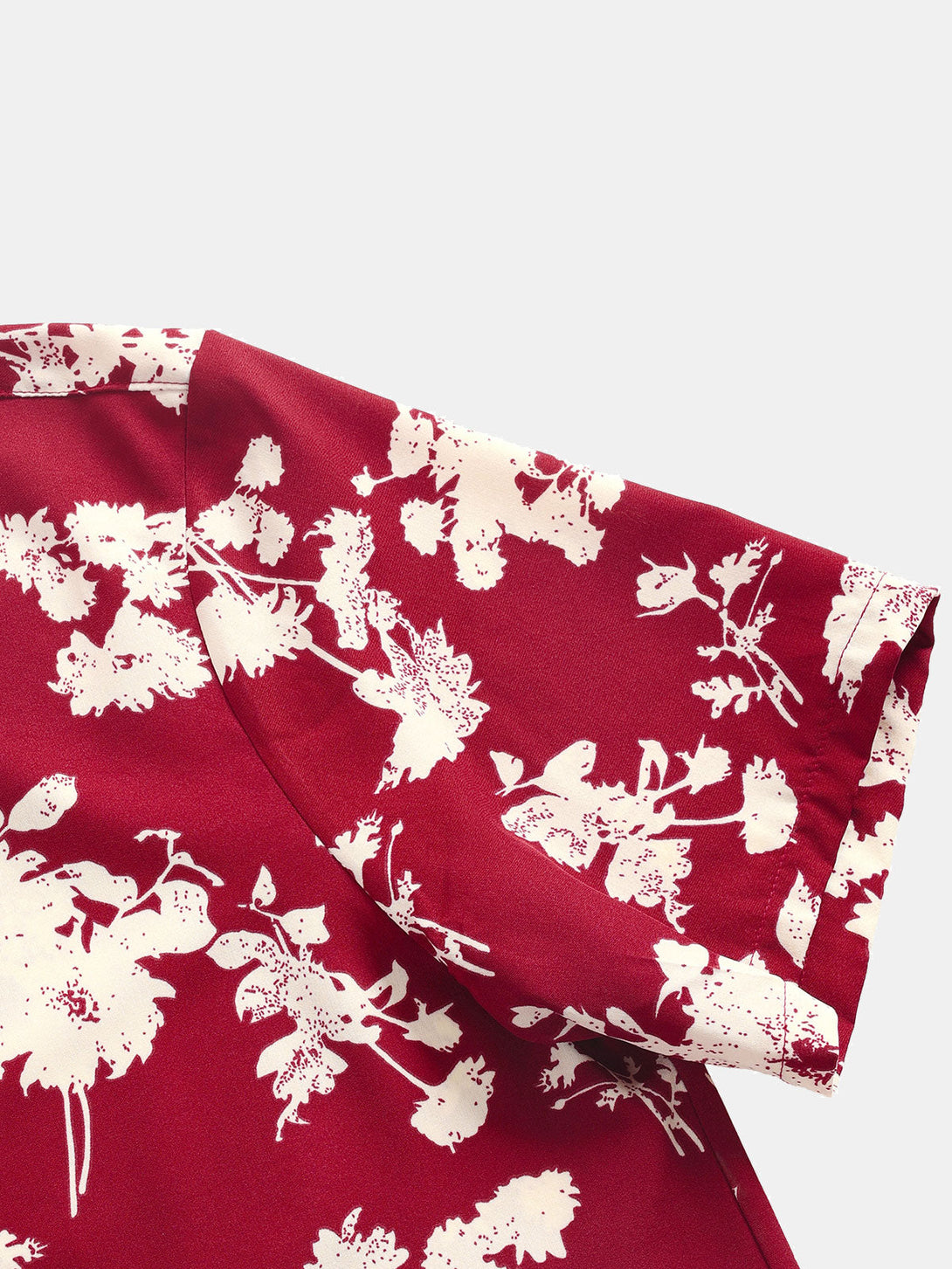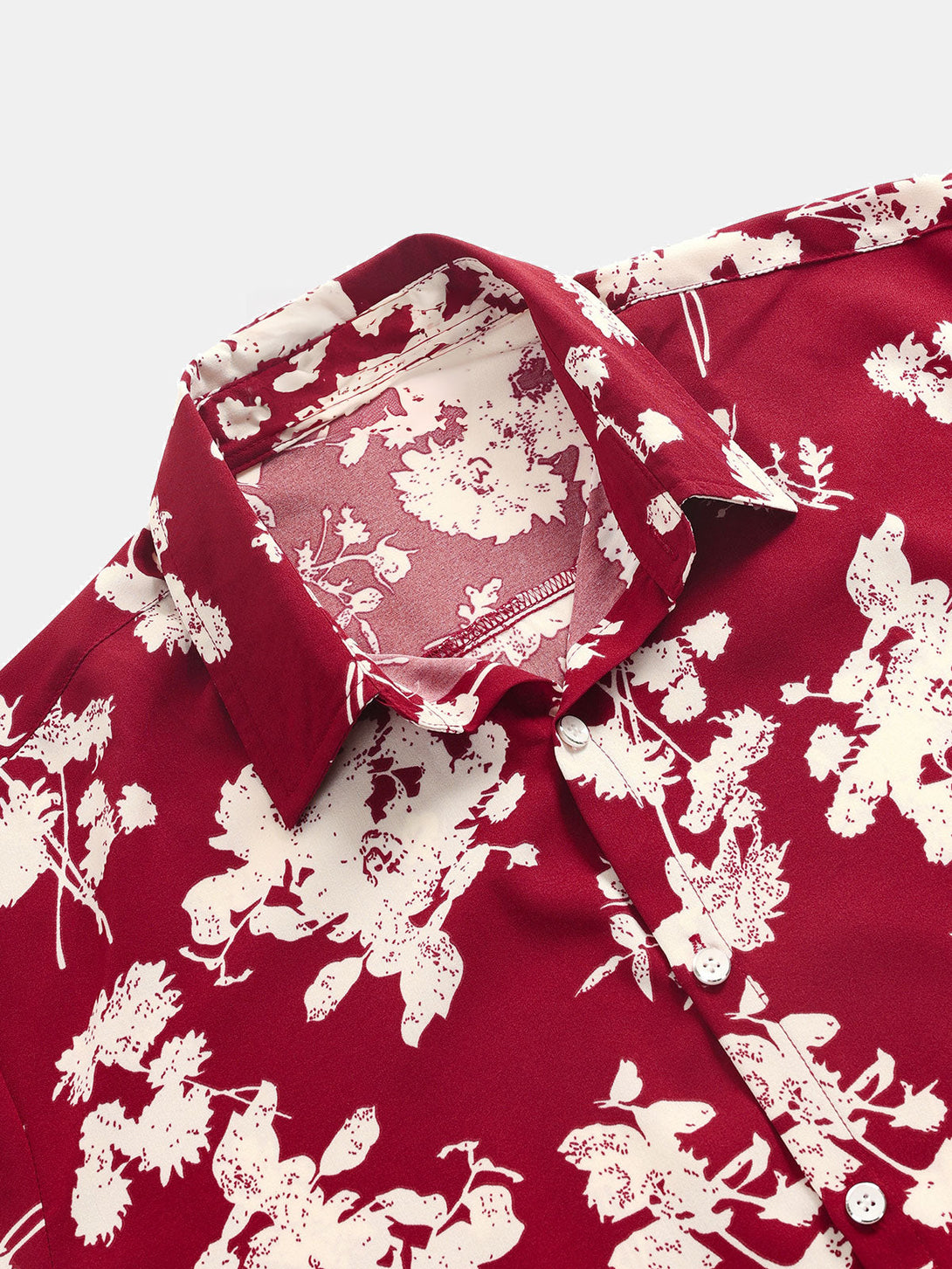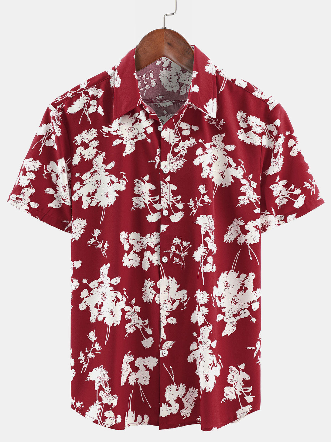Men's Casual Short Sleeve Button-Up Shirt With Floral Pattern For Summer Vacation