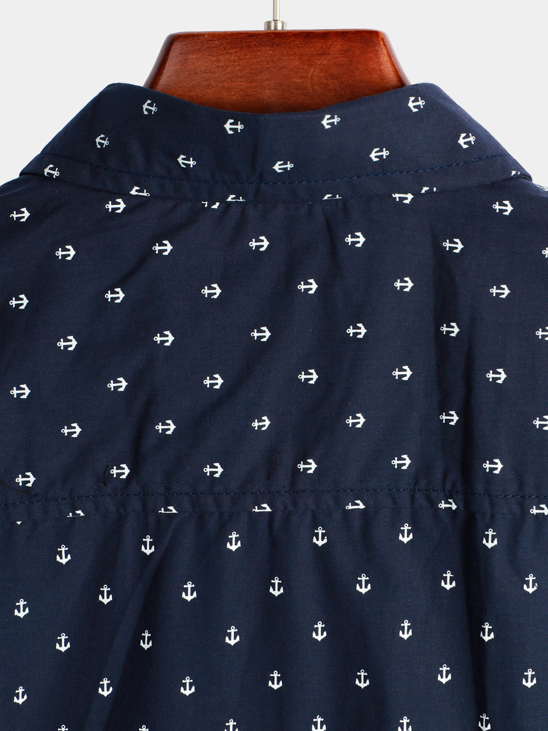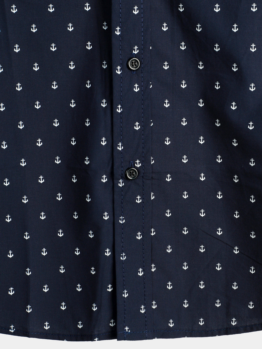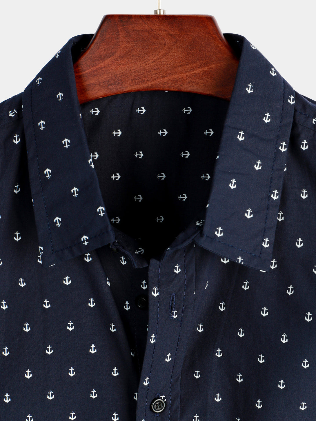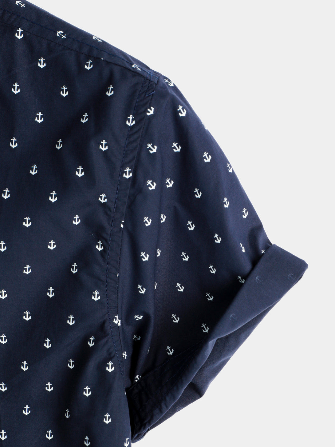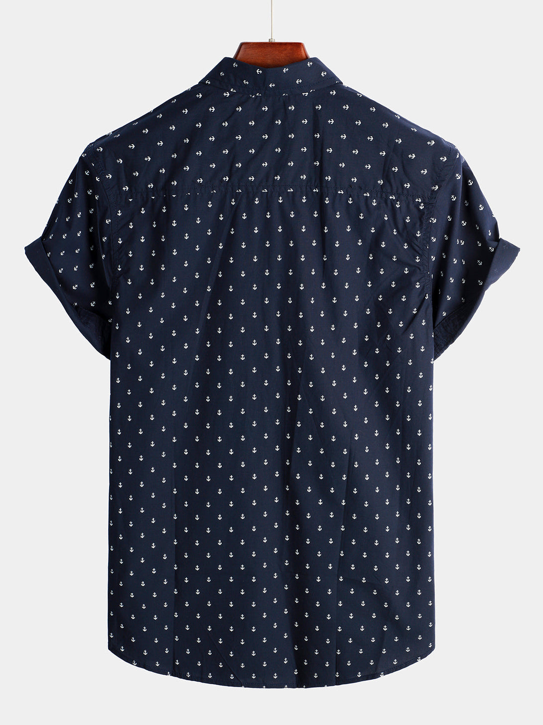 Men's Navy Blue Casual Short Sleeve Print Shirt