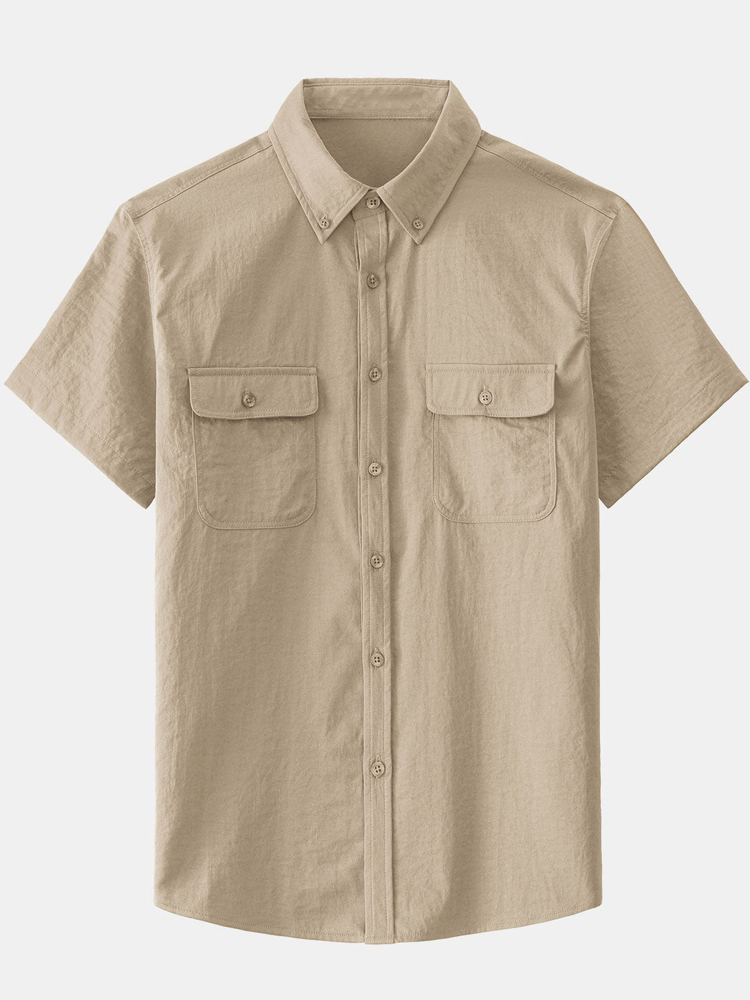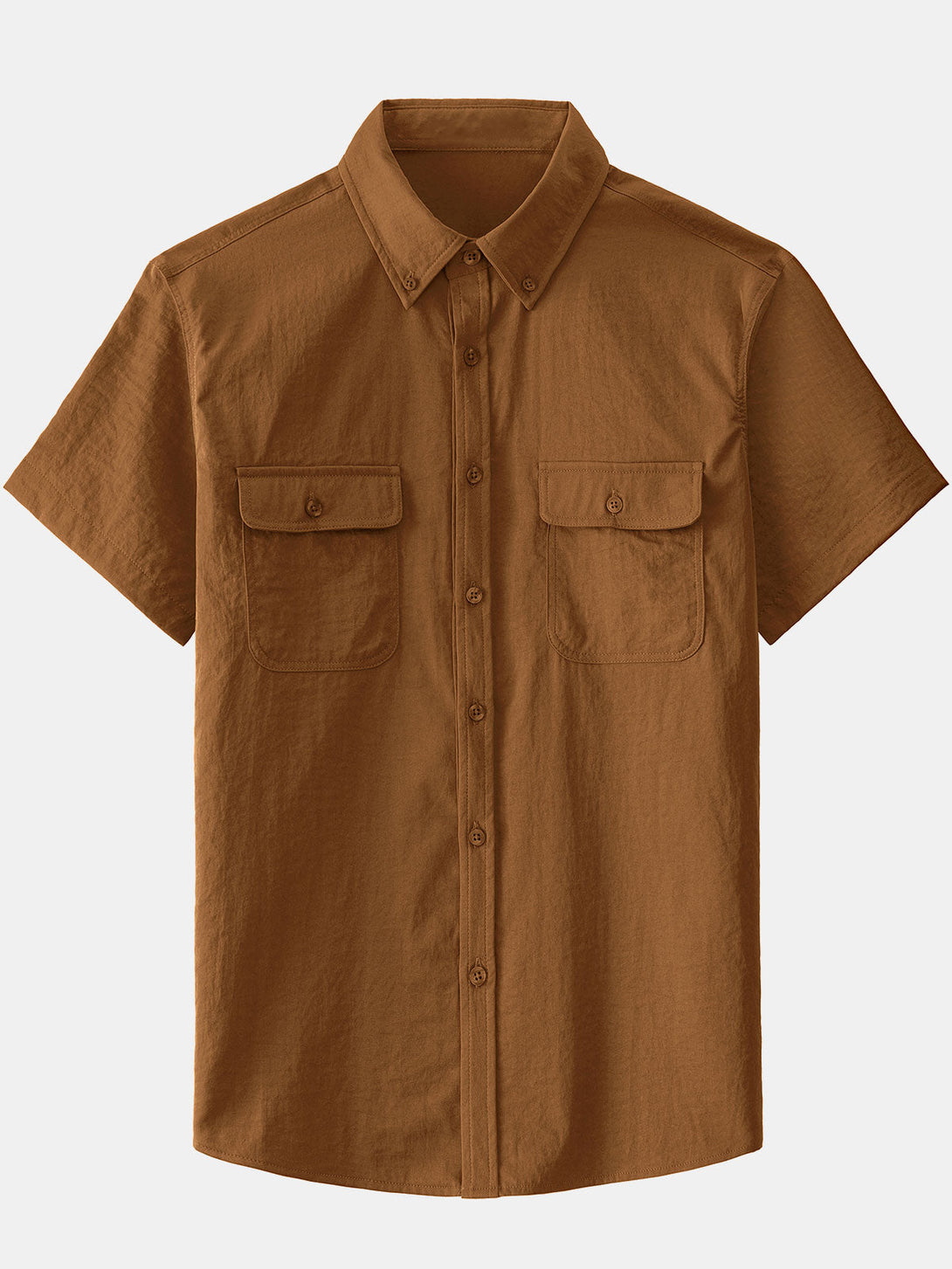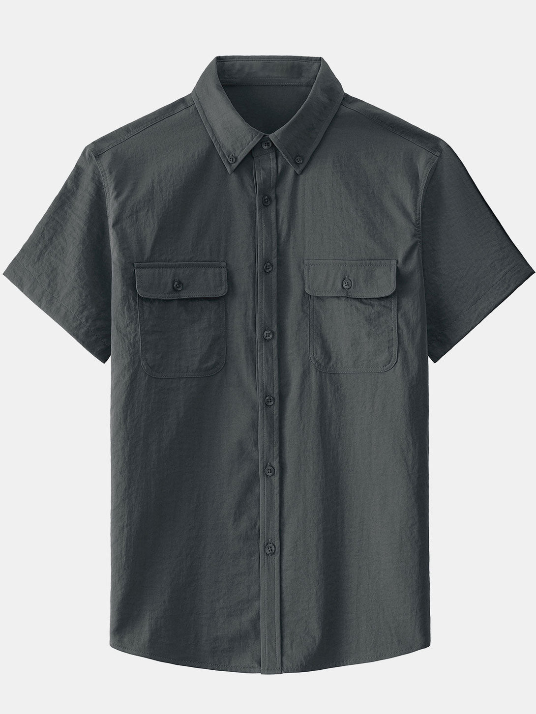 Casual, Plain Men's Shirt With Button Placket And Pockets