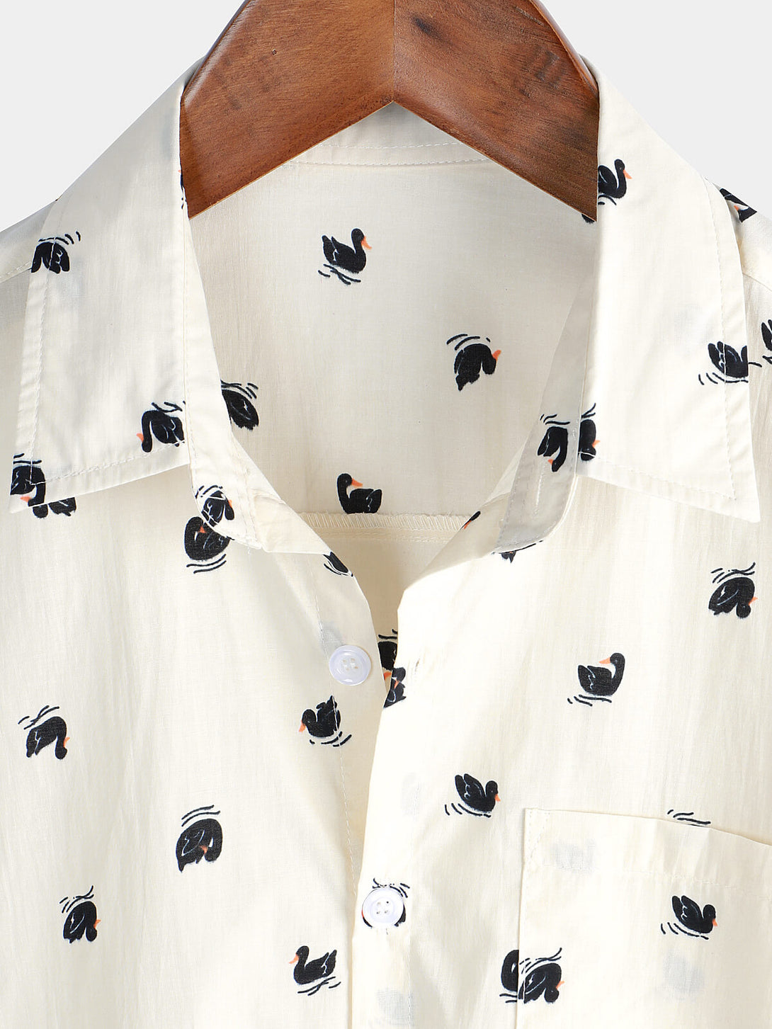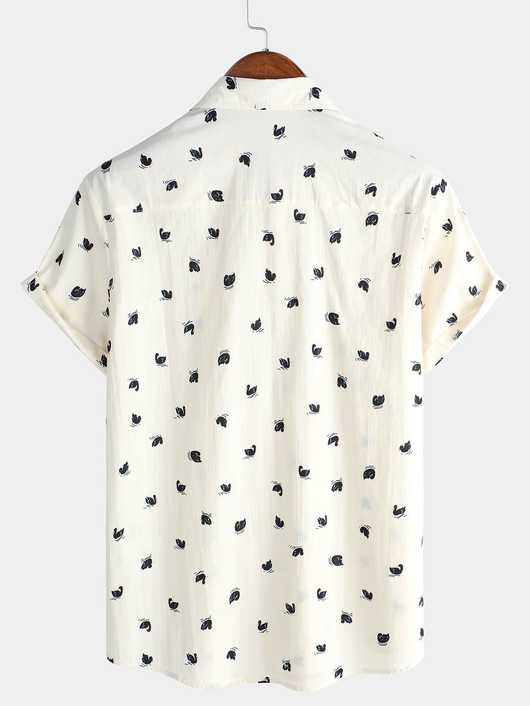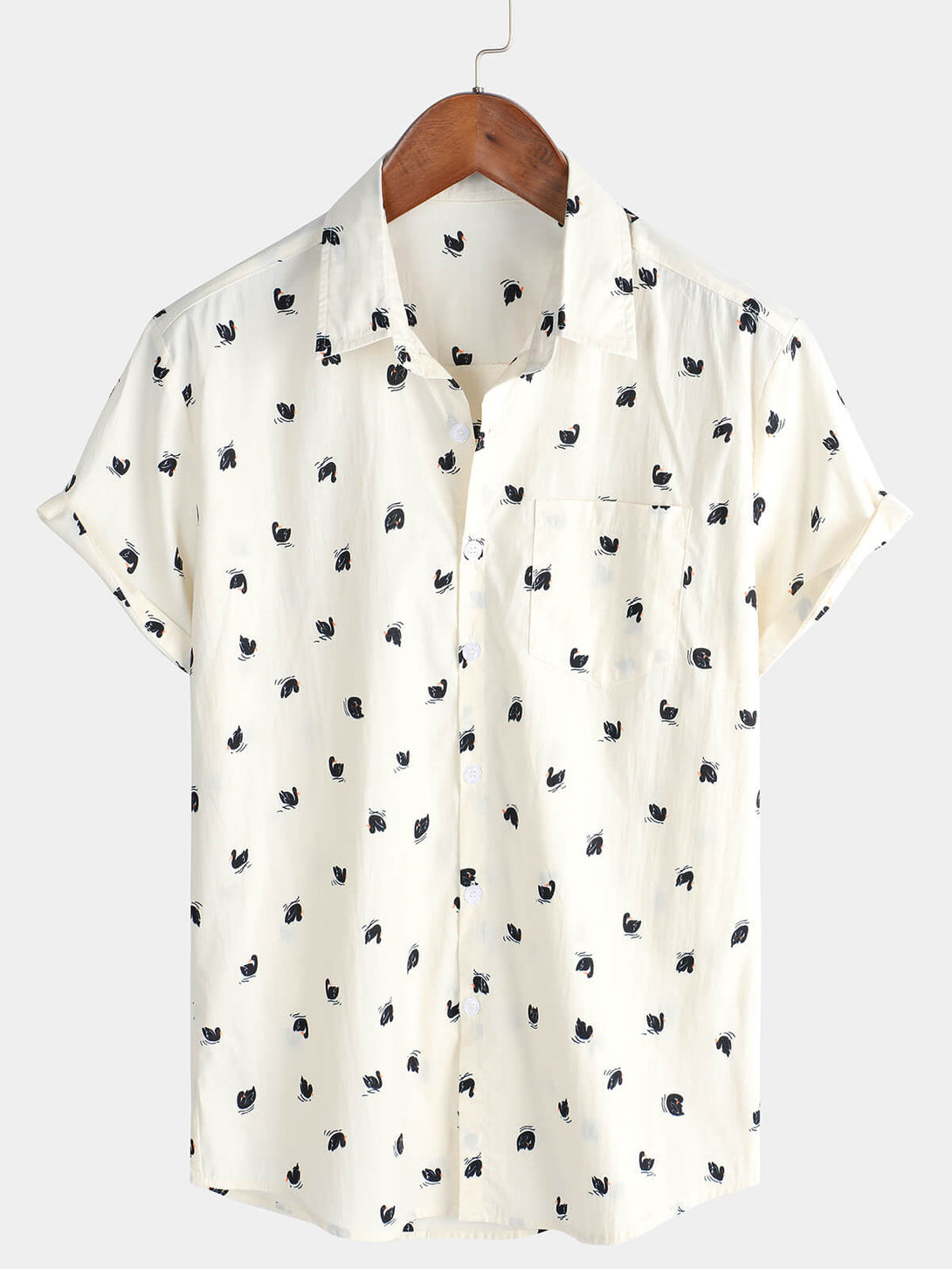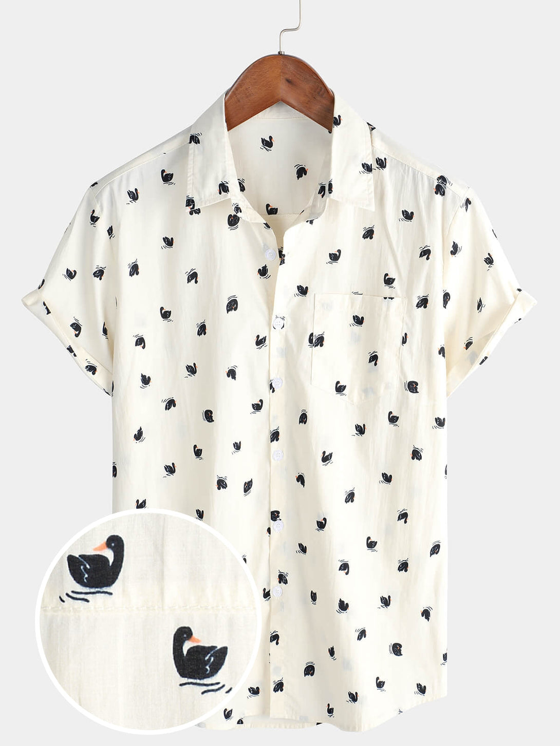 Men's Casual Short Sleeve Button Pocket Swan Cotton Hawaiian Shirt