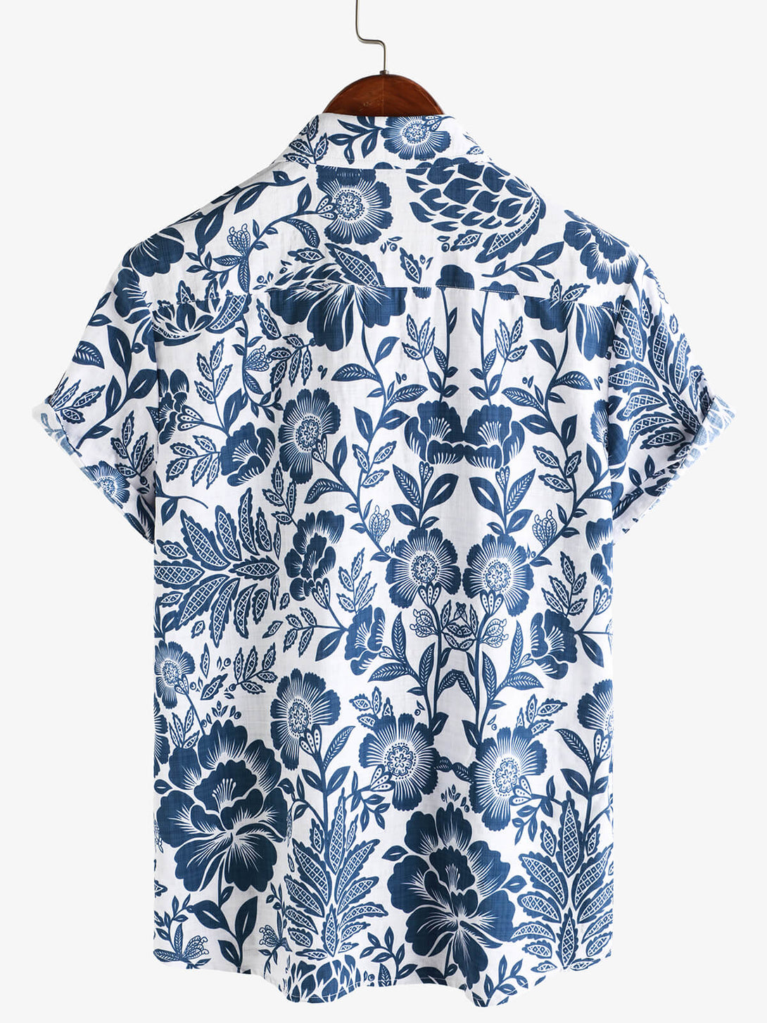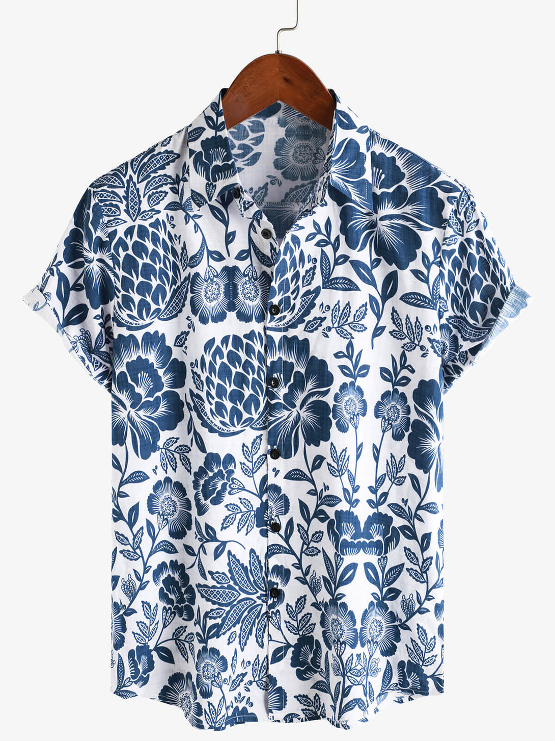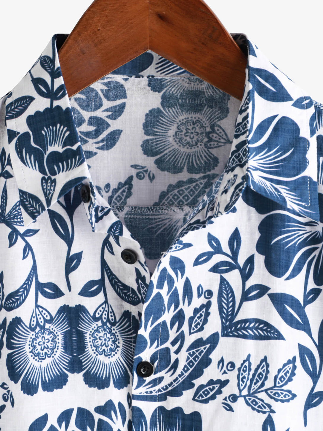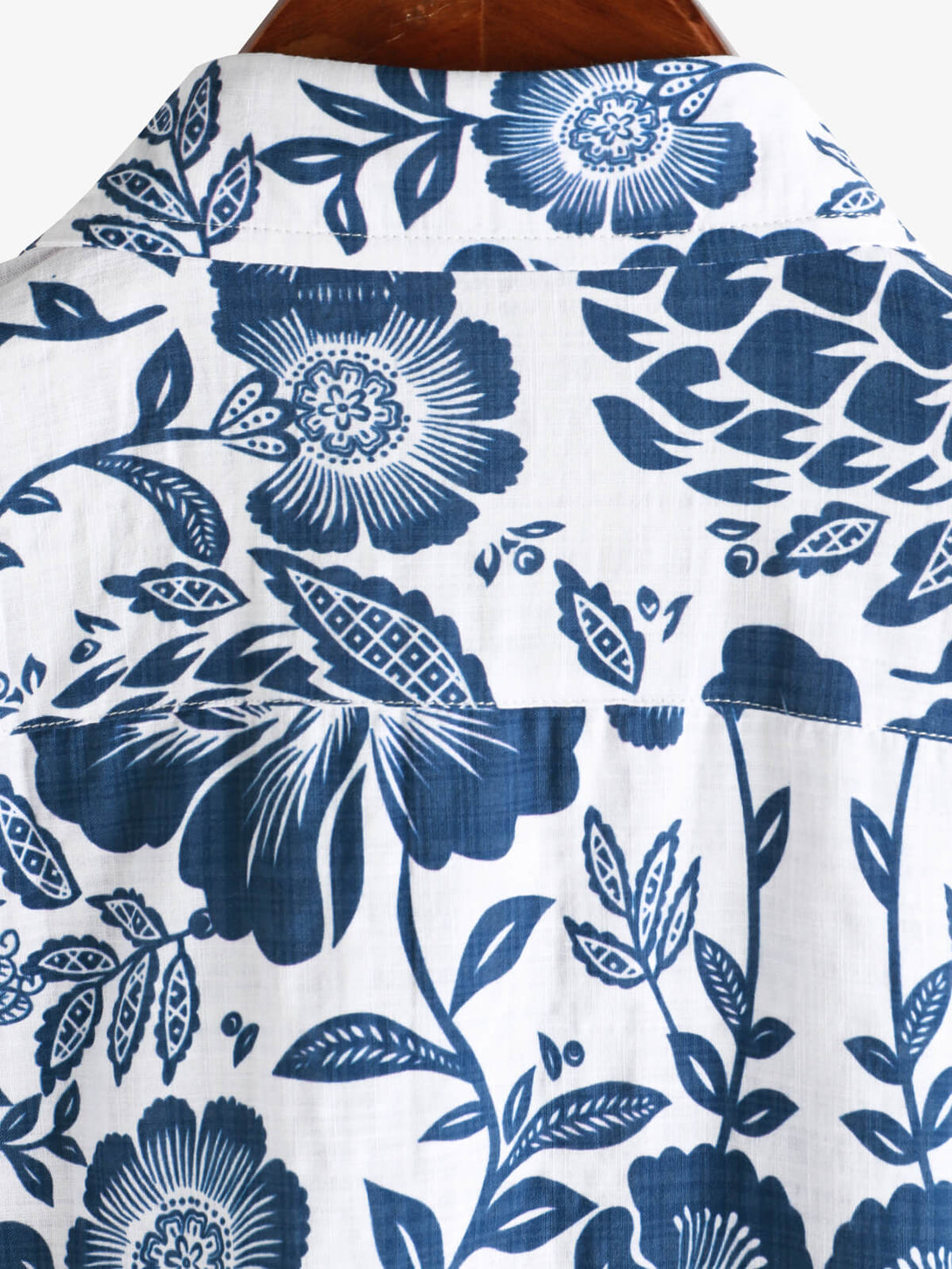 Men's Casual Vintage Beach Floral Print Breathable Cotton Short Sleeve Shirt