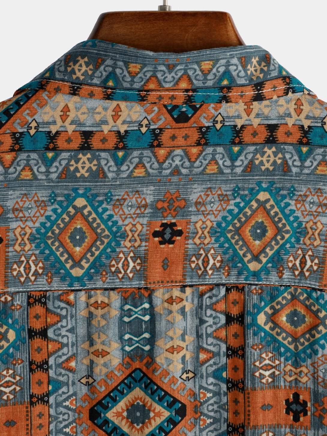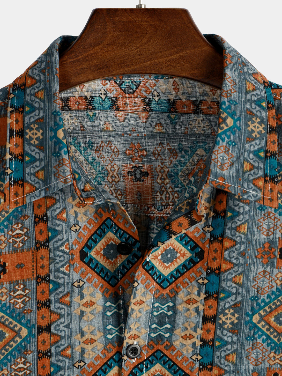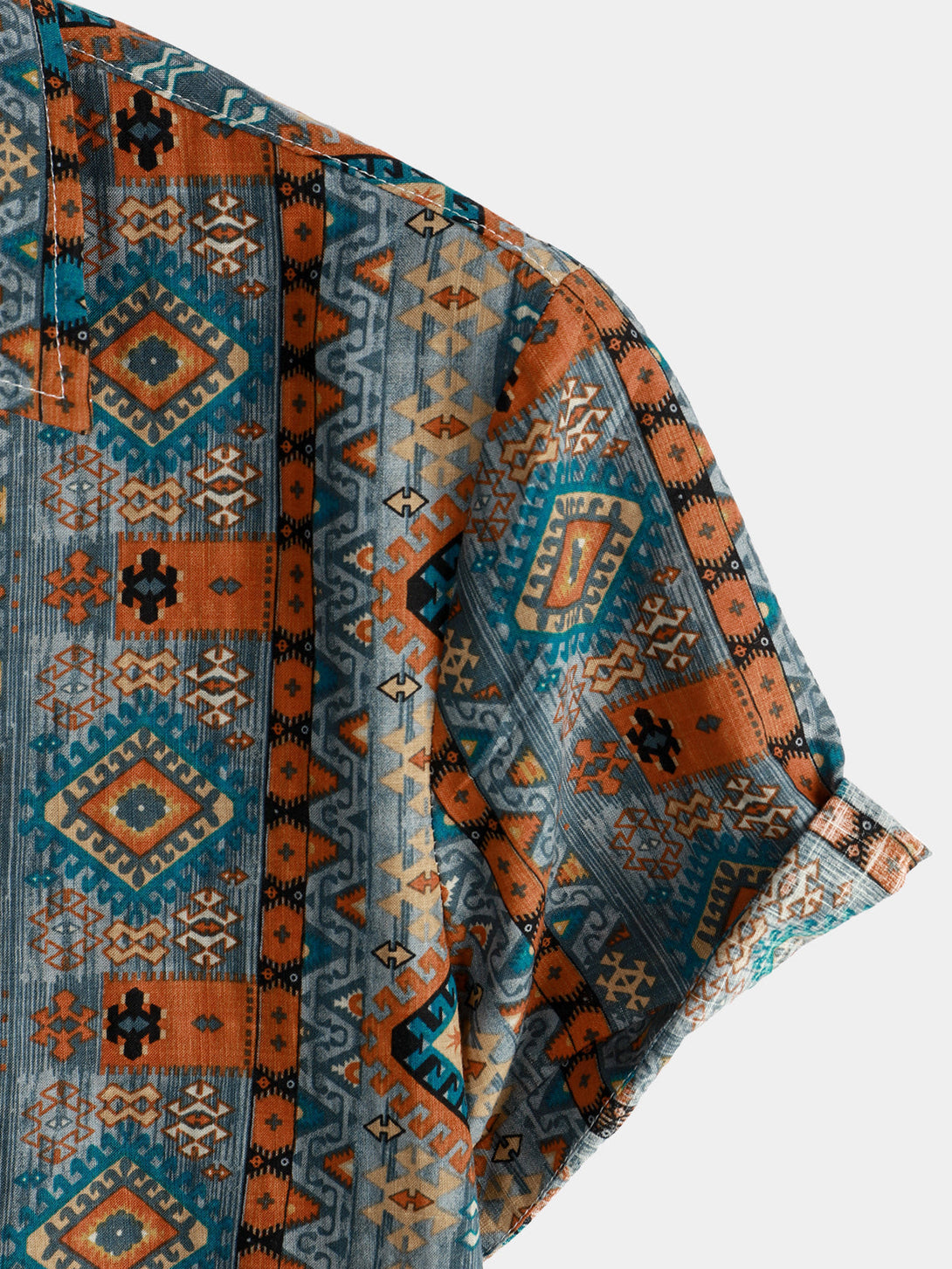 Men's Casual Vintage Short-Sleeved Shirt In 70S Retro Patchwork Style With Button Placket And Lapel