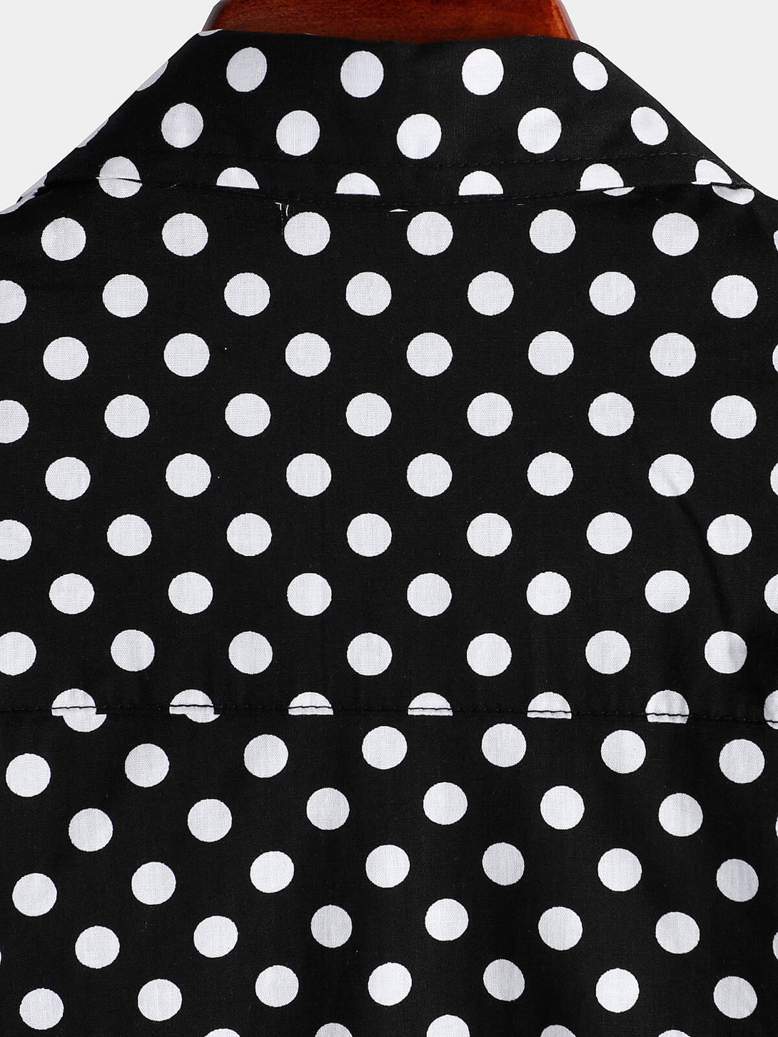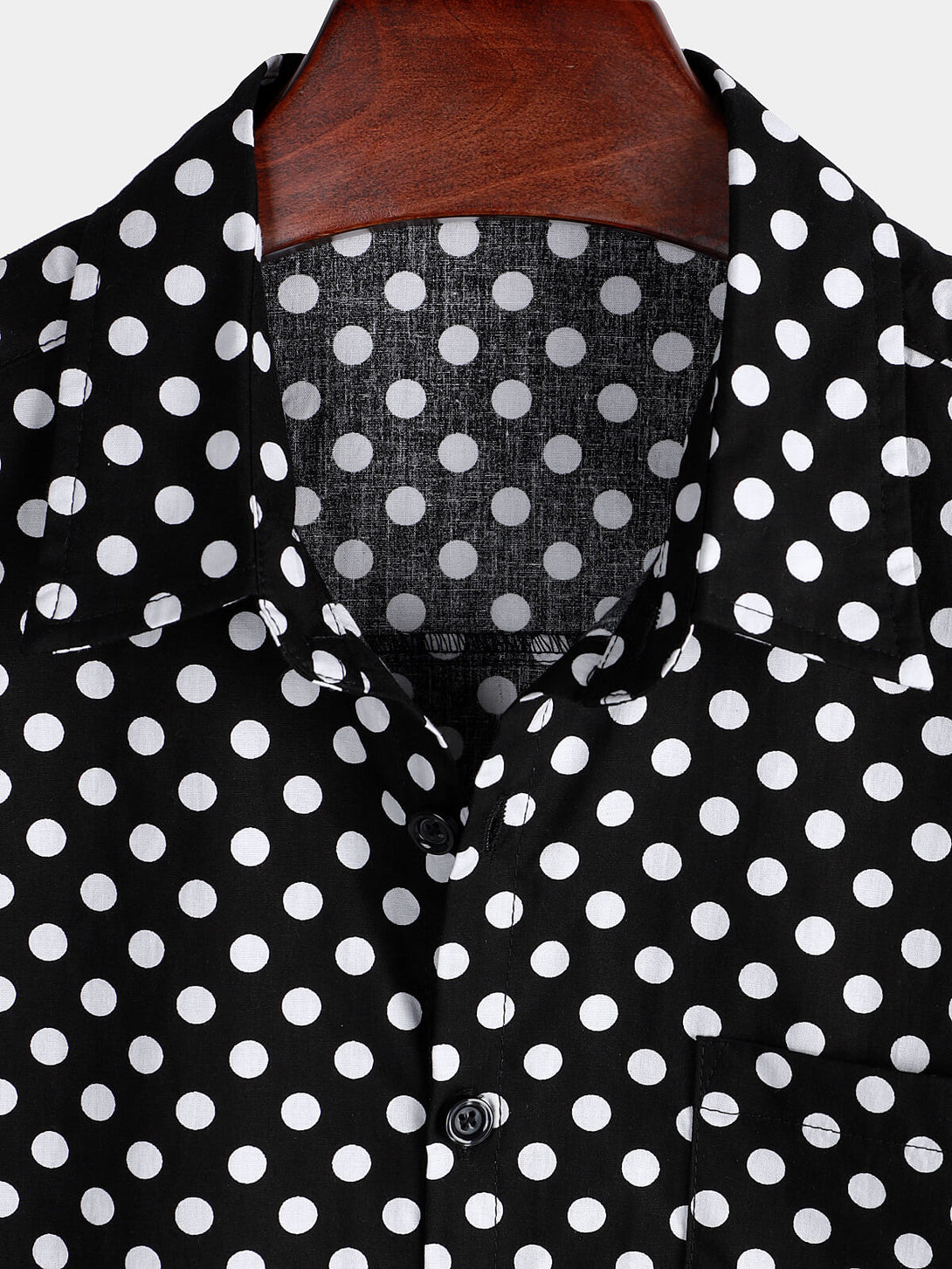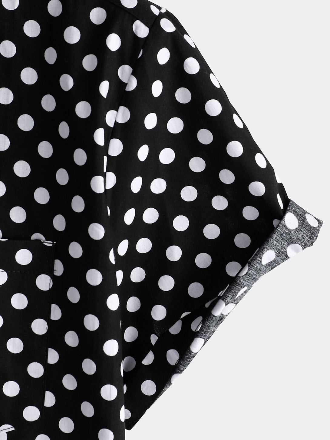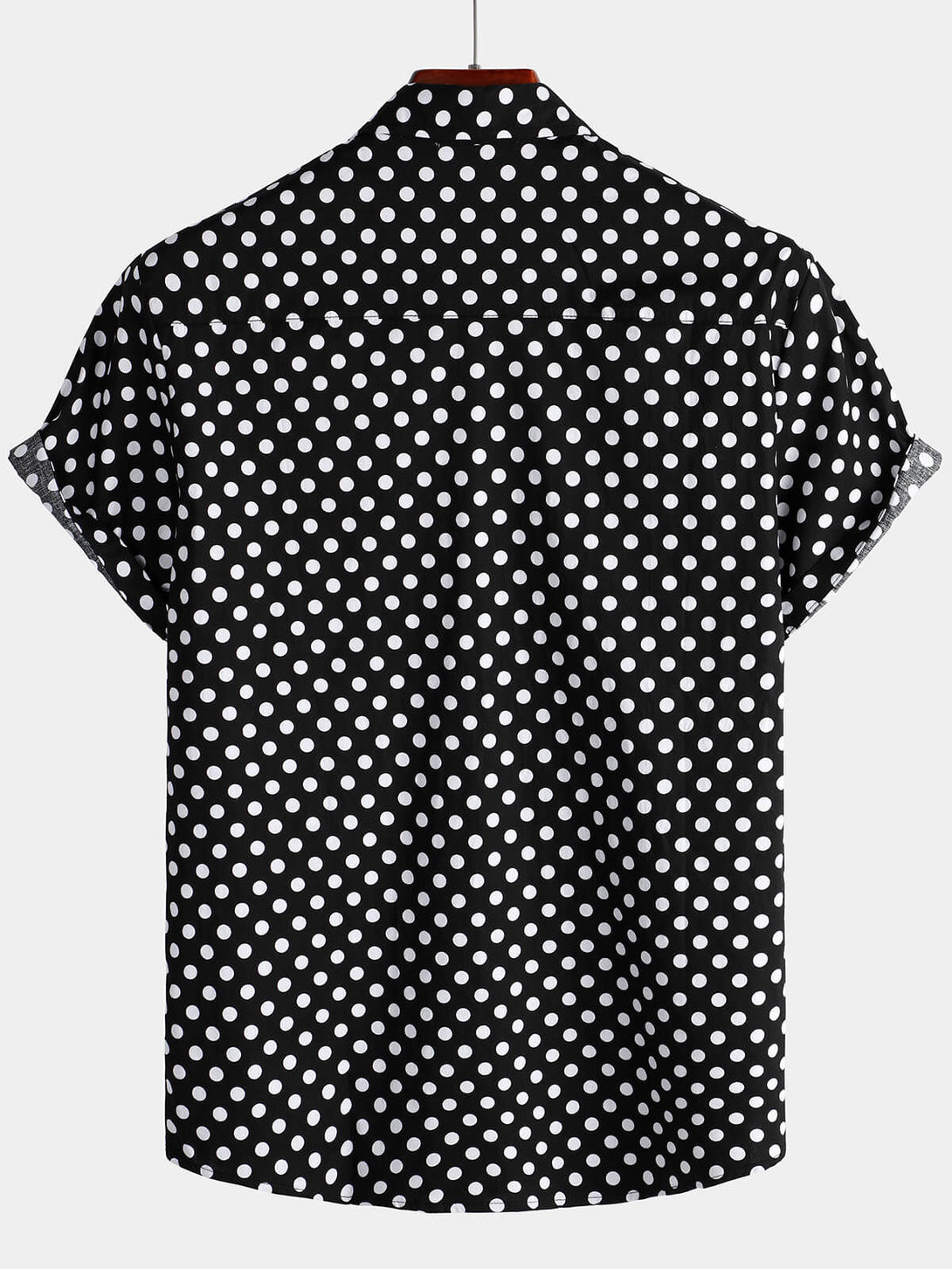 Casual Polka Dot Cotton Summer Shirt For Men With Black Pockets And Short Sleeves
