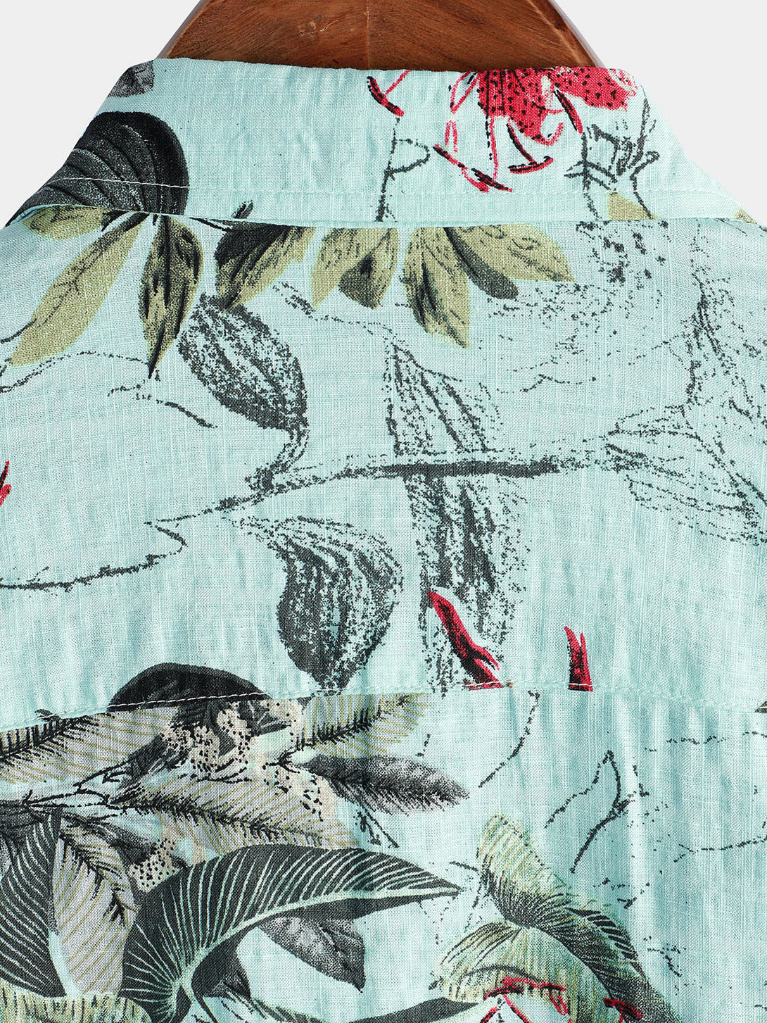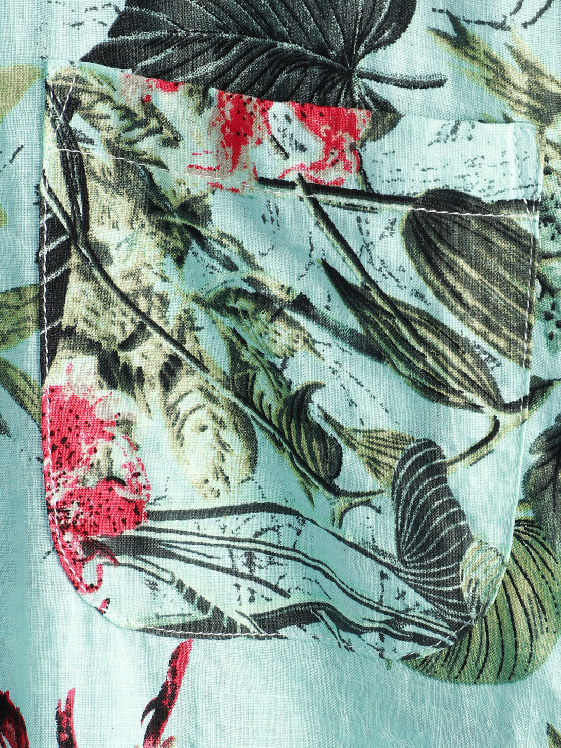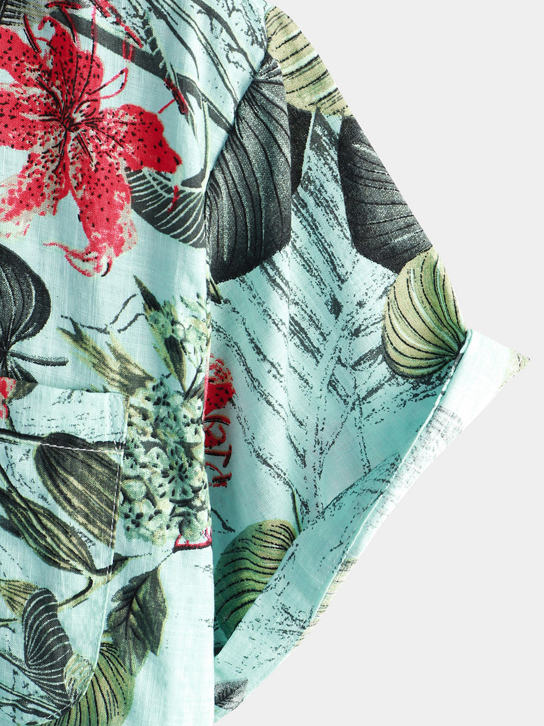 Men's Cotton Shirt With Floral Pattern, Tropical Green Hawaiian Plant, Short Sleeve, With Buttons