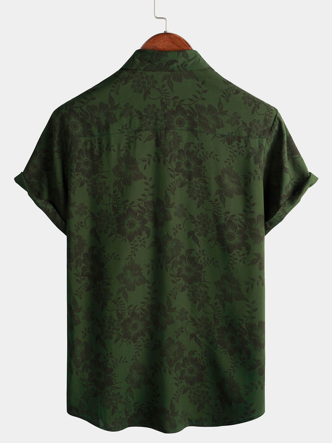 Men's Floral Print Dark Green Hawaiian Vintage Soft Beach Holiday Short Sleeve Button Down Shirt