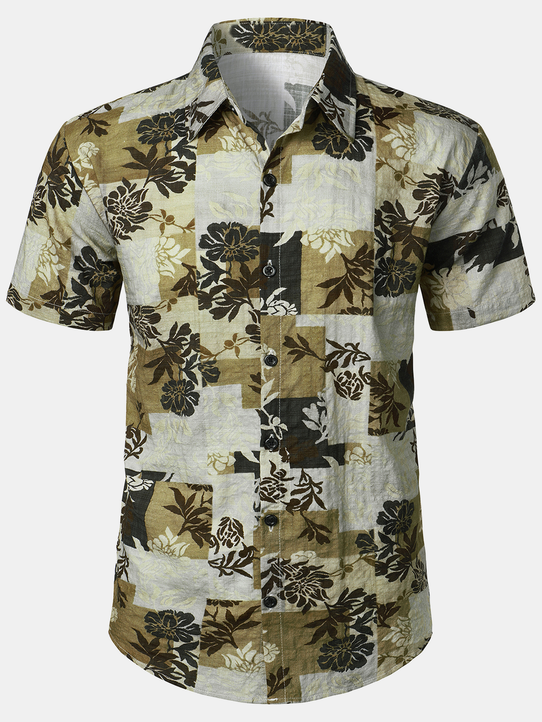 Men's Vintage Beach Floral Print Short Sleeve Button Down Shirt