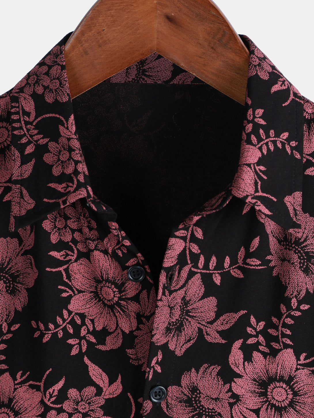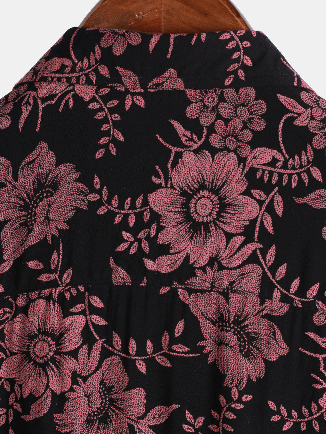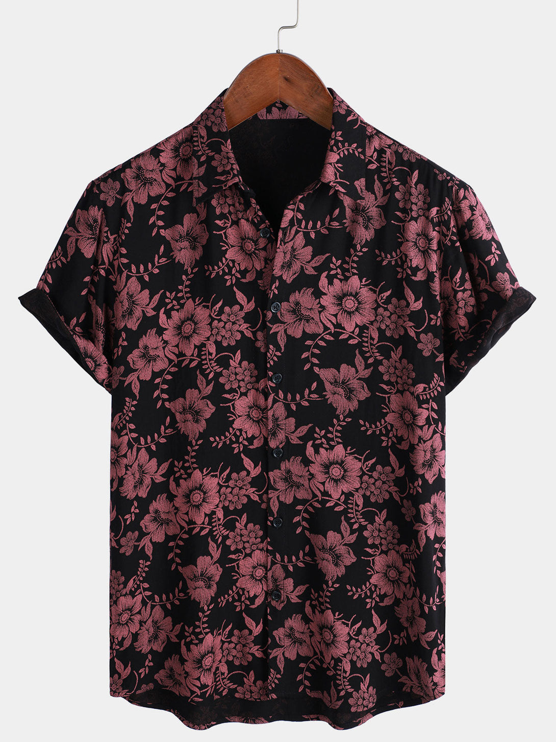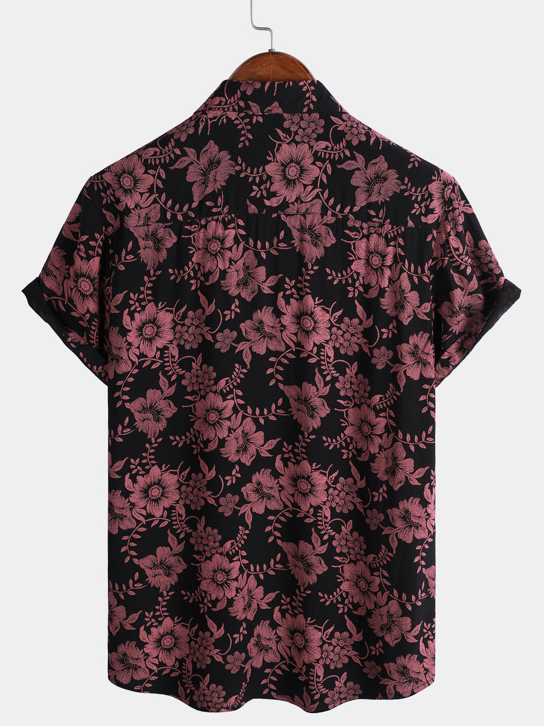 Men's Floral Print Vintage Style Holiday Breathable Button Down Short Sleeve Hawaiian Shirt