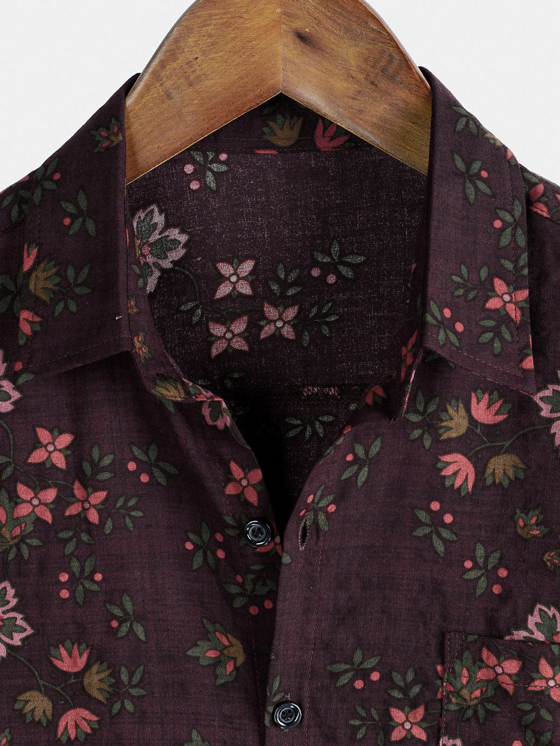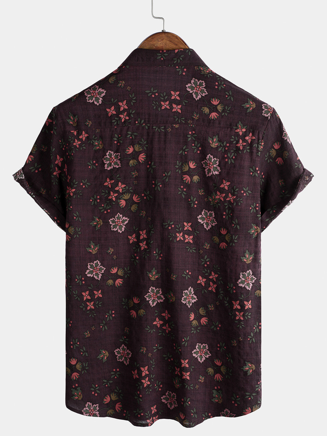Men's Hawaiian Shirt With Floral Pattern, Vintage Style, Brown, Short Sleeve